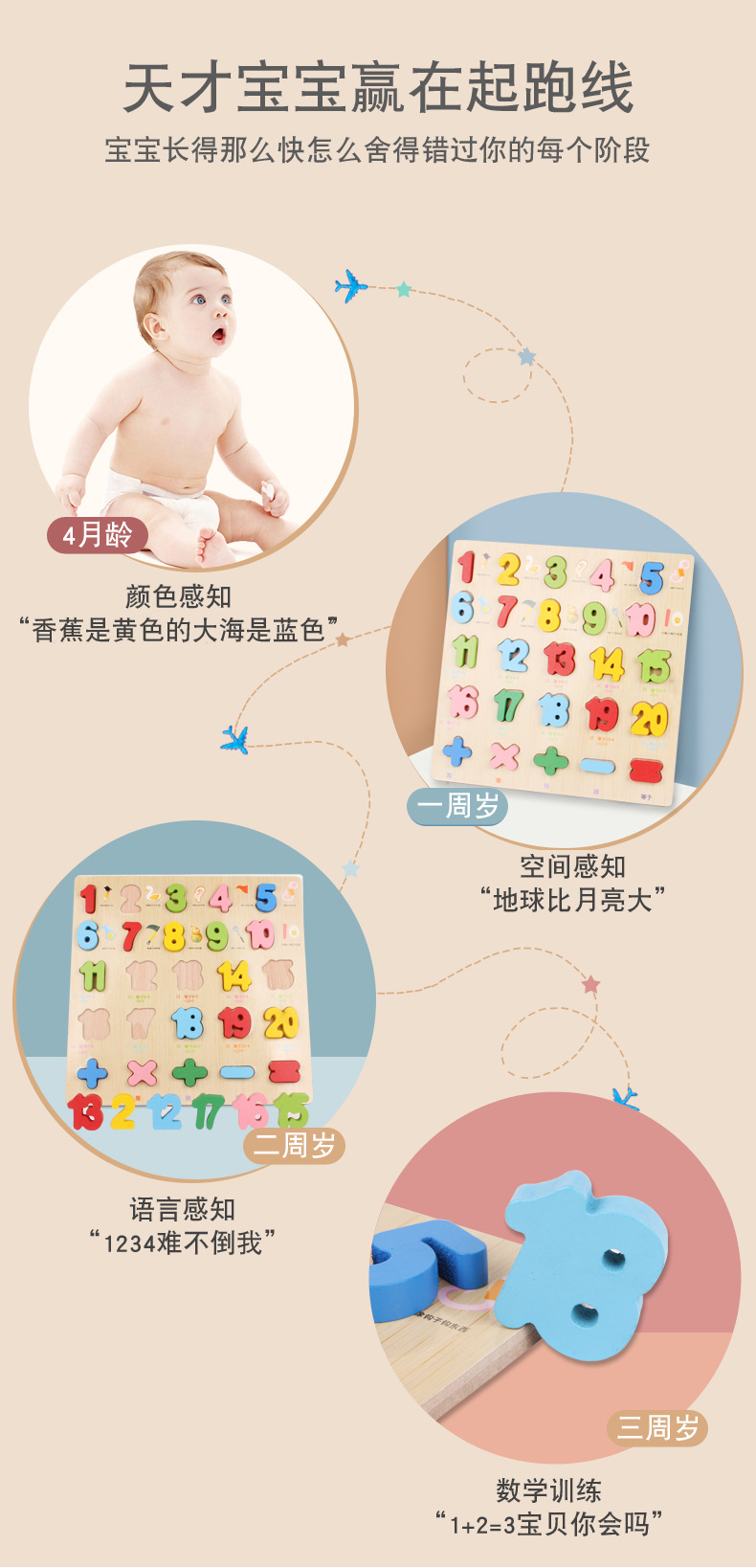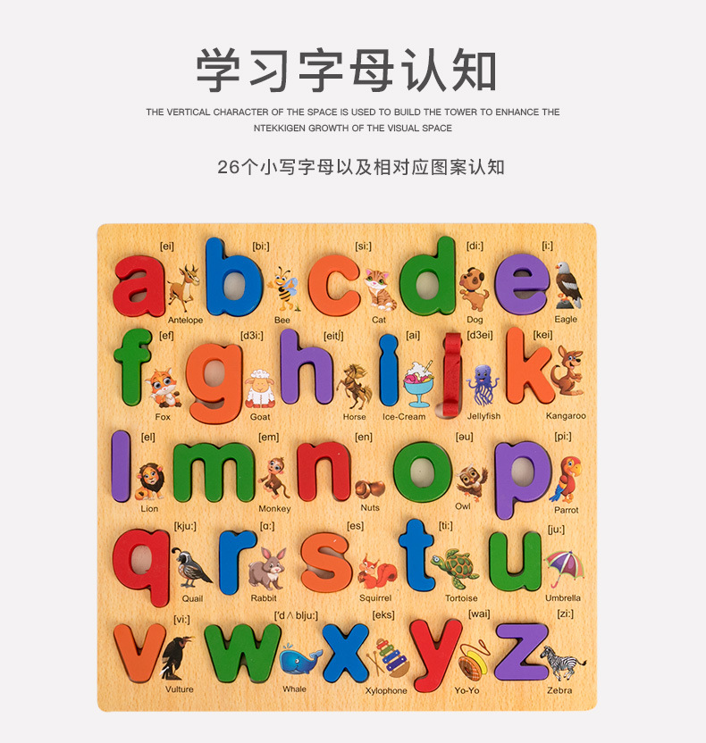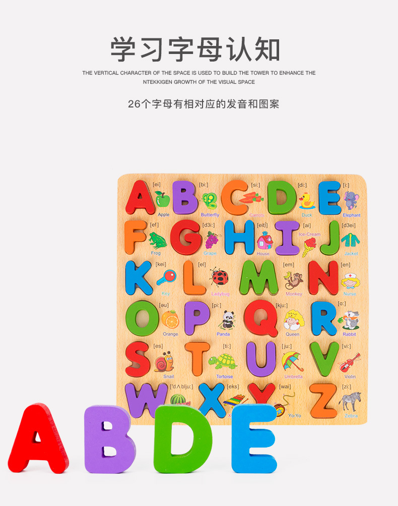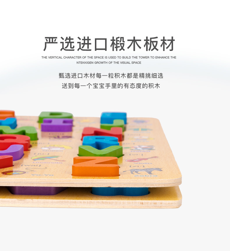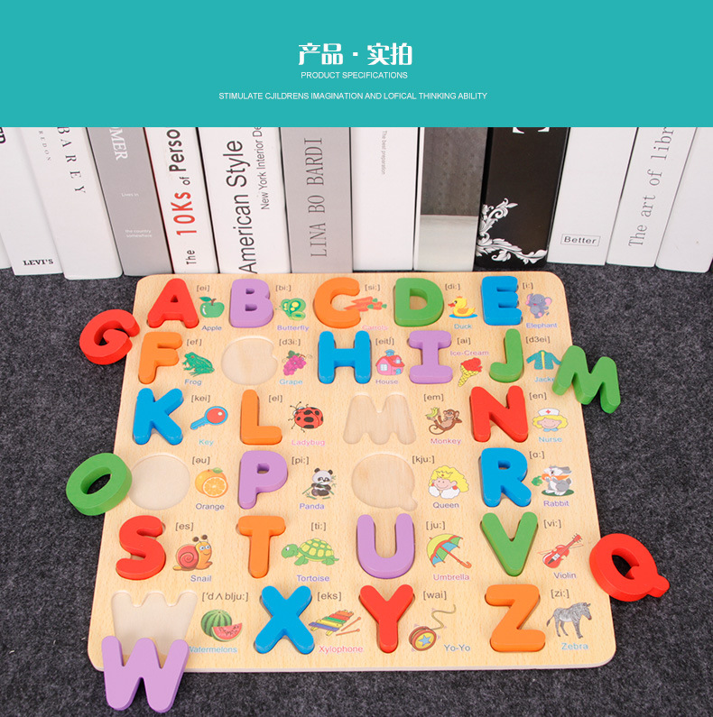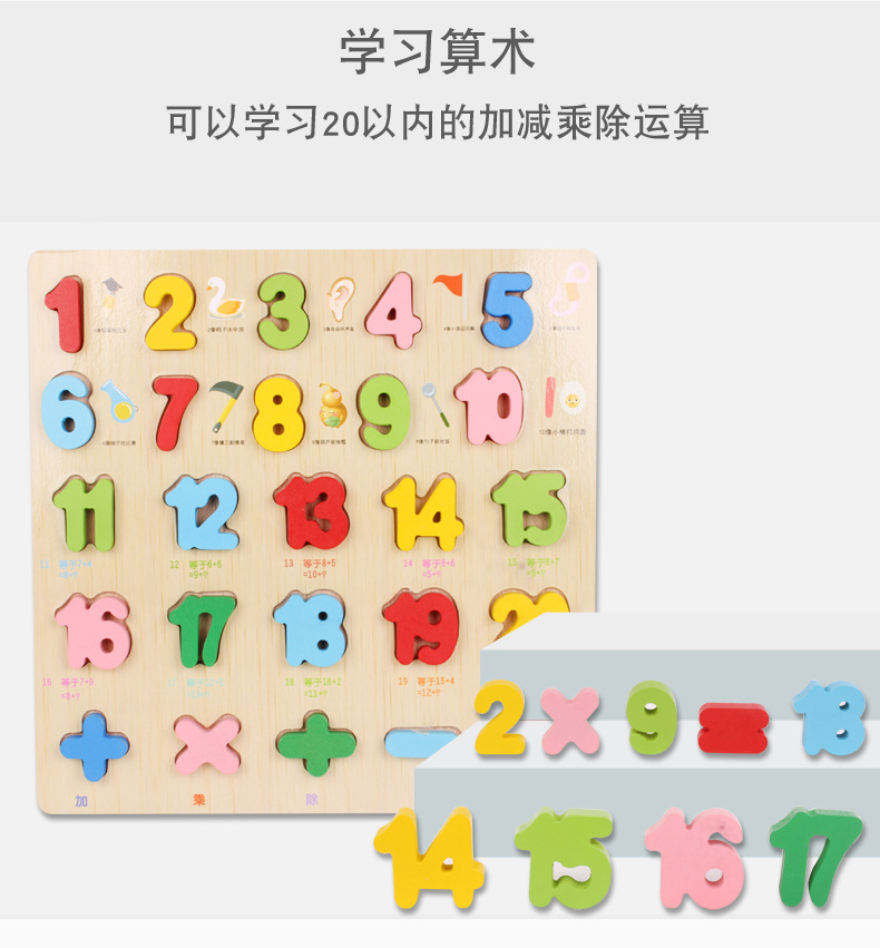 Junta alfanumérica de madera transfronteriza puzzle cognitivo de educación temprana de aprendizaje emparejado de mano agarrando juguetes de madera para niños