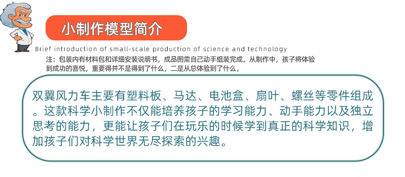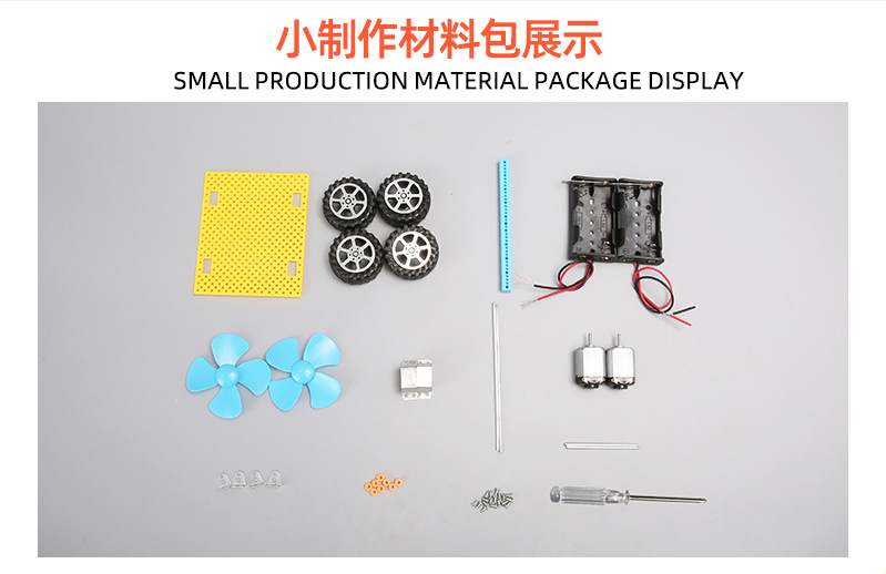 Experimento científico de la escuela primaria, coche de viento de dos alas, tecnología hecha a mano de bricolaje, pequeños juguetes eléctricos educativos para niños