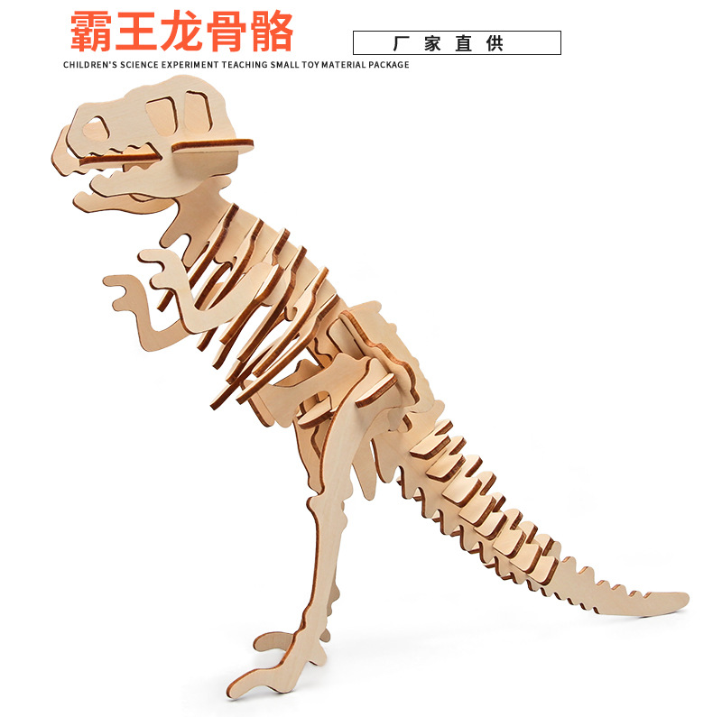 Tyrannosaurus esqueleto de madera tecnología pequeña producción simulación rompecabezas DIY modelo animal educativo juguete de los niños materiales didácticos