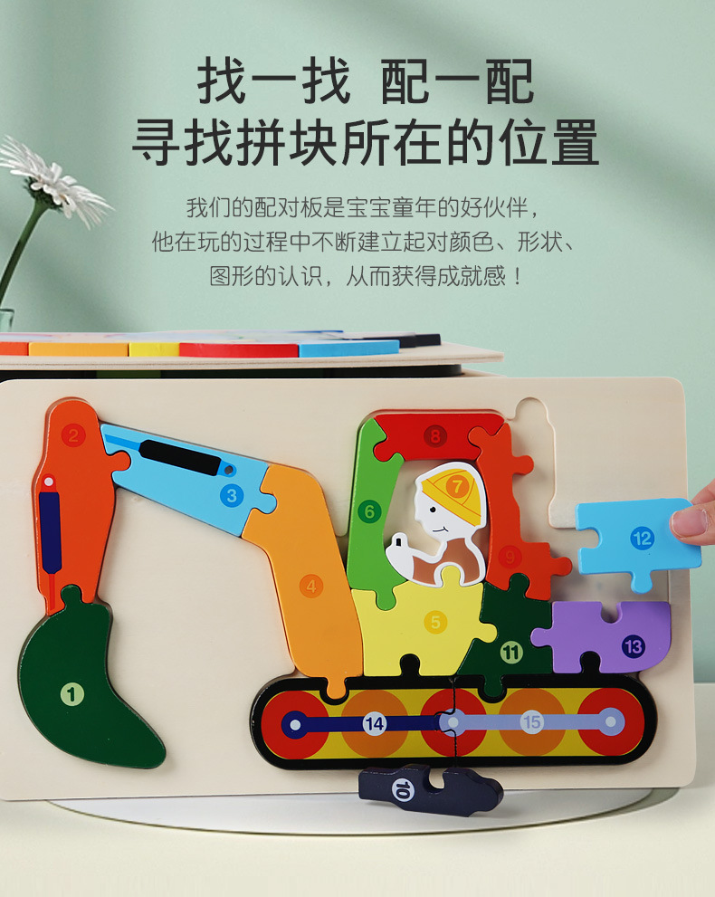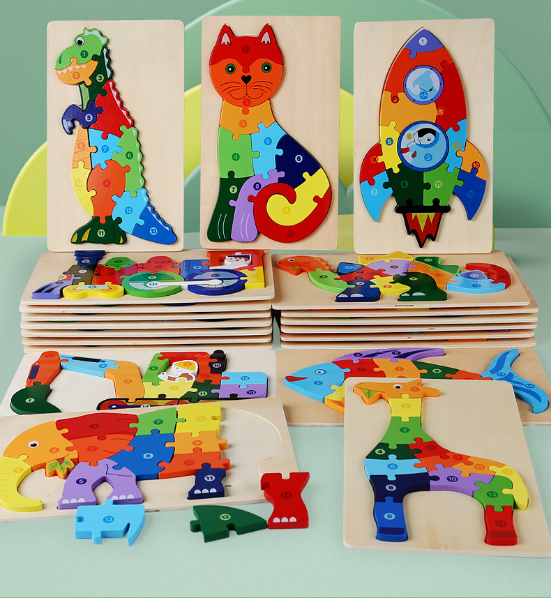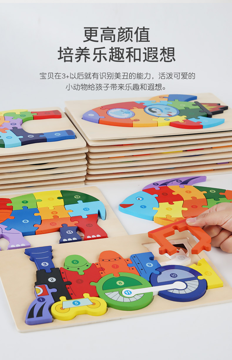 Juguetes de puzzle de madera de hebilla para niños pequeños Juguetes de bloque de bloques de construcción de bebés Juguetes de puzzle cognitivo de forma emparejada