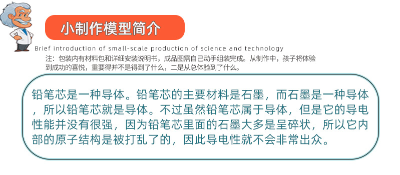 Conductor de lápiz para estudiantes de primaria hechos a mano Diy circuito experimento científico inteligente invención tecnología pequeña fabricación de juguetes materiales