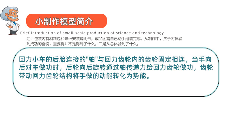 Los niños tire volver coche experimento de ciencia inercial enseñanza juguetes estudiantes de la escuela primaria y secundaria hecho a mano DIY ciencia y educación juguetes material paquete
