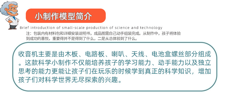 Experimento científico para niños mini radio tecnología de madera pequeña producción de estudiantes de primaria DIY ensamblaje a mano juguetes de enseñanza