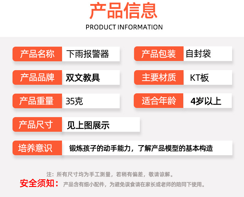 alarma de lluvia circuito de la escuela primaria experimento científico físico material de experimento de conducción de paquete de investigación ciencia y tecnología pequeña producción