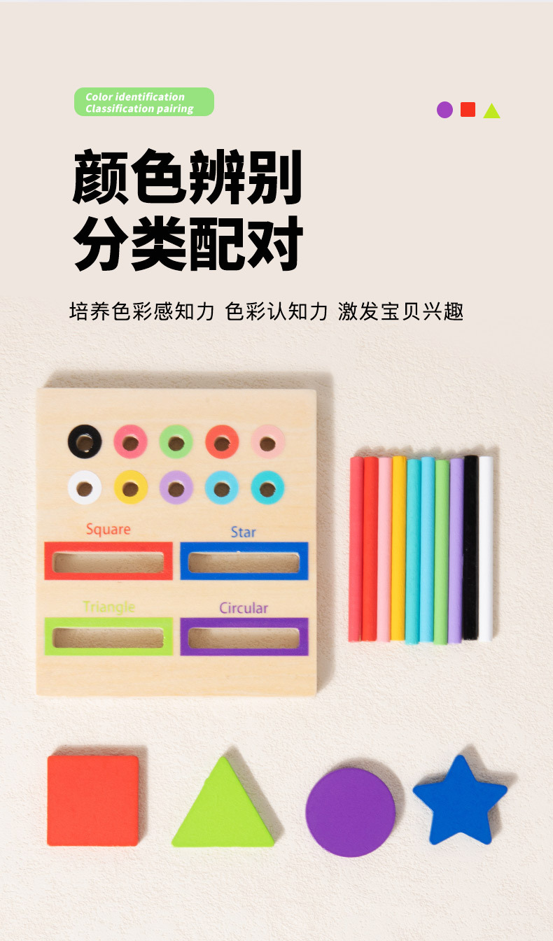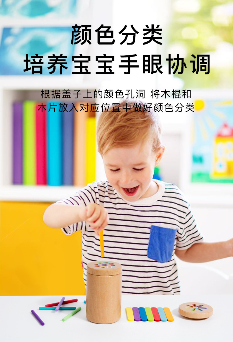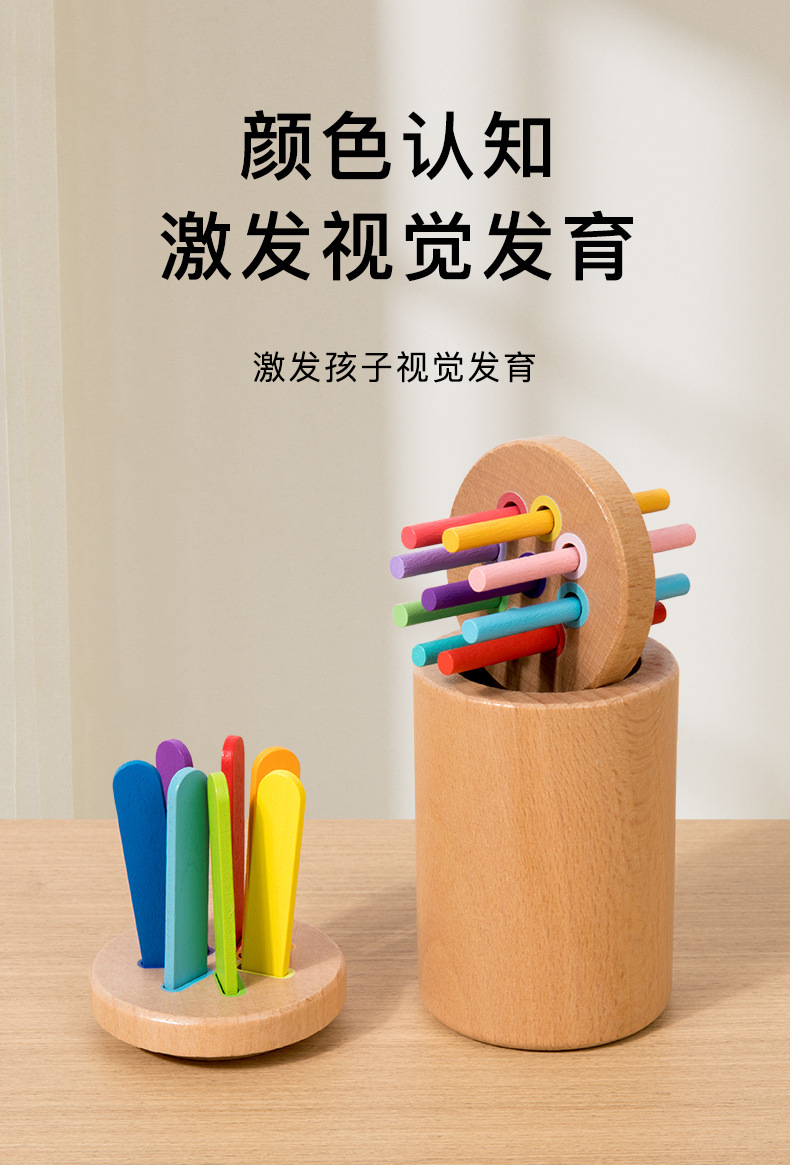 Clasificación de color barril ayuda educativa forma de color para niños coincidencia cognitiva bolígrafo de madera sólida de 3 a 6 años de edad Juguetes de madera inteligentes