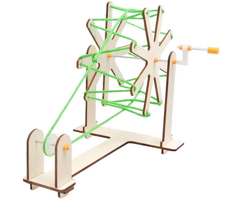 Tecnología pequeña producción DIY máquina de hilar estudiante STEM diversión educativa creativa hecha a mano pequeña invención máquina de hilar a mano