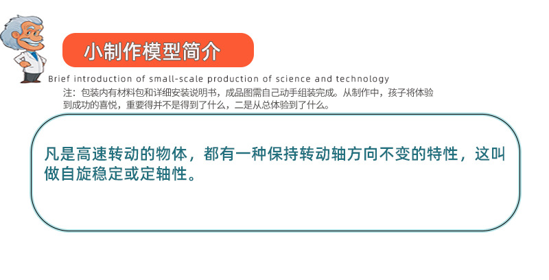 Cable de madera giroscopio Tecnología pequeña producción pequeña invención hecha a mano DIY estudiantes de primaria y secundaria experimento científico material de juguete