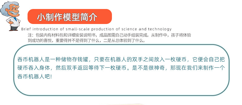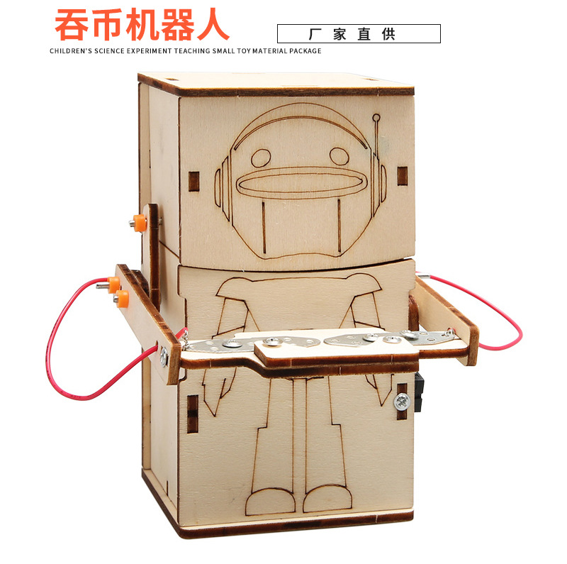 Coin-tragar robot modelo escuela primaria estudiante tecnología pequeña producción niños ciencia pequeño experimento hecho a mano juguete material paquete