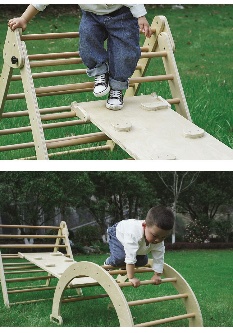 Kindergarten Educación temprana Juguetes educativos Mecedora de arco iris multifuncional de madera para niños Juego interactivo de escalada de tablero de equilibrio