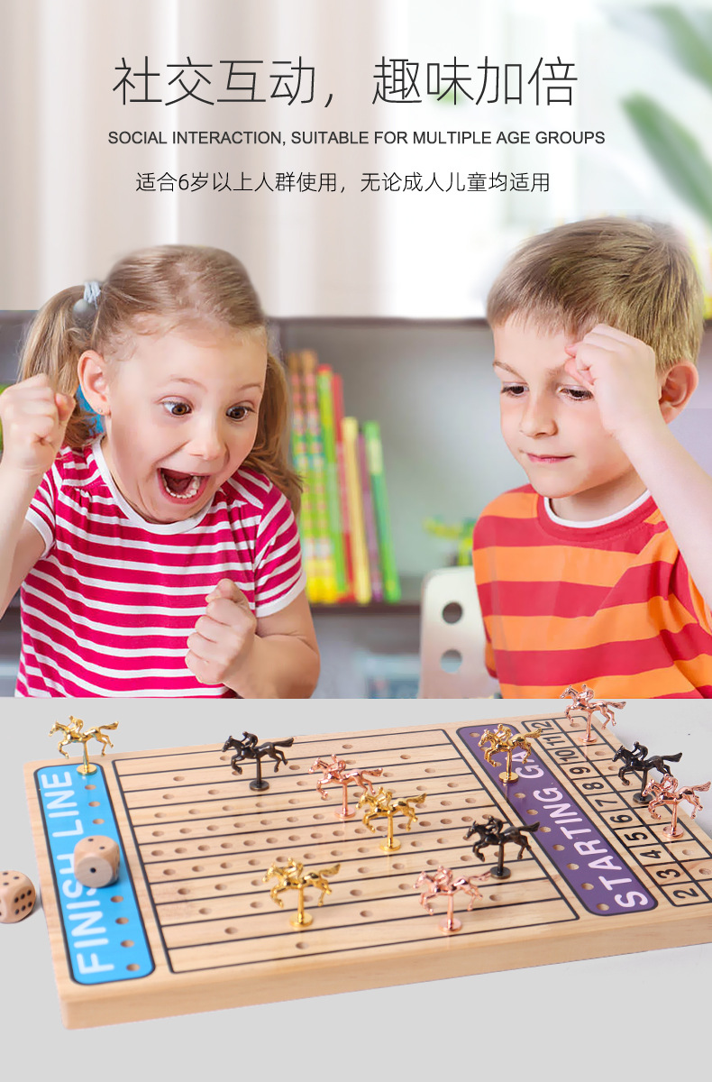 Juego de carreras de caballos para niños, ajedrez, pensamiento divertido, juego de batalla interactivo, juguete de educación temprana para bebés de madera