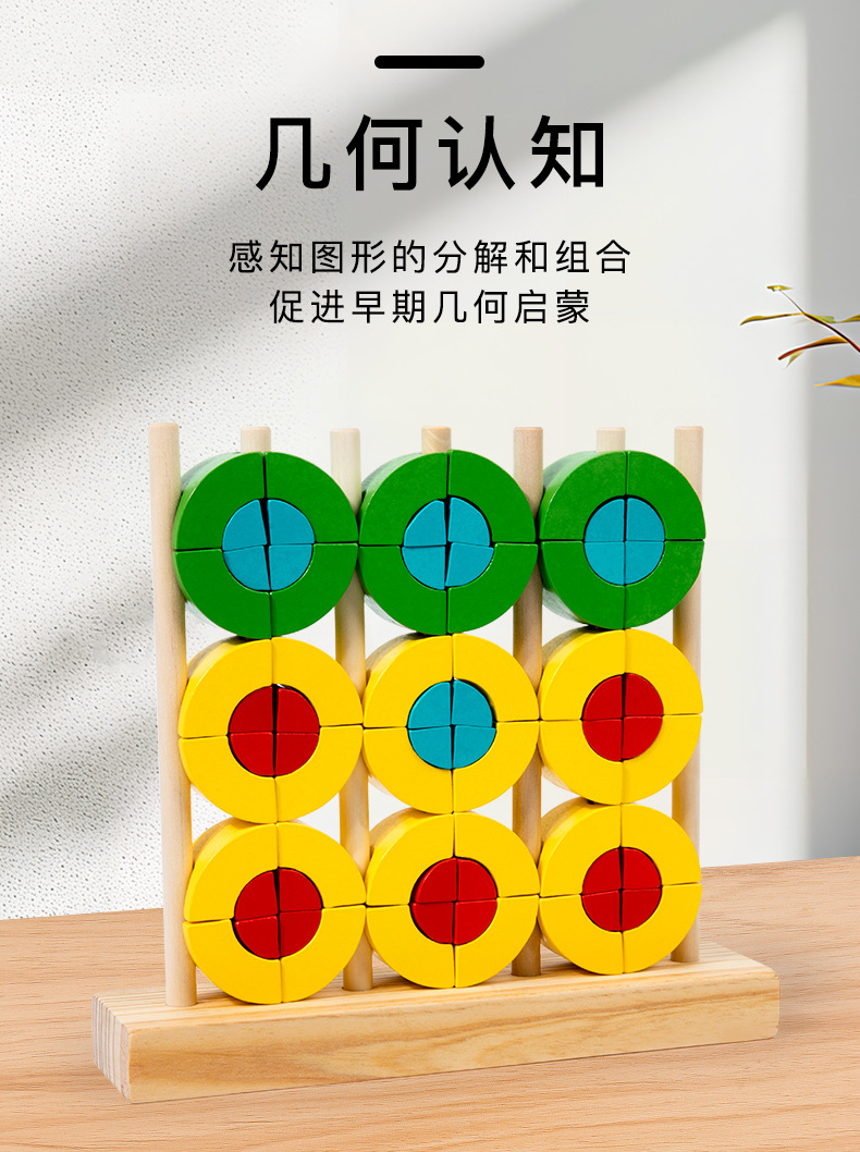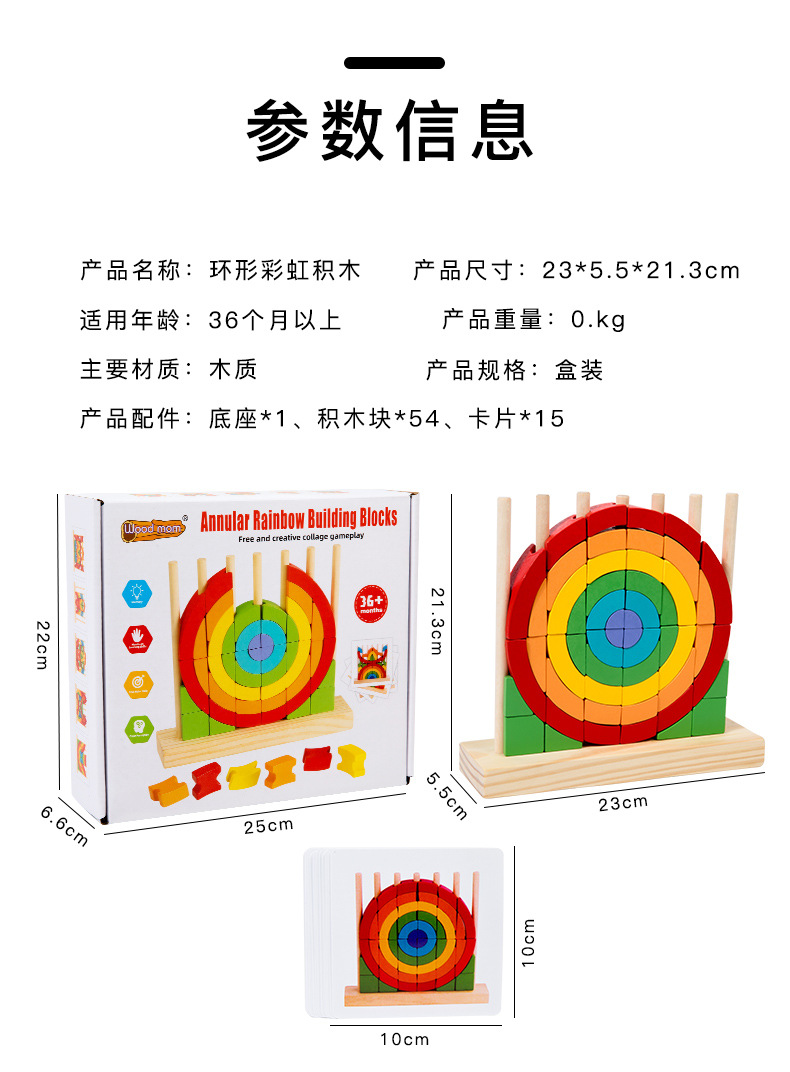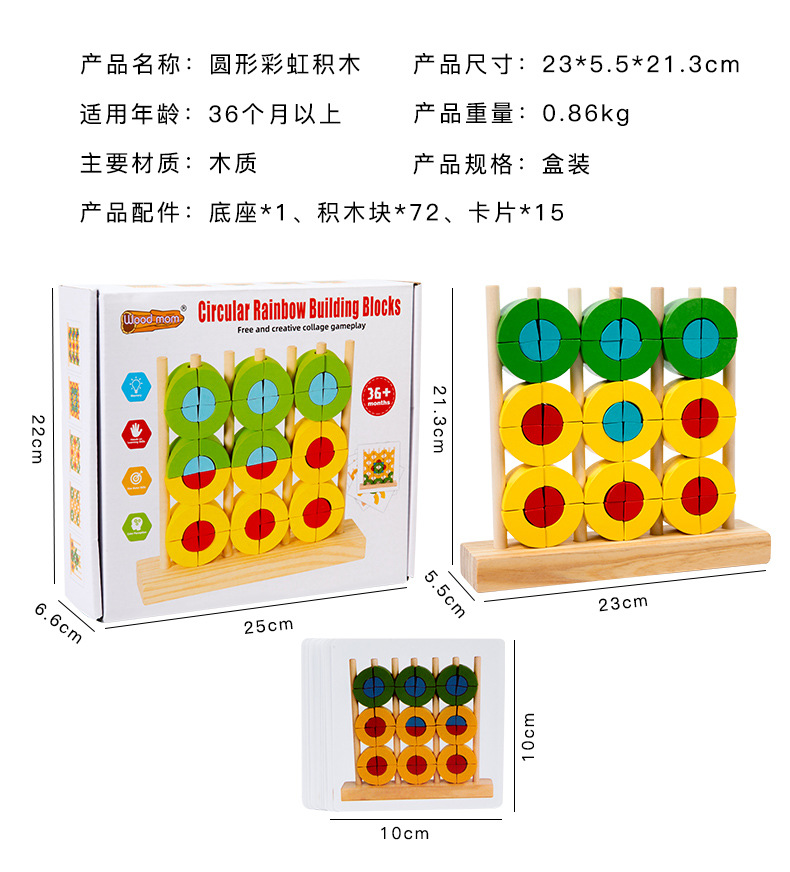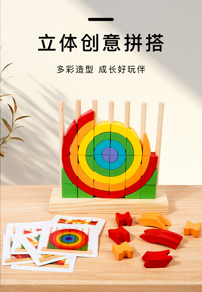 Niños pequeños de madera triángulo redondo anillo arcoíris bloques divertidos conjuntos de puzzles superpuestos juguetes de educación temprana