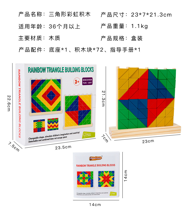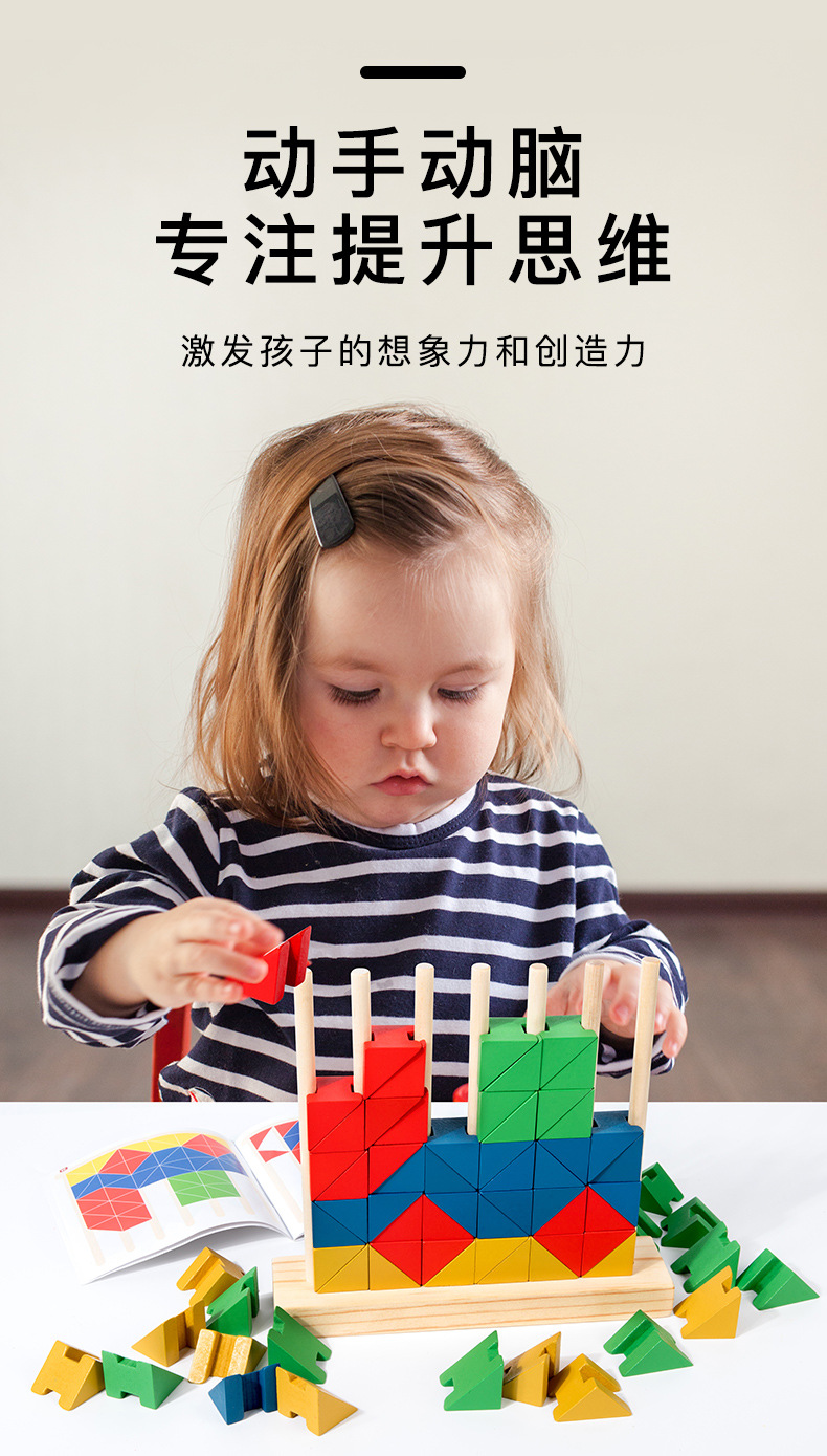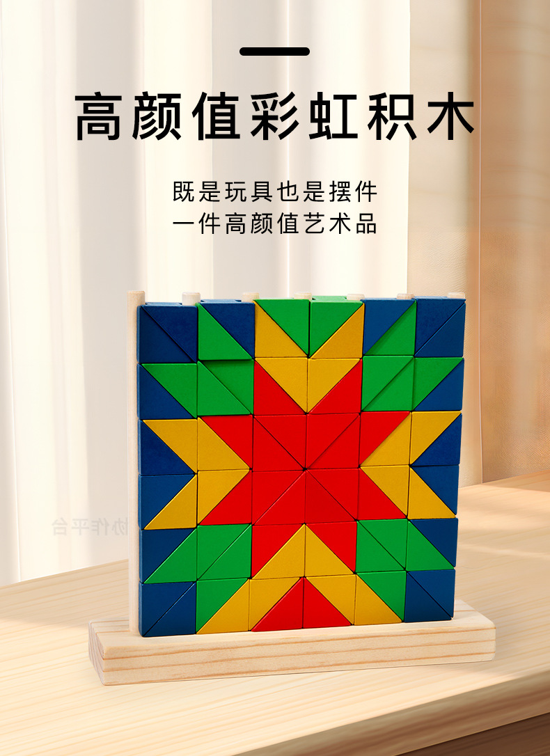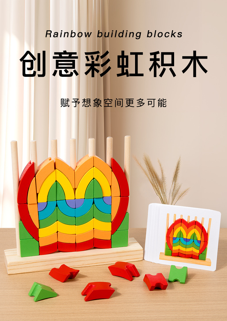 Niños pequeños de madera triángulo redondo anillo arcoíris bloques divertidos conjuntos de puzzles superpuestos juguetes de educación temprana