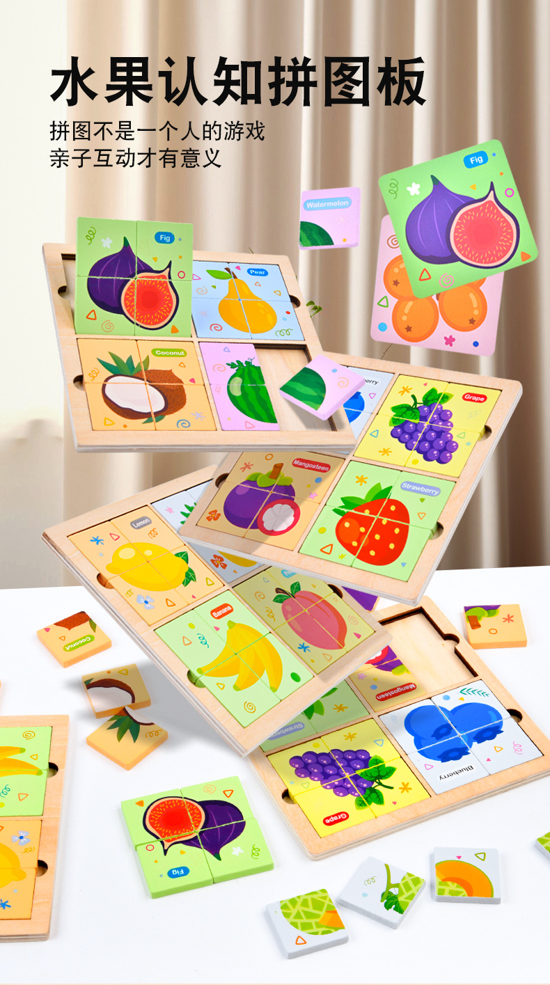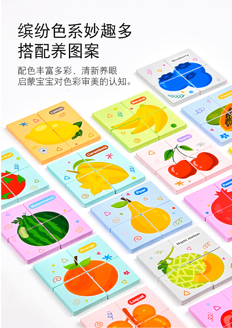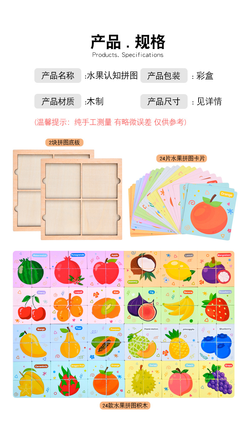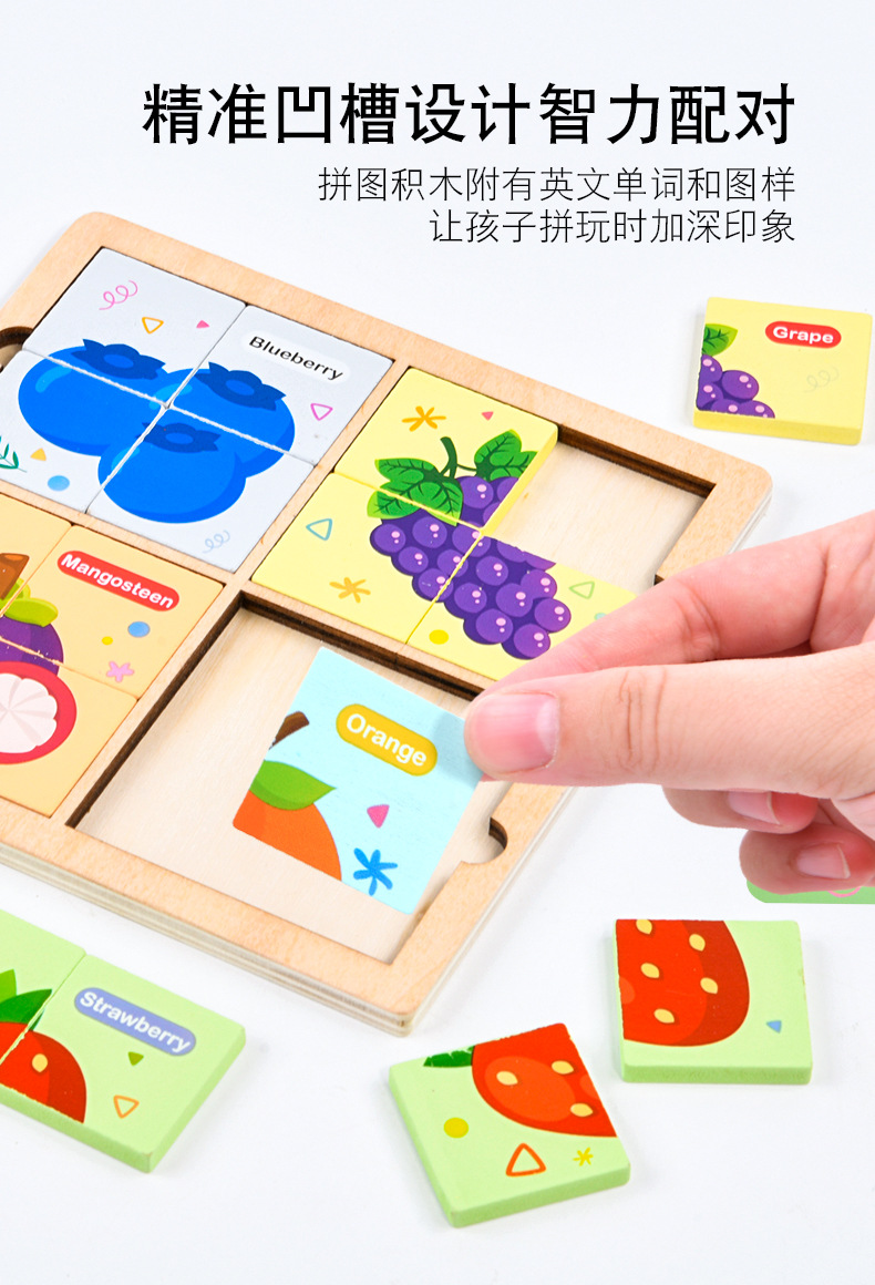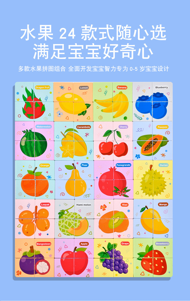 Educación infantil 24 puzzles de fruta forma juegos de emparejamiento de juegos de entrenamiento de rompecabezas padres-hijos interactivos puzzle de madera