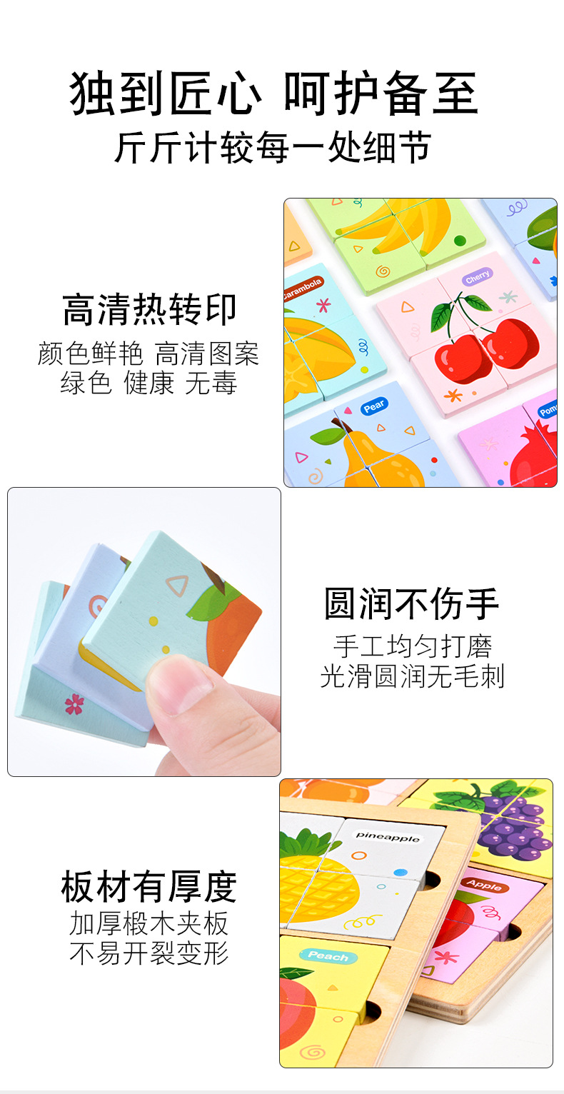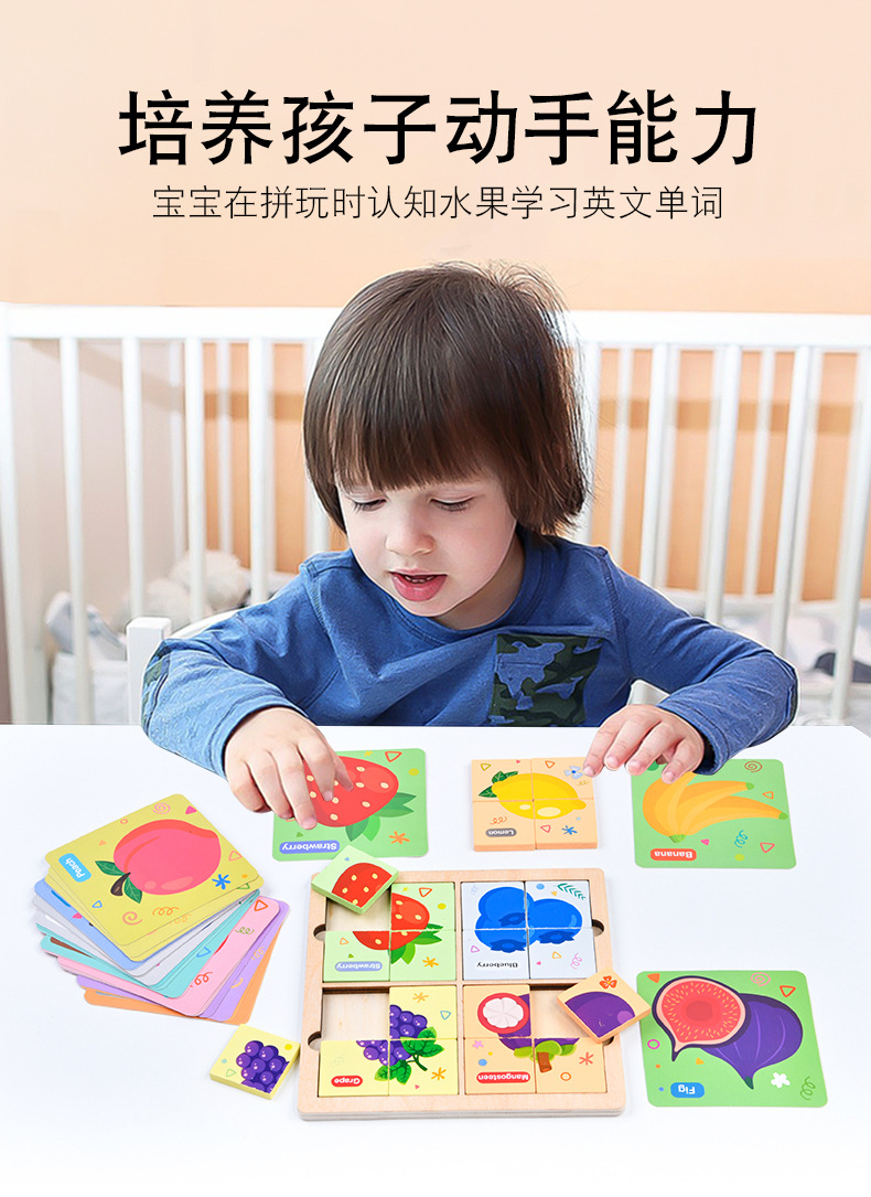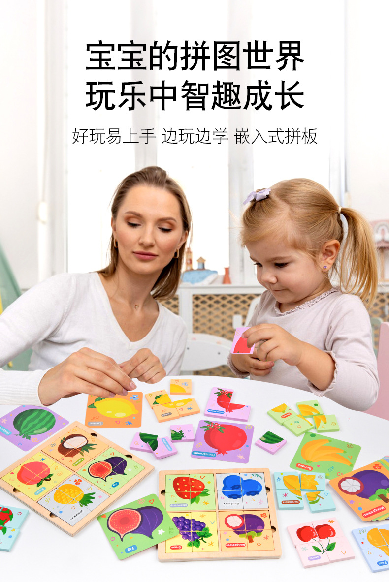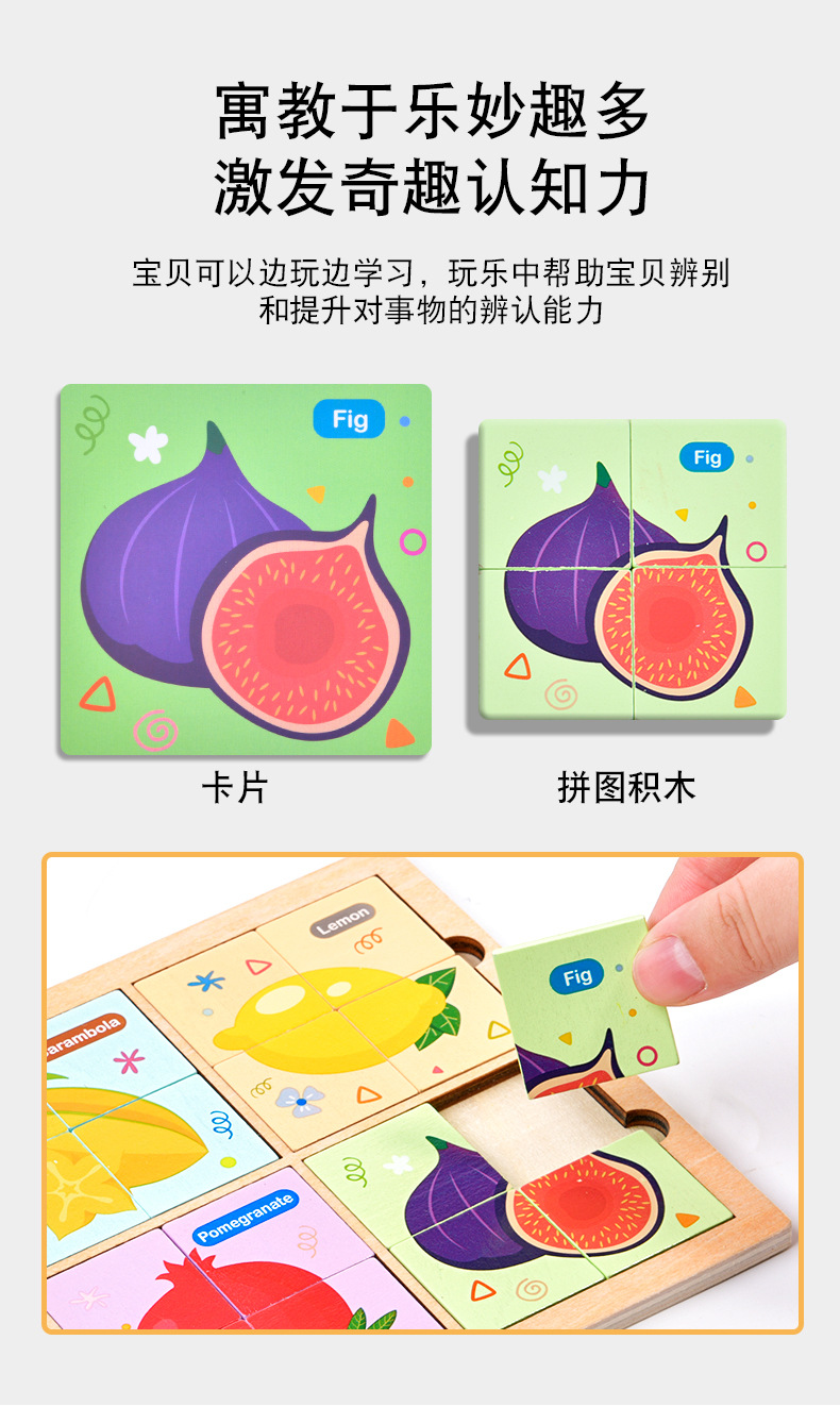 Educación infantil 24 puzzles de fruta forma juegos de emparejamiento de juegos de entrenamiento de rompecabezas padres-hijos interactivos puzzle de madera
