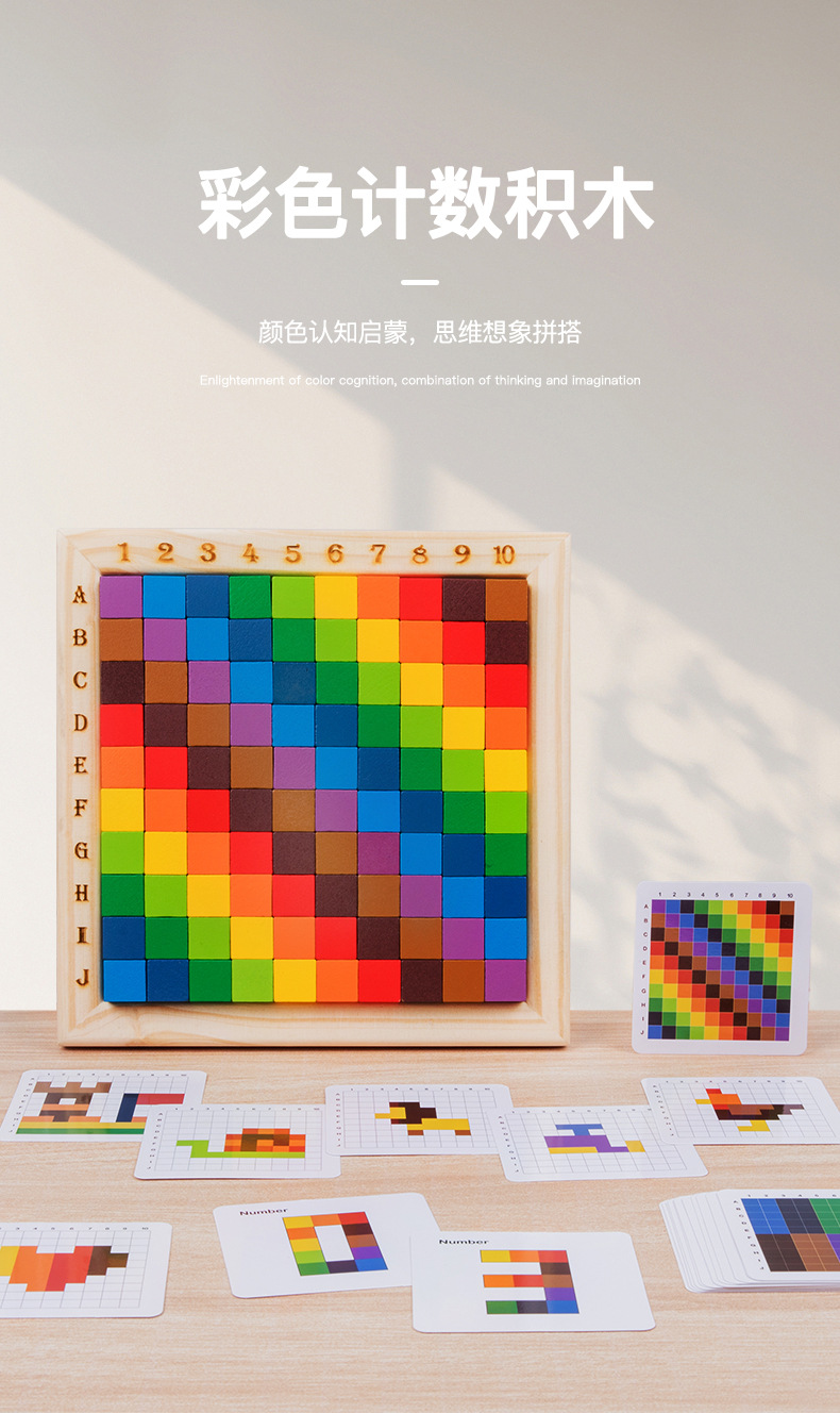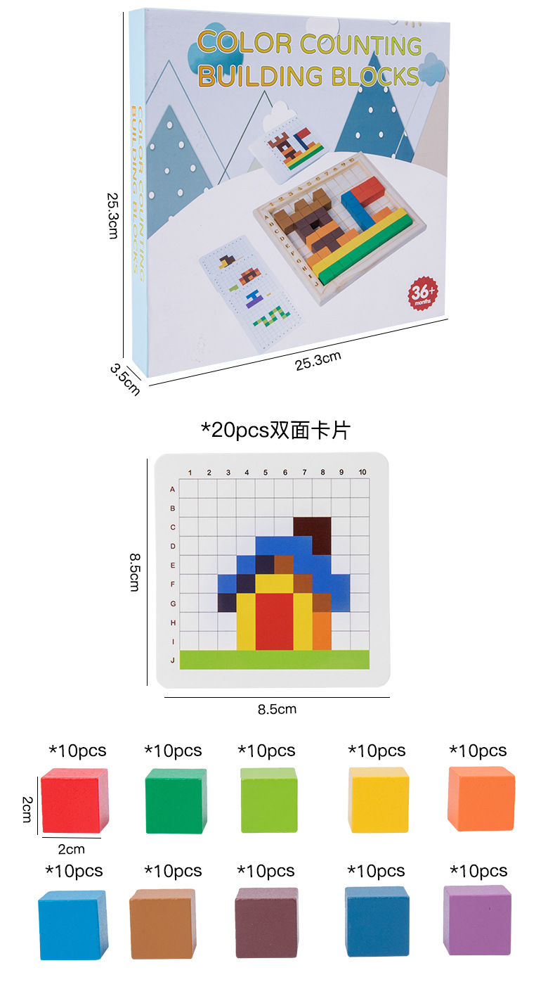 Niños de madera de color cubo de conteo de bloques de construcción de color cognitivo ordenar puzzles apilados juguetes de educación temprana para niños