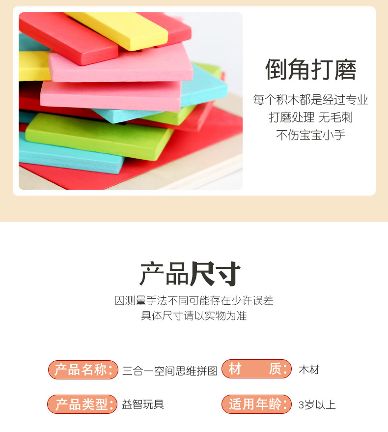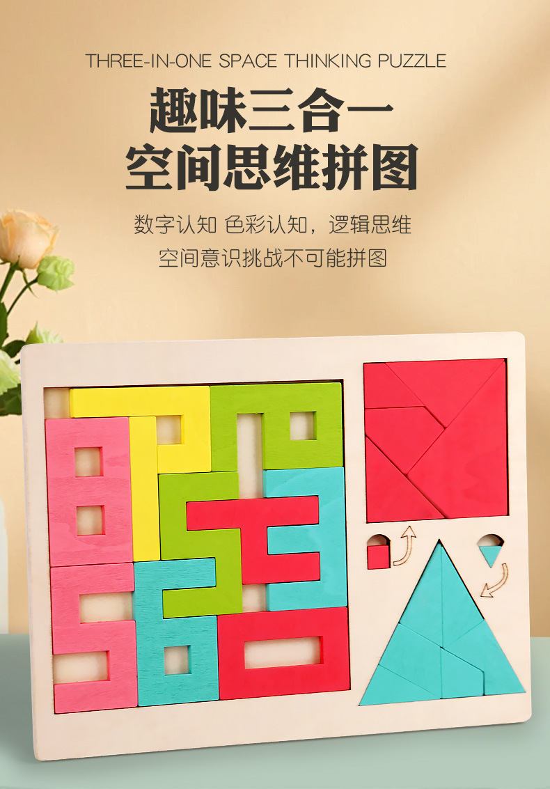 | Color | Rompecabezas de pensamiento espacial de tres en uno |