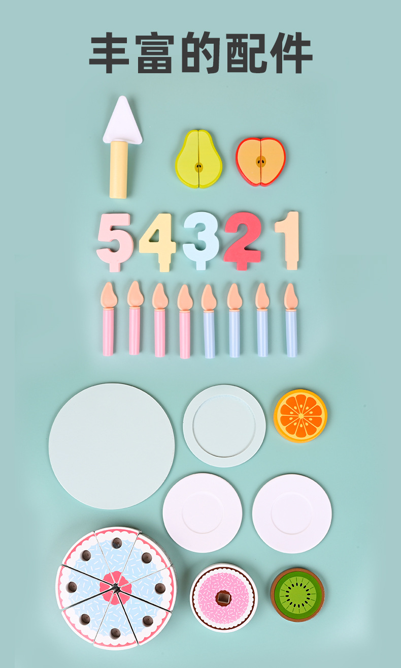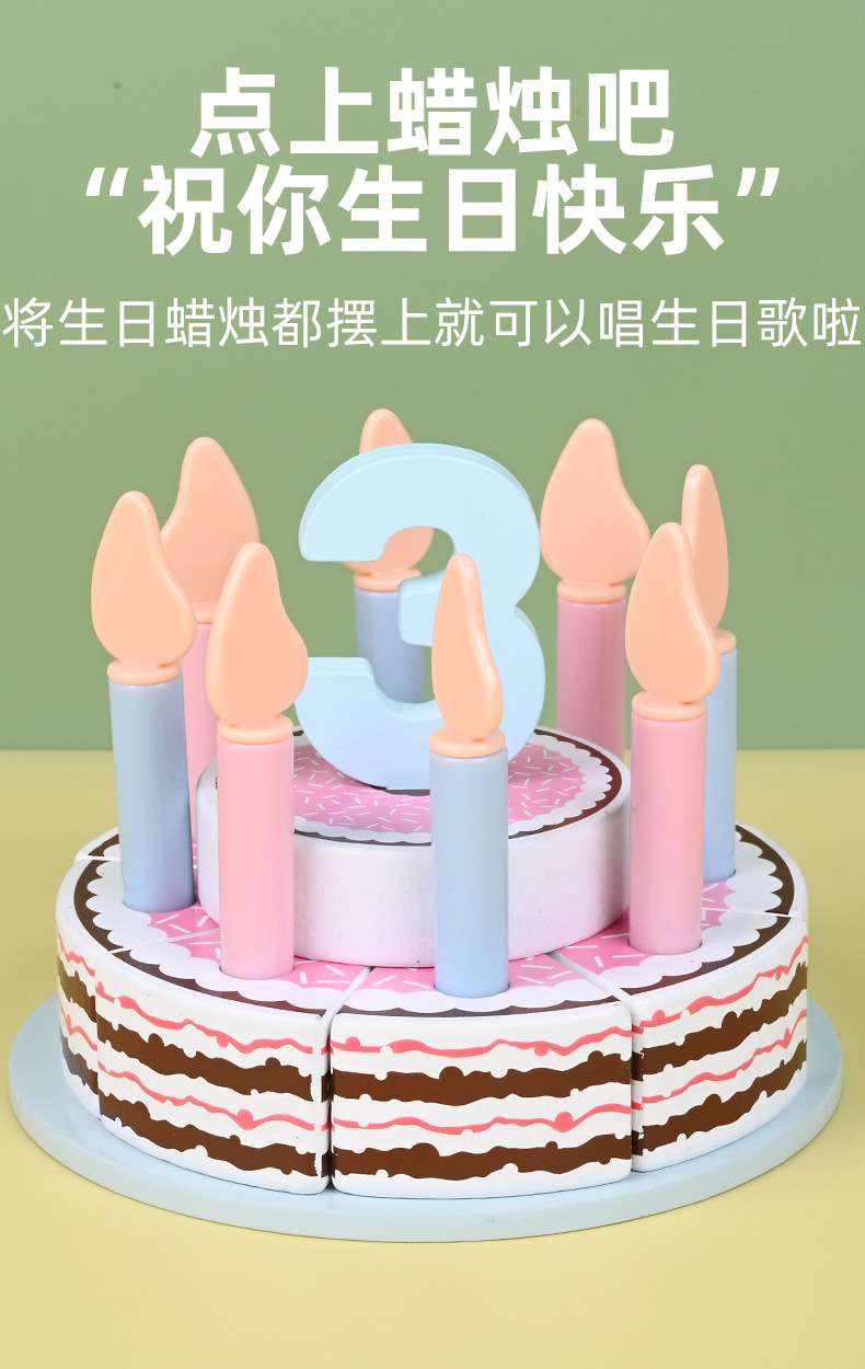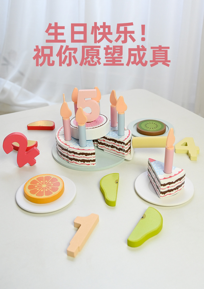 Niños de madera pastel de cumpleaños simulado interactivo padre-hijo juguetes de regalo de cumpleaños social para niños y niñas