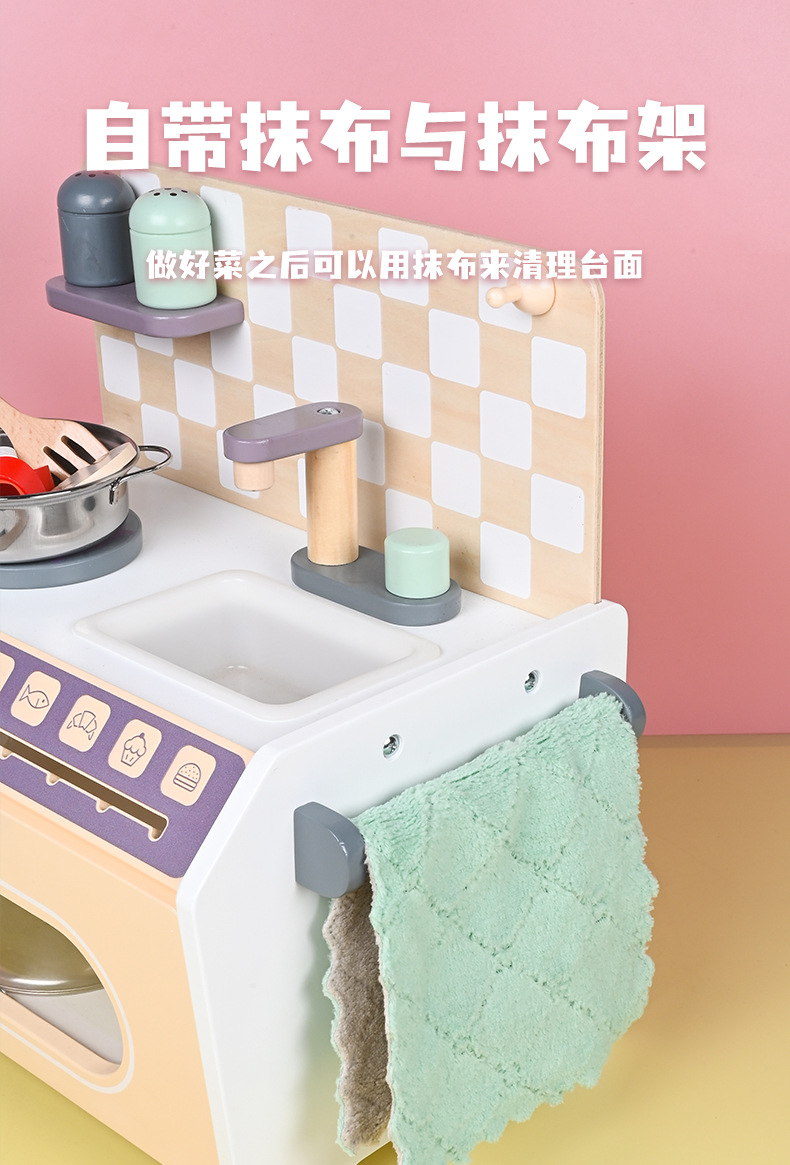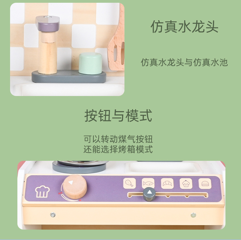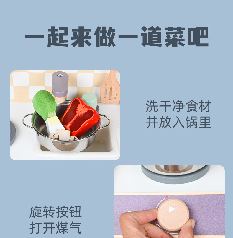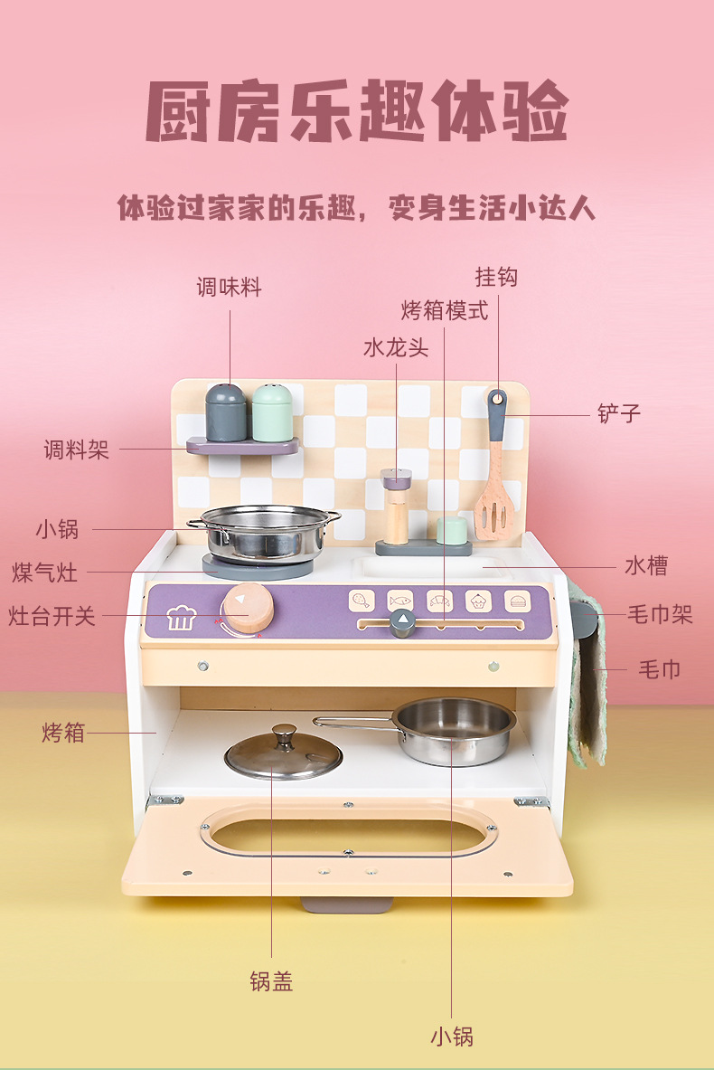 Casa de juegos Cocina pequeña para niños Cocina bebé Simulación de madera Condimento Olla Juego de estufa Juguete de simulación Niño