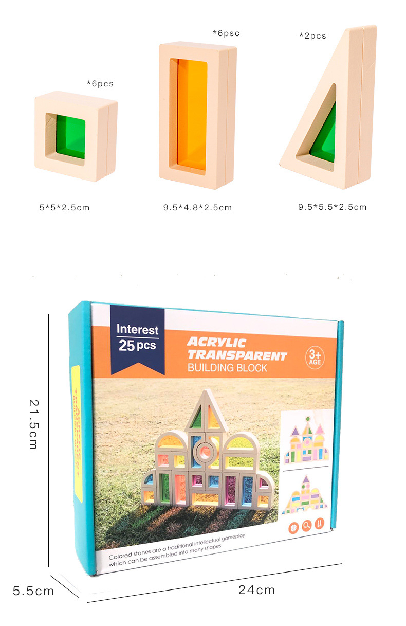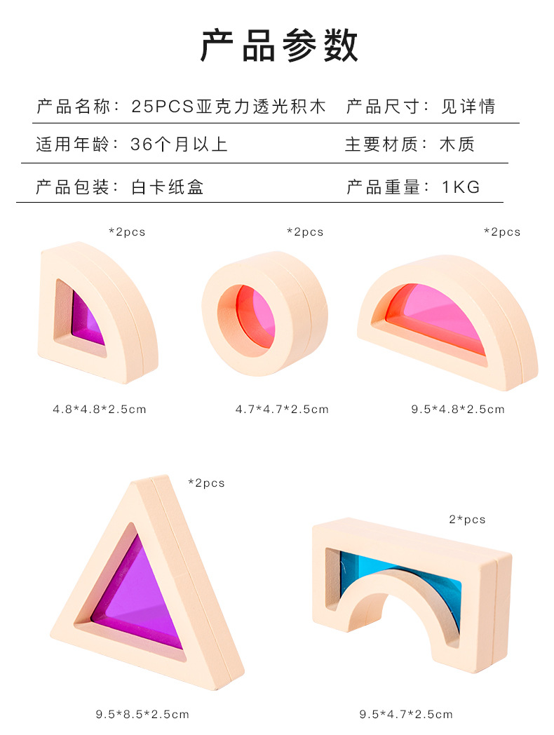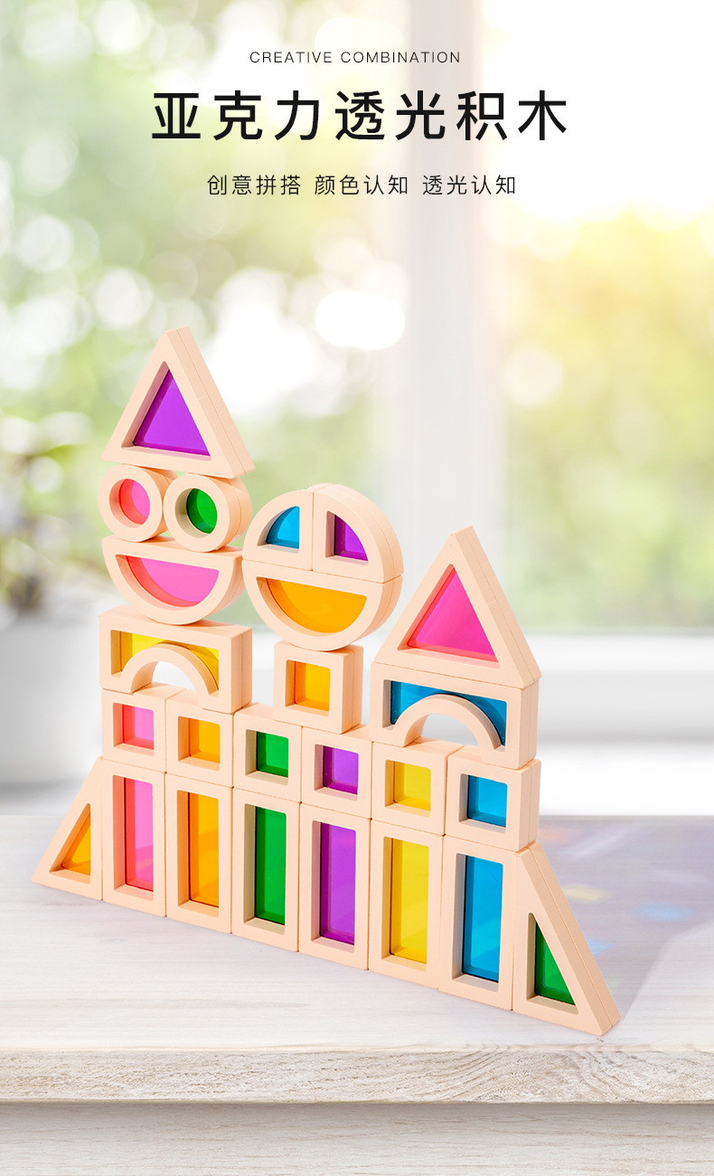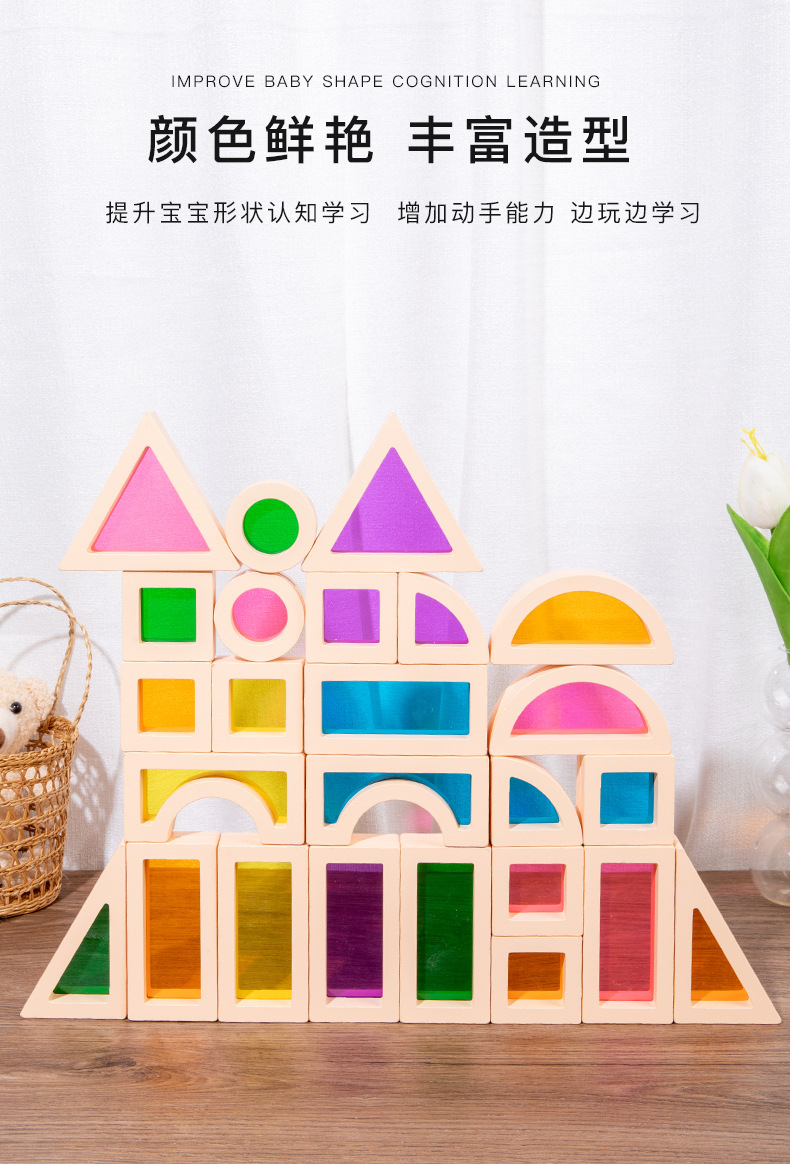 Fábrica directa de madera escritorio rompecabezas pieza de forma cognitiva acrílico arco iris bloques juguetes de educación temprana para niños