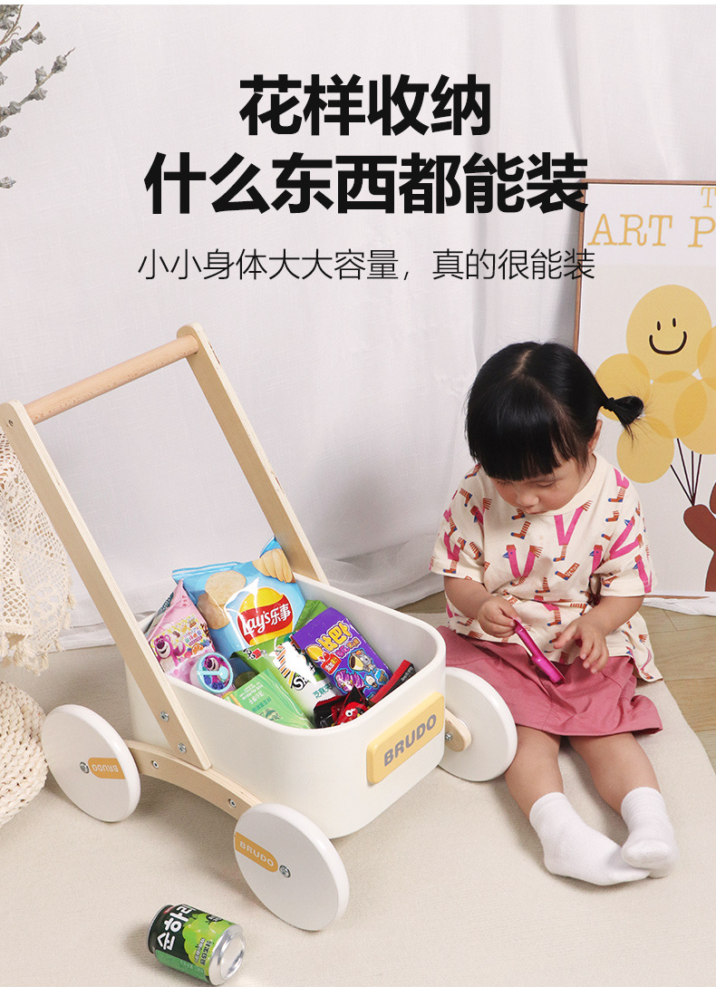 Niños pequeños 3 años de edad, cochecito multifuncional de madera, juguetes, bebé, artículos multifuncionales, almacenamiento al por mayor