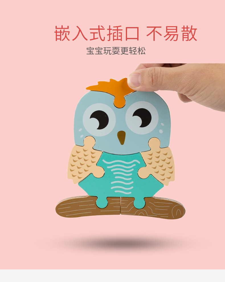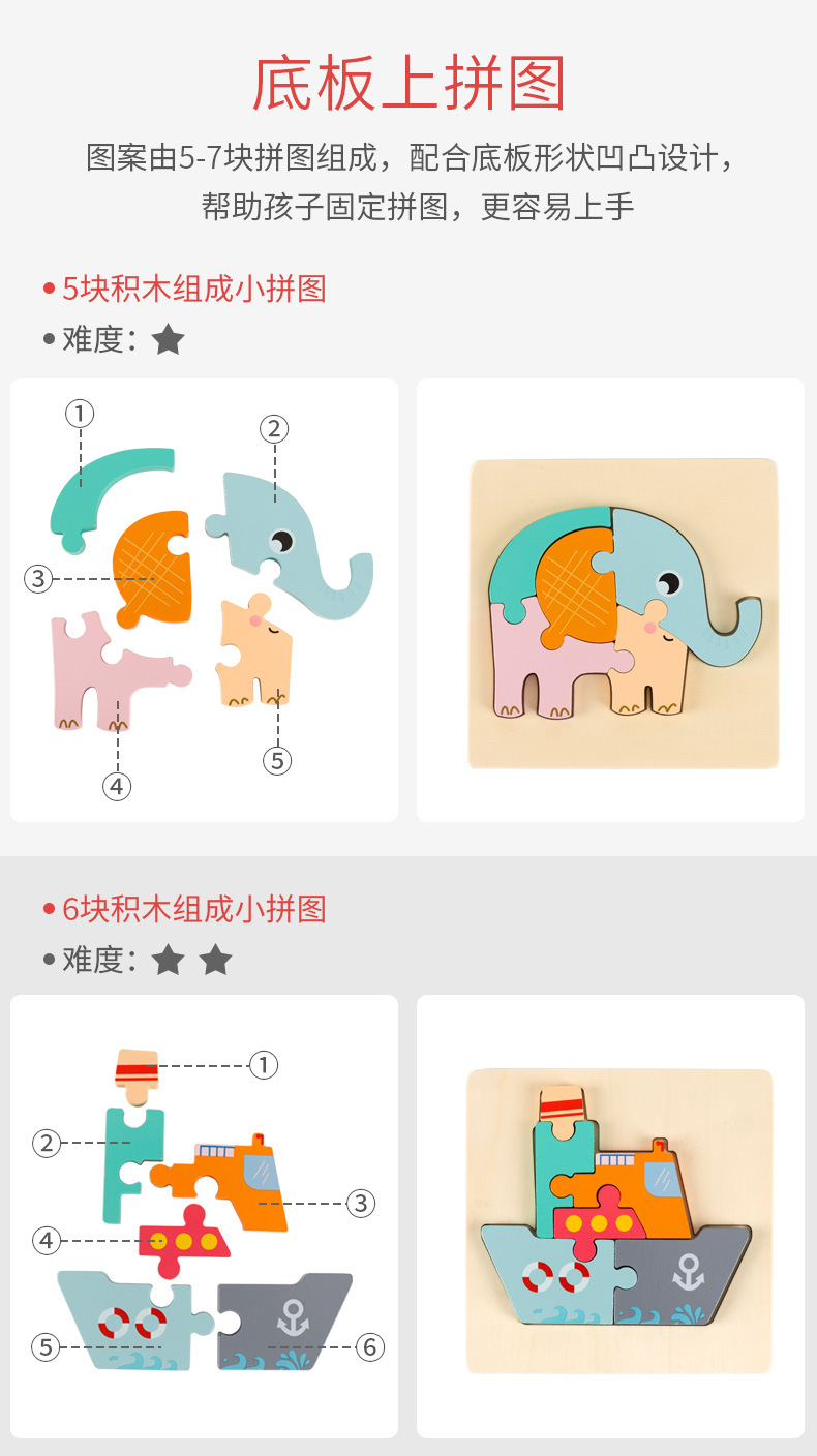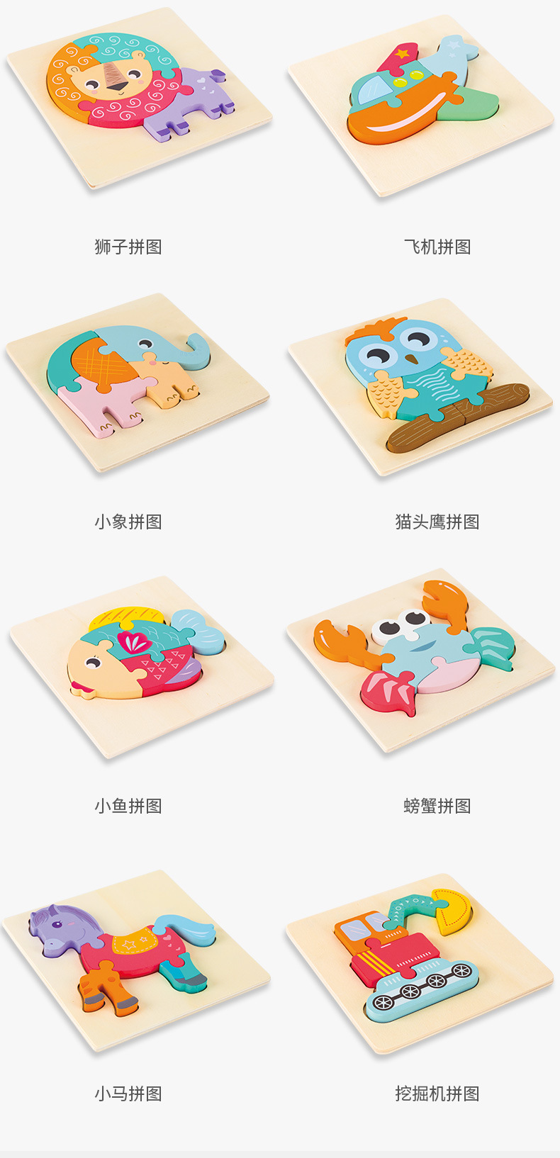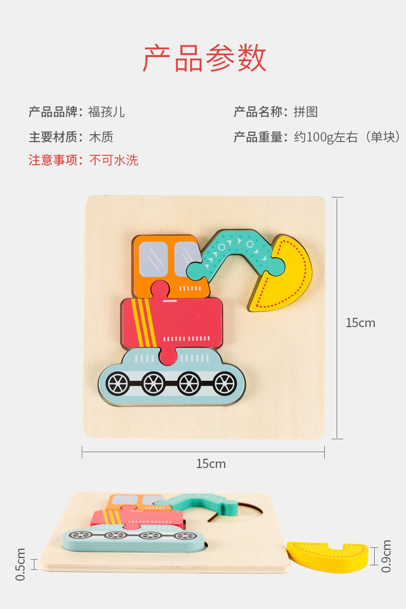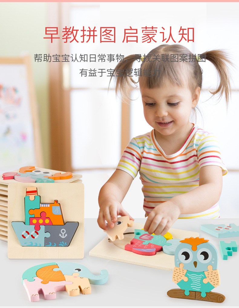 Educación temprana para niños puzzle de tráfico de animales tridimensionales puzzle de madera para bebés juguetes de montaje