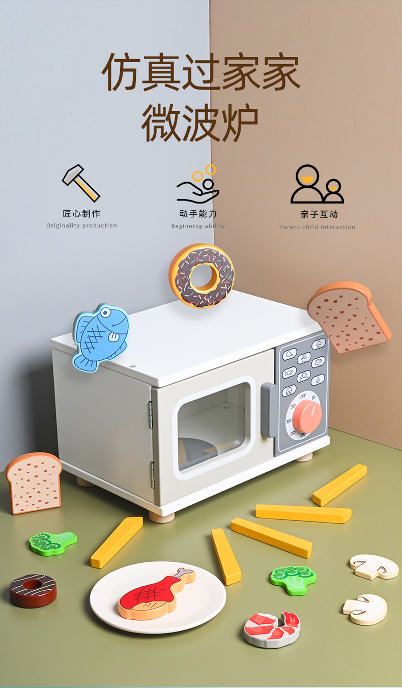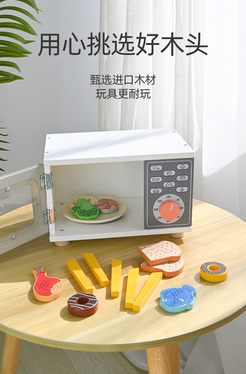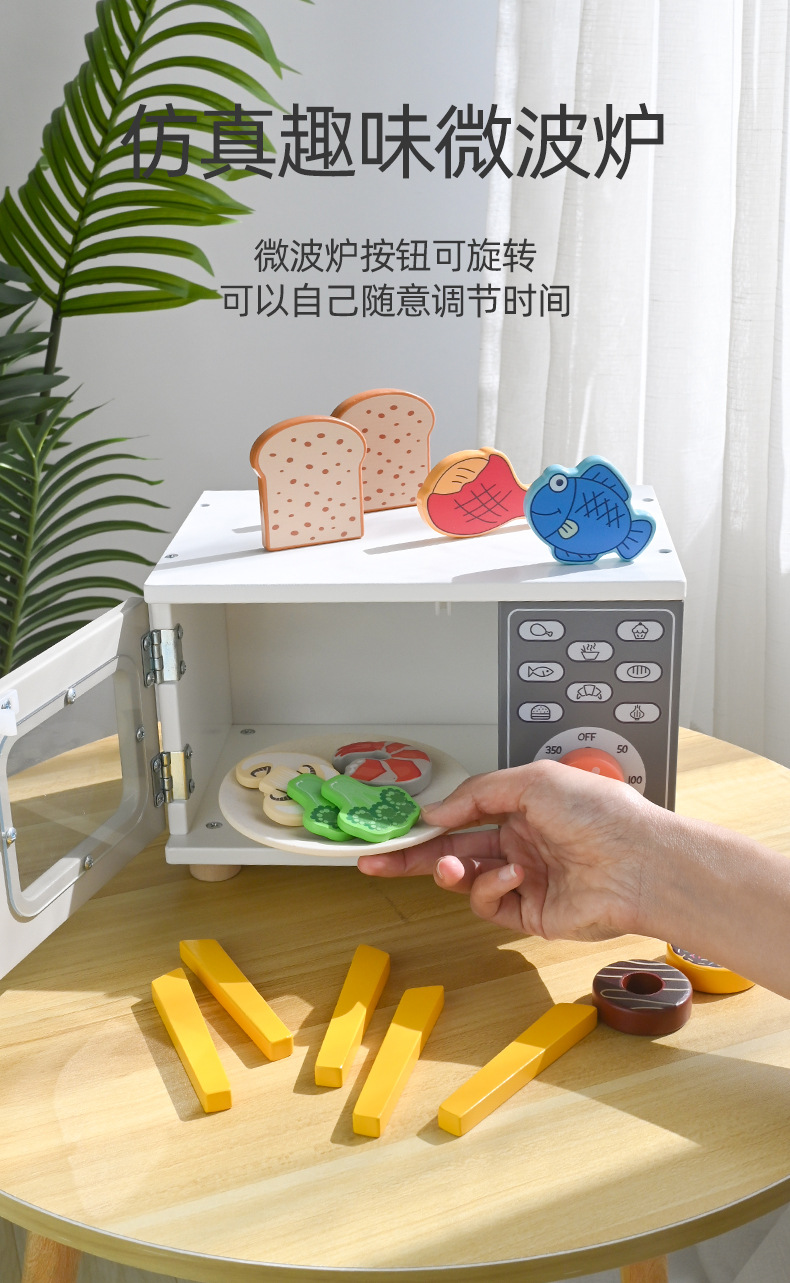 Niños de 3 - 6 años de edad, cocina para niños y niñas, juguetes de microondas de madera simulación juguetes de cocina