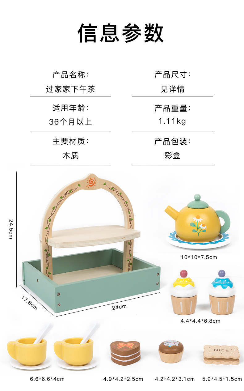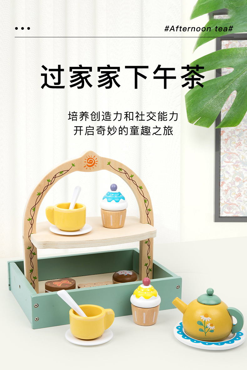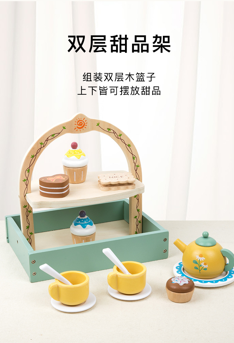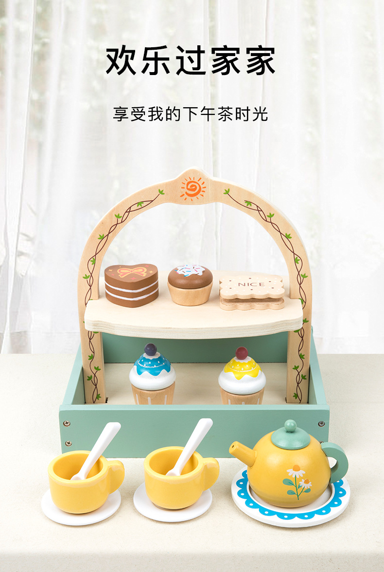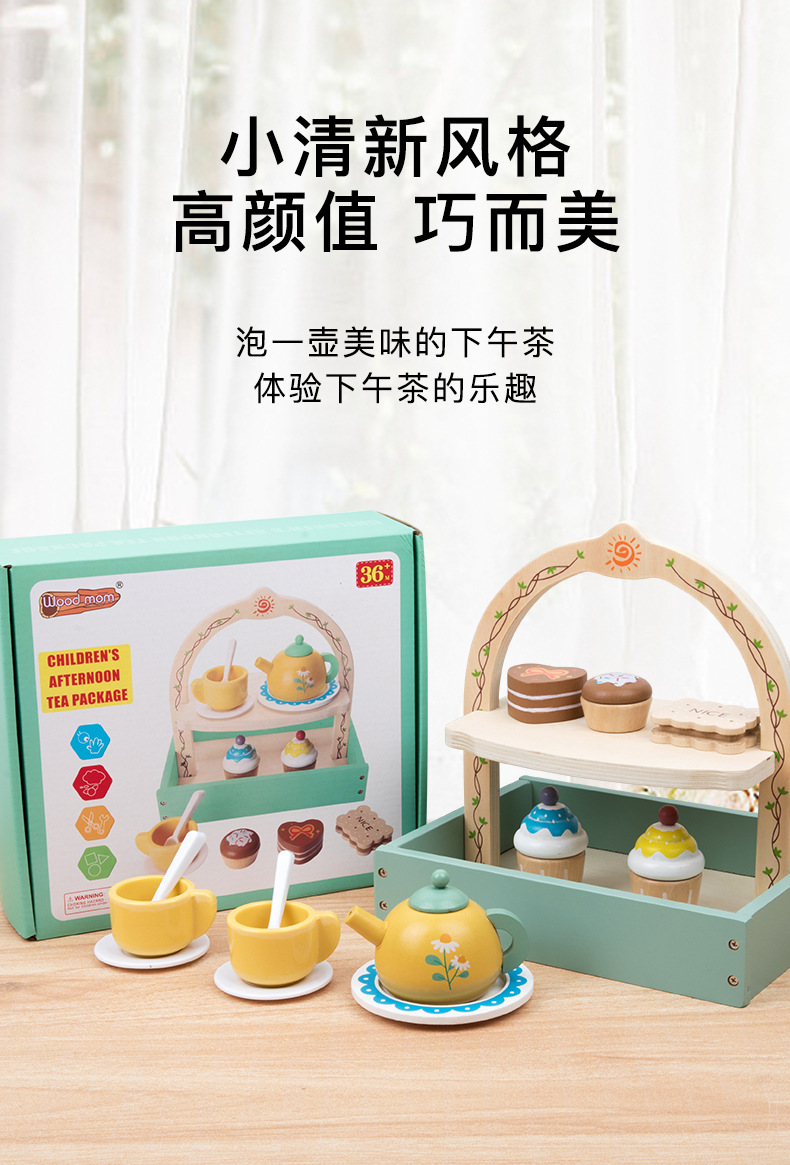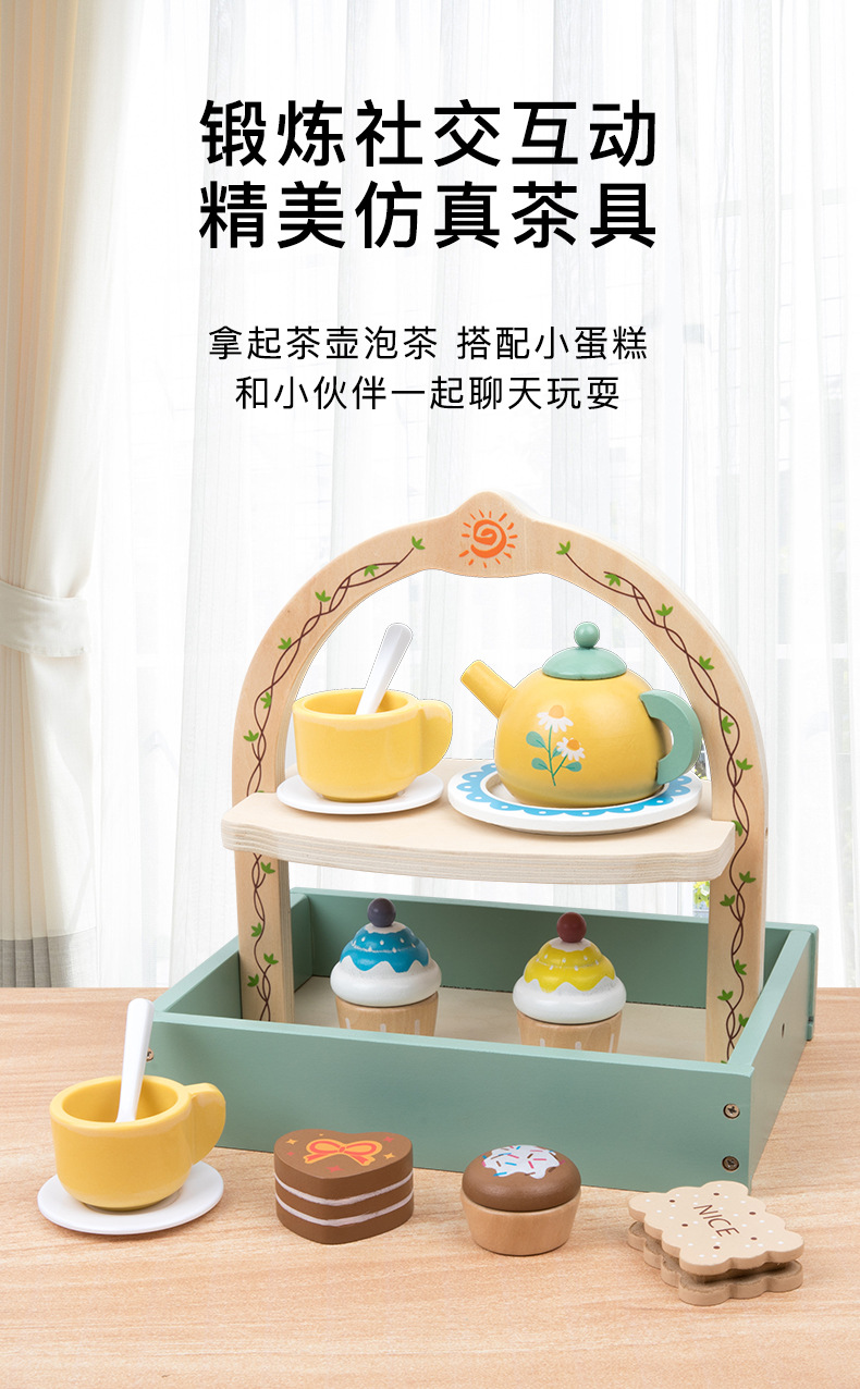 Simulación infantil de té de la tarde tetera de té dulces pastel galletas interacción padre-hijo puzzle juguetes de madera