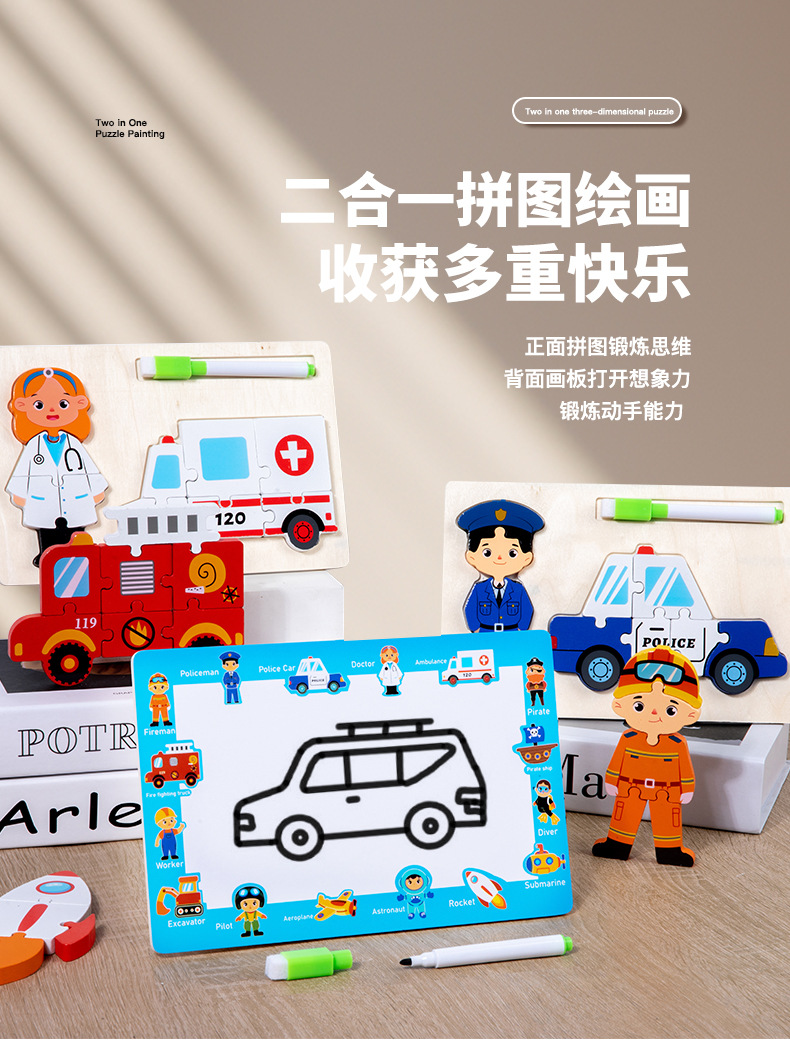 Puzzle infantil de madera 2 - en - 1 personaje cognitivo tridimensional puzzle puzzle juguete de desarrollo intelectual para bebés