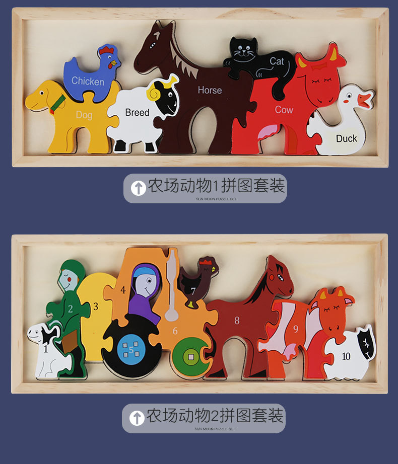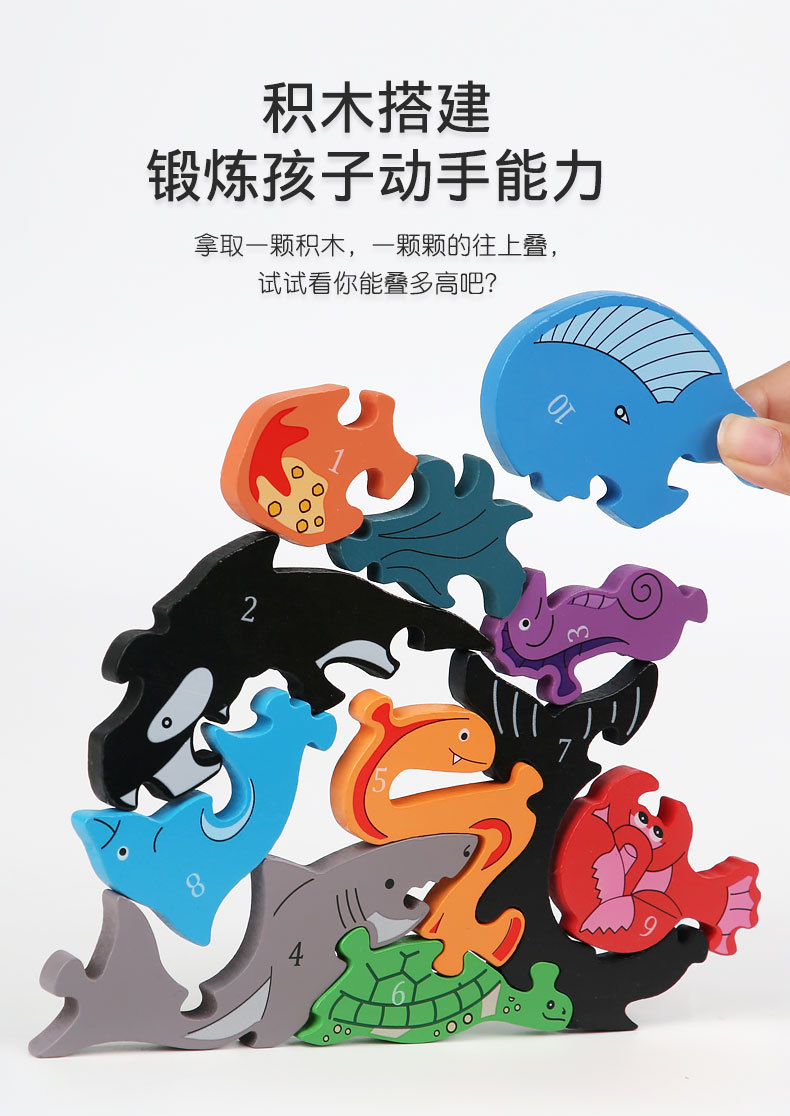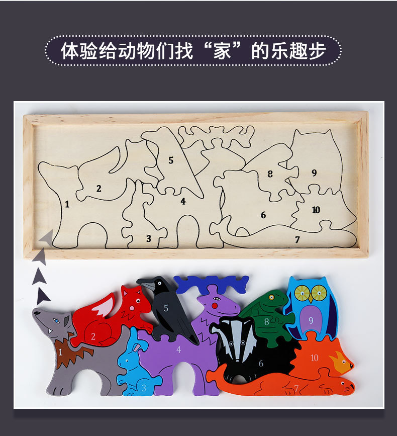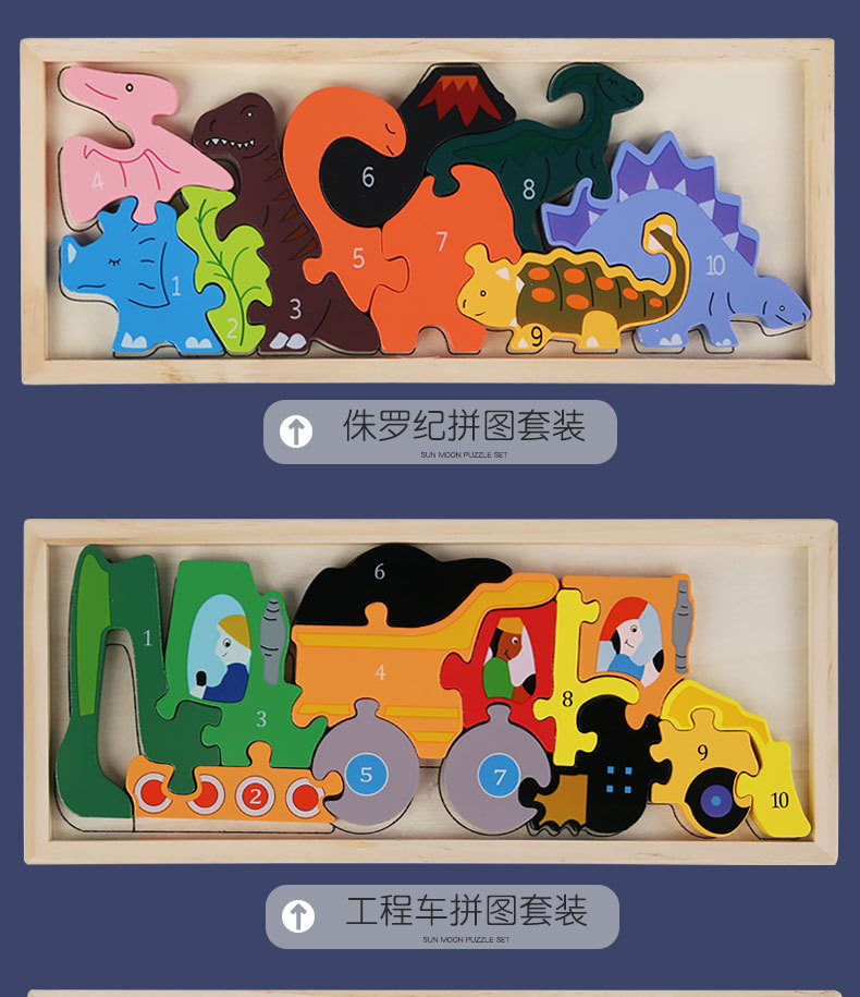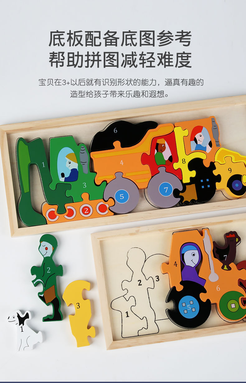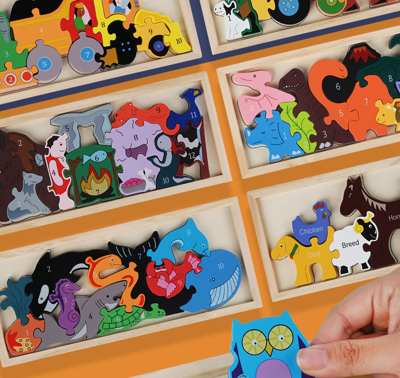 Puzzles tridimensionales digitales de madera Puzzles de tráfico digital Bloques de construcción Animal mano agarrar tablero de contraposición Juguetes de madera para niños