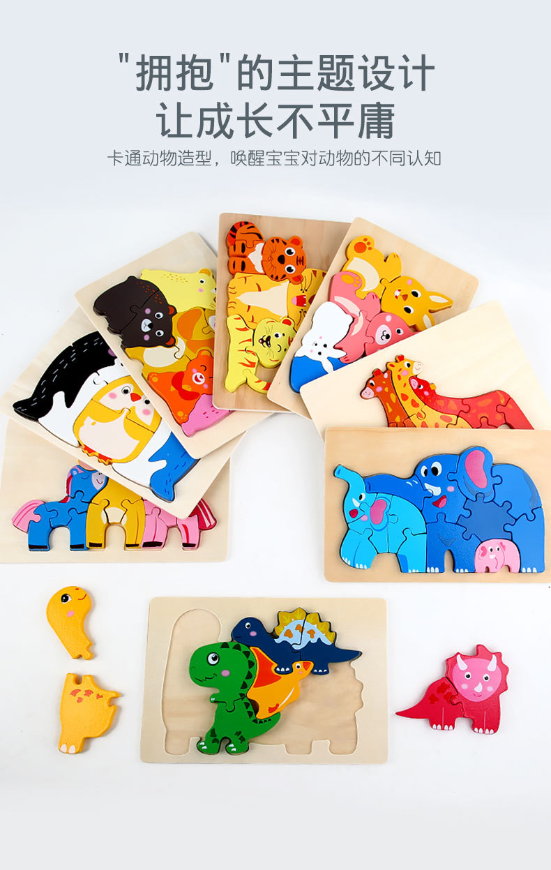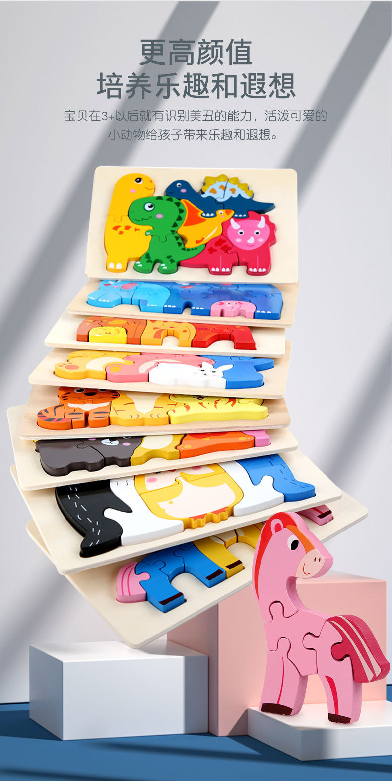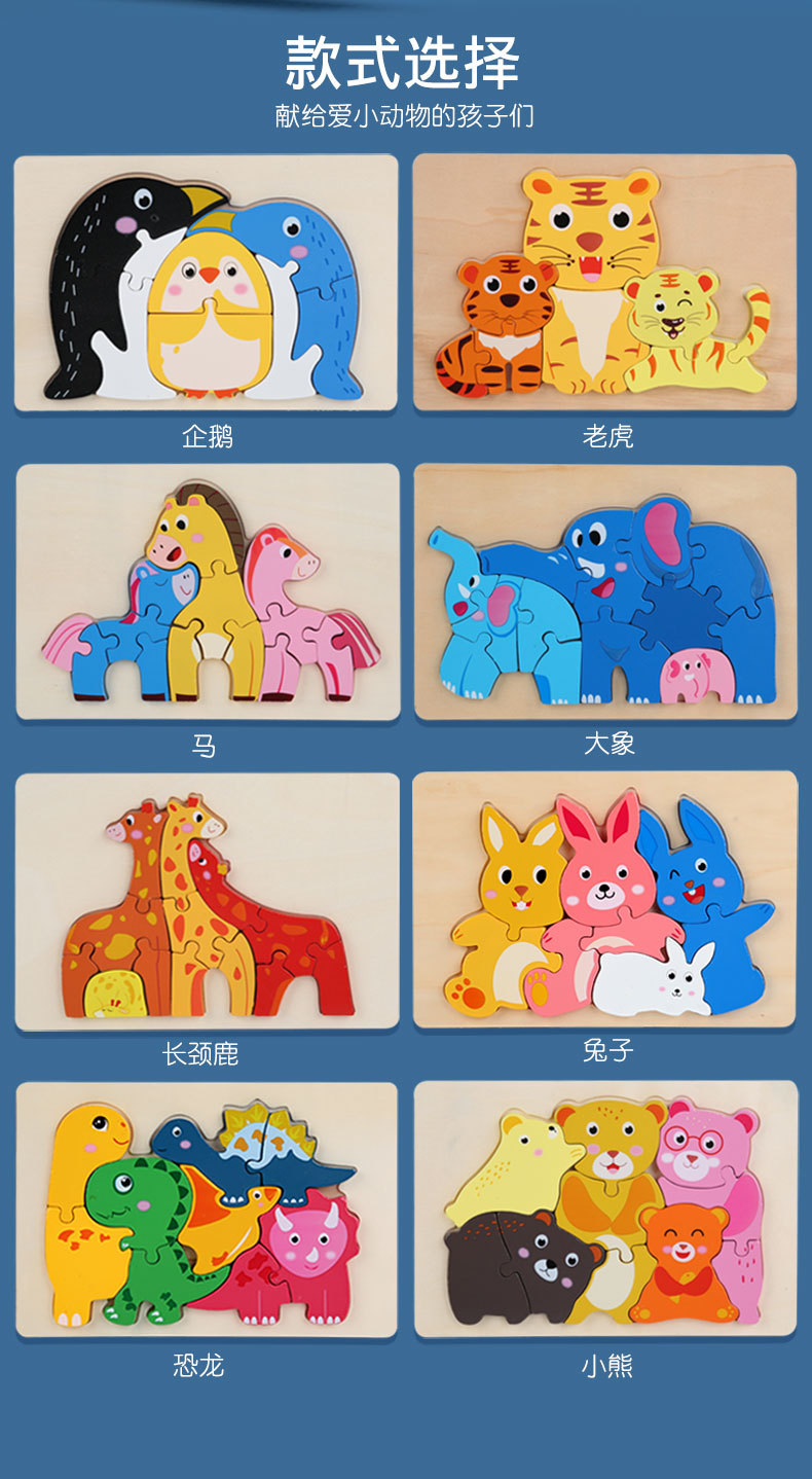 Nuevos ocho rompecabezas de animales de dibujos animados de madera para niños