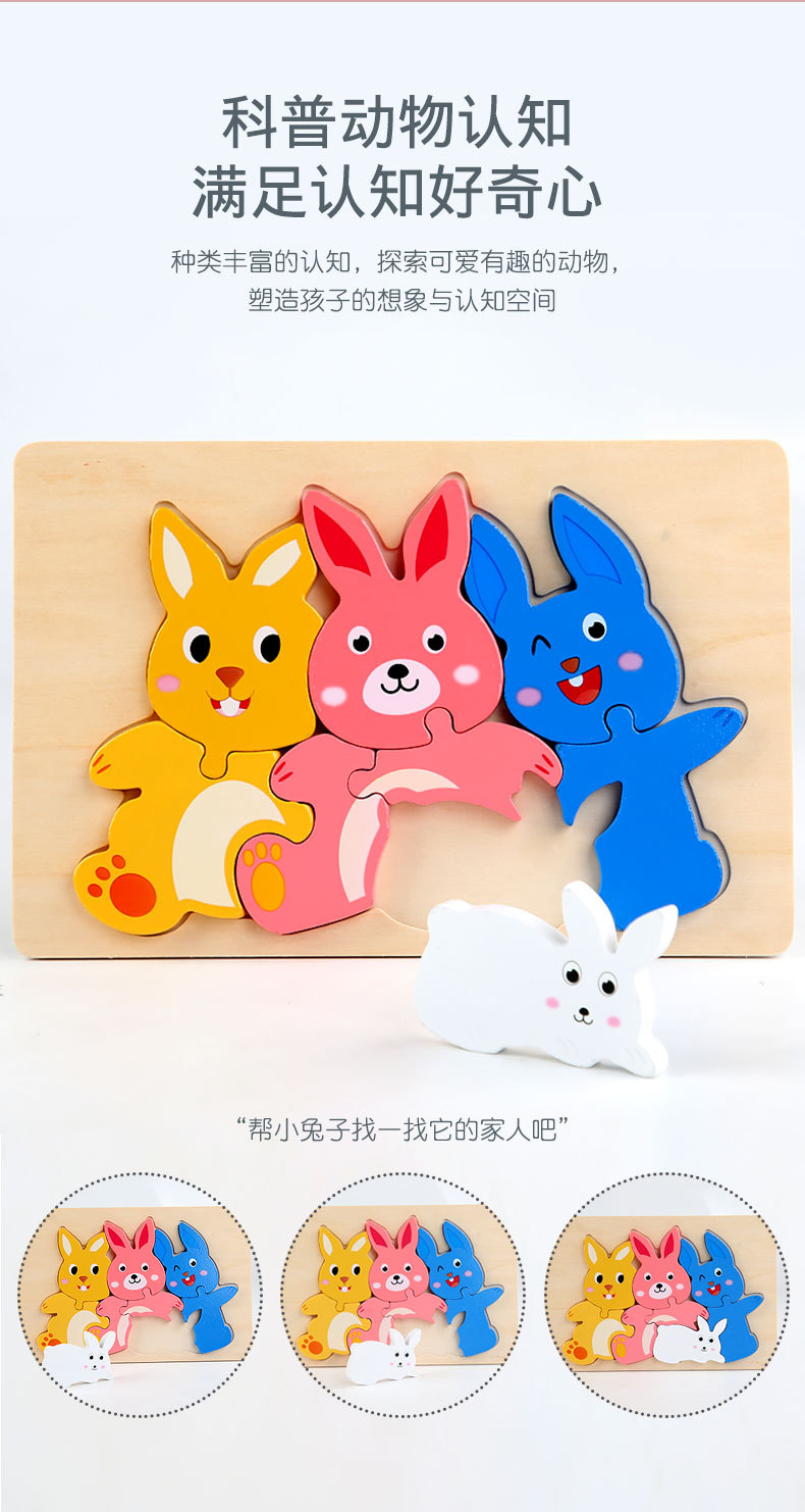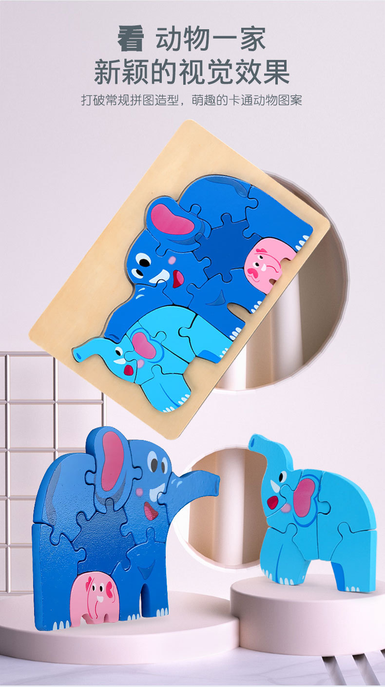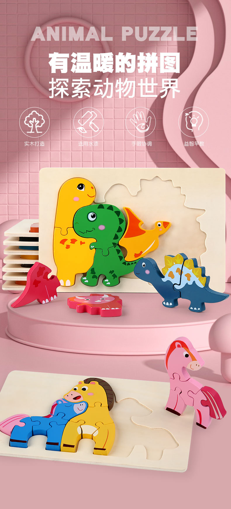 Nuevos ocho rompecabezas de animales de dibujos animados de madera para niños