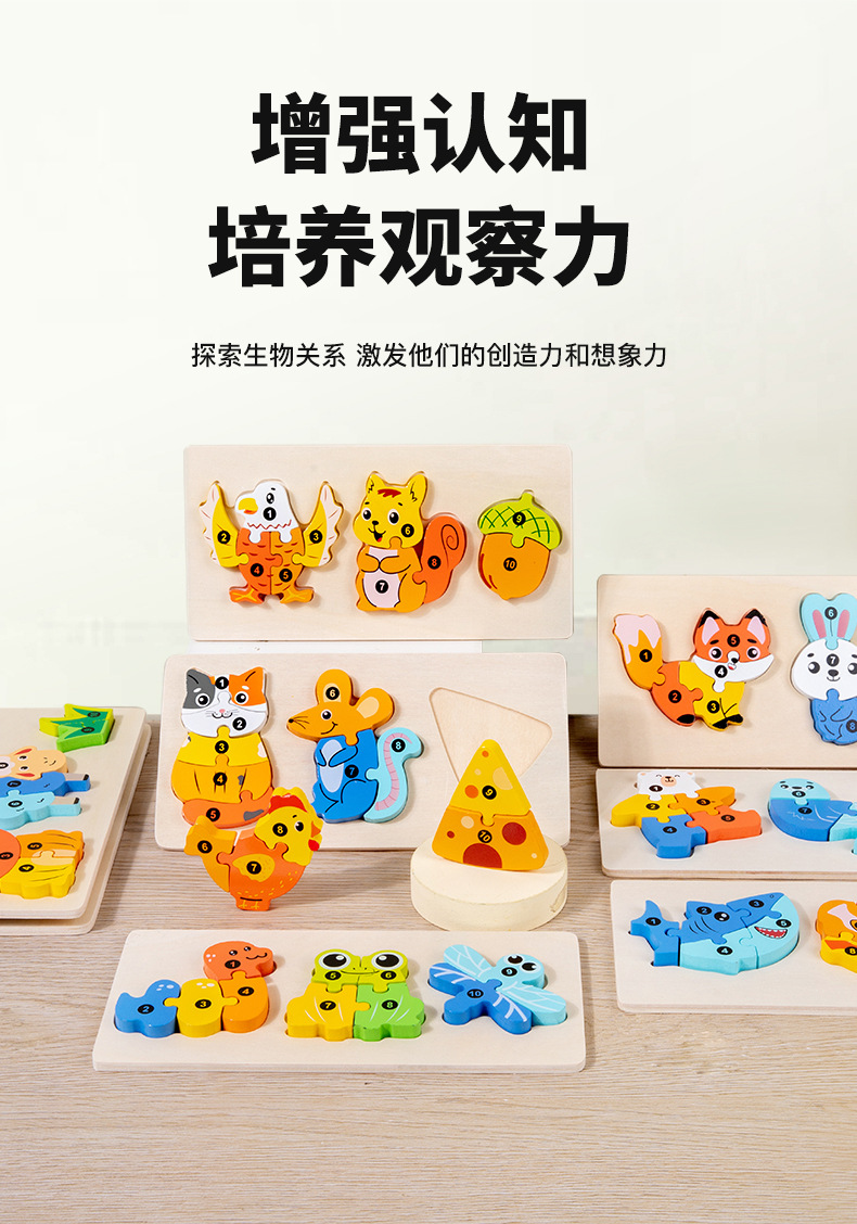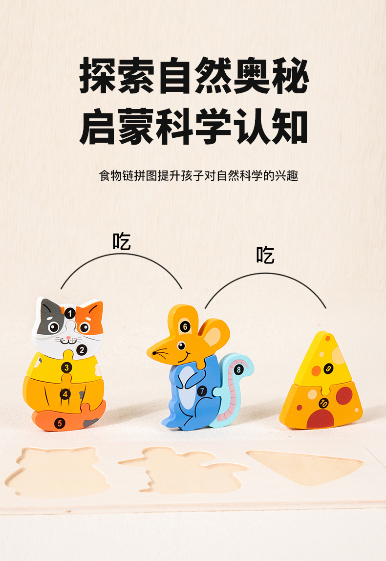 CE CPC infantil juguetes de puzzle cadena alimentaria puzzle bloques de madera tridimensional juguetes de educación temprana