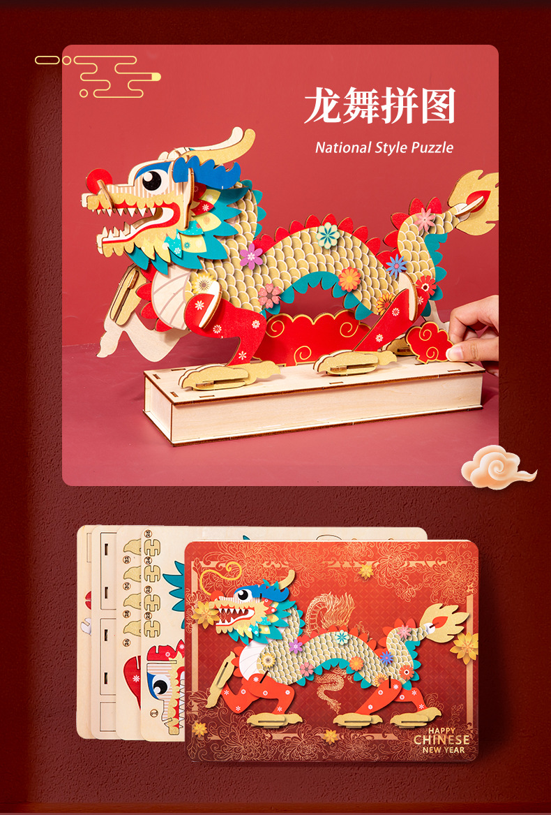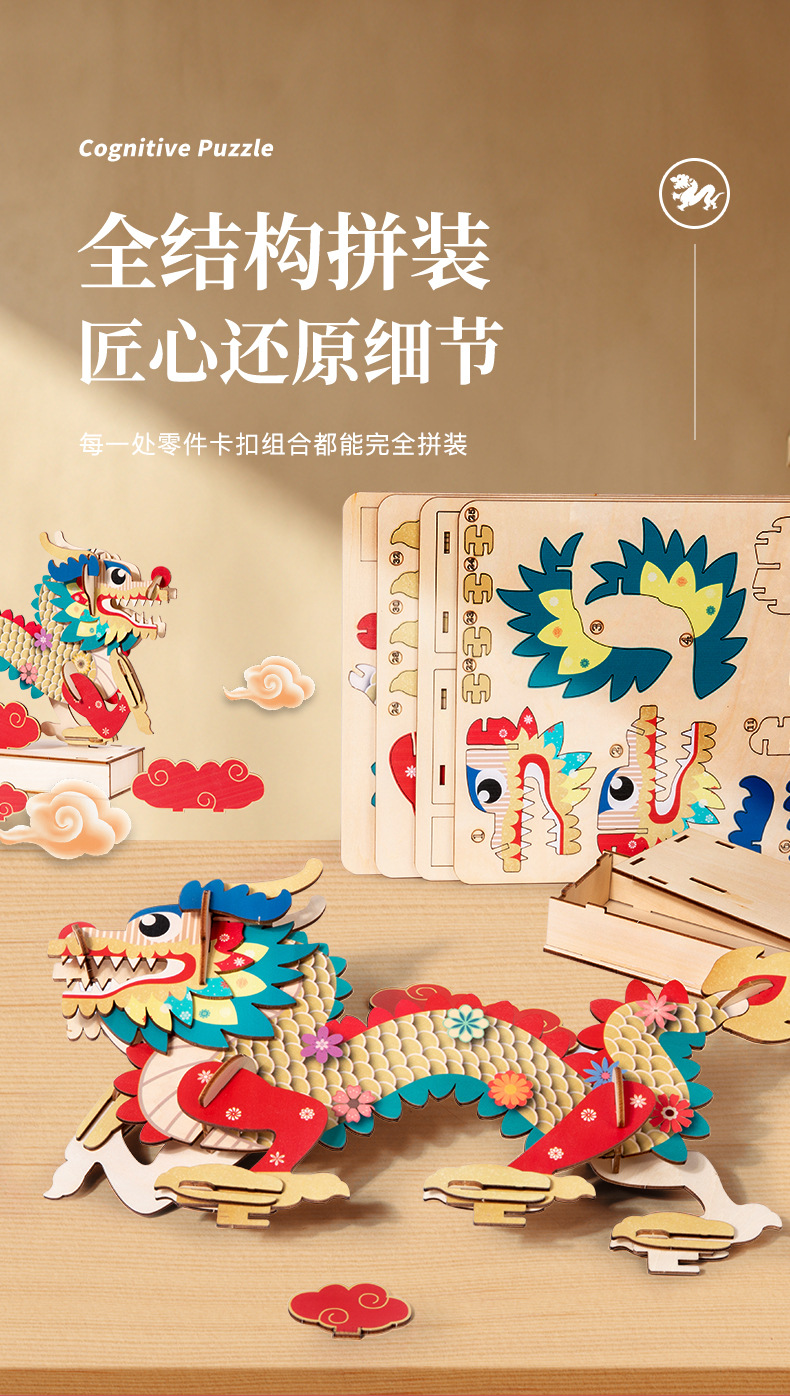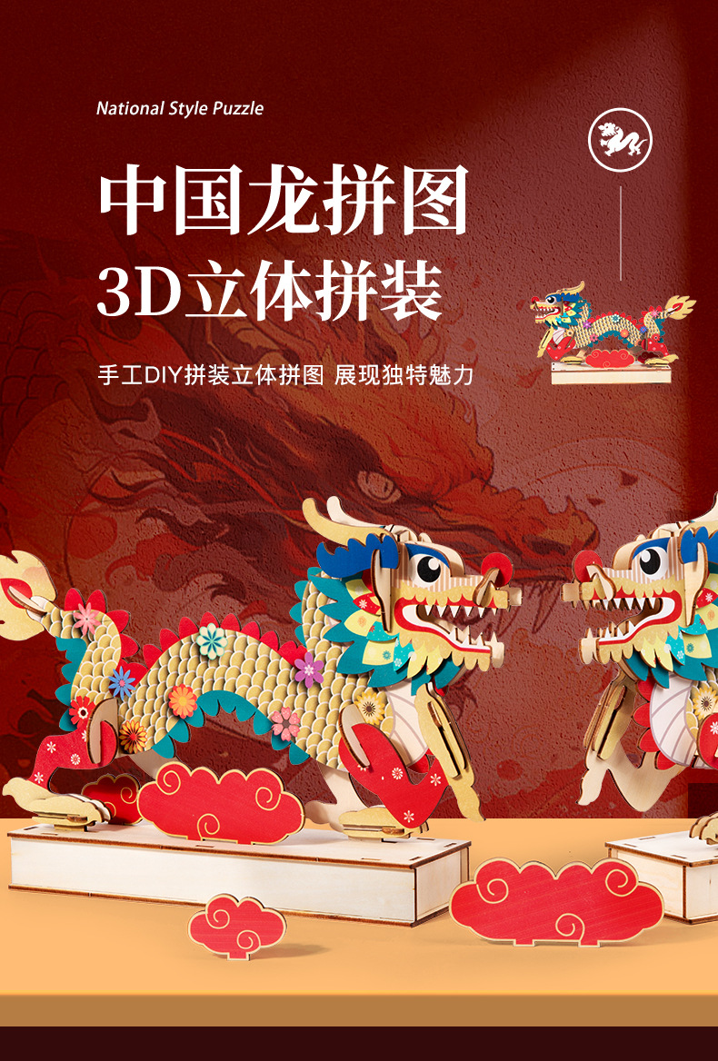 China dragón rompecabezas de madera ensamblado modelo tridimensional hecho a mano diy juguetes de puzzle para niños estilo nacional rompecabezas adornos