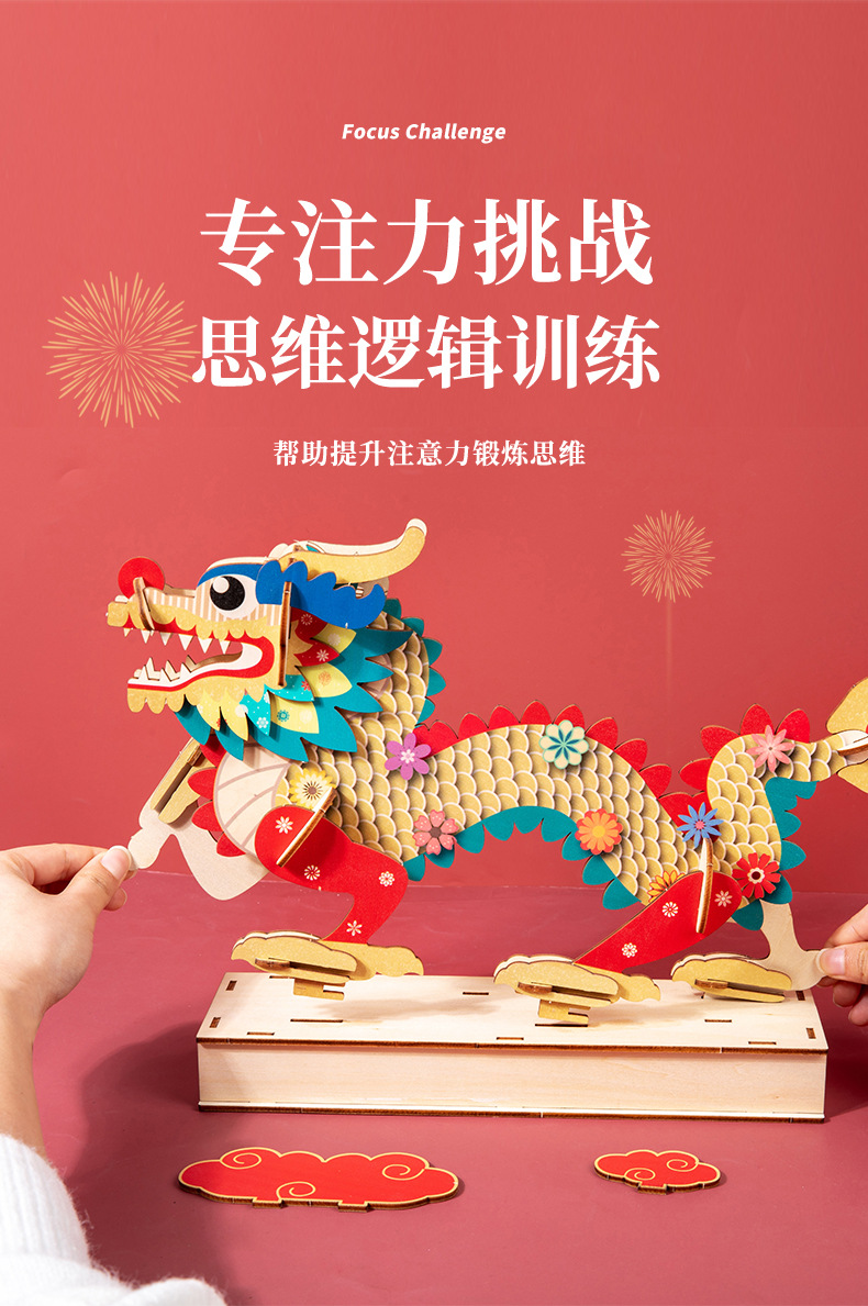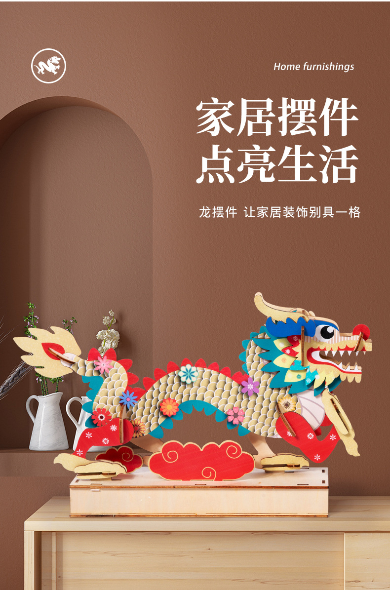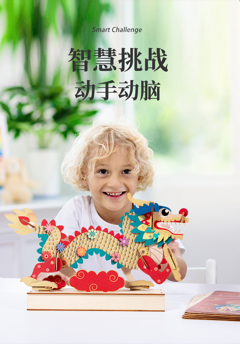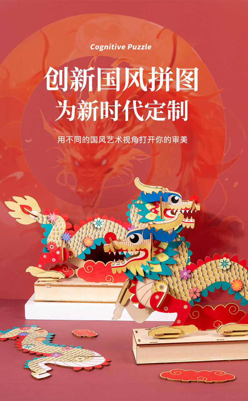 China dragón rompecabezas de madera ensamblado modelo tridimensional hecho a mano diy juguetes de puzzle para niños estilo nacional rompecabezas adornos