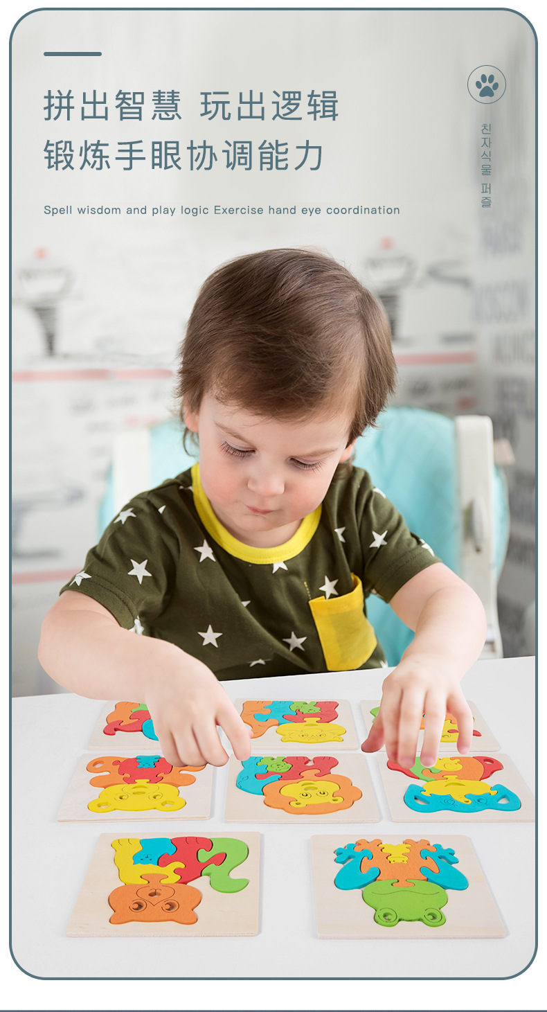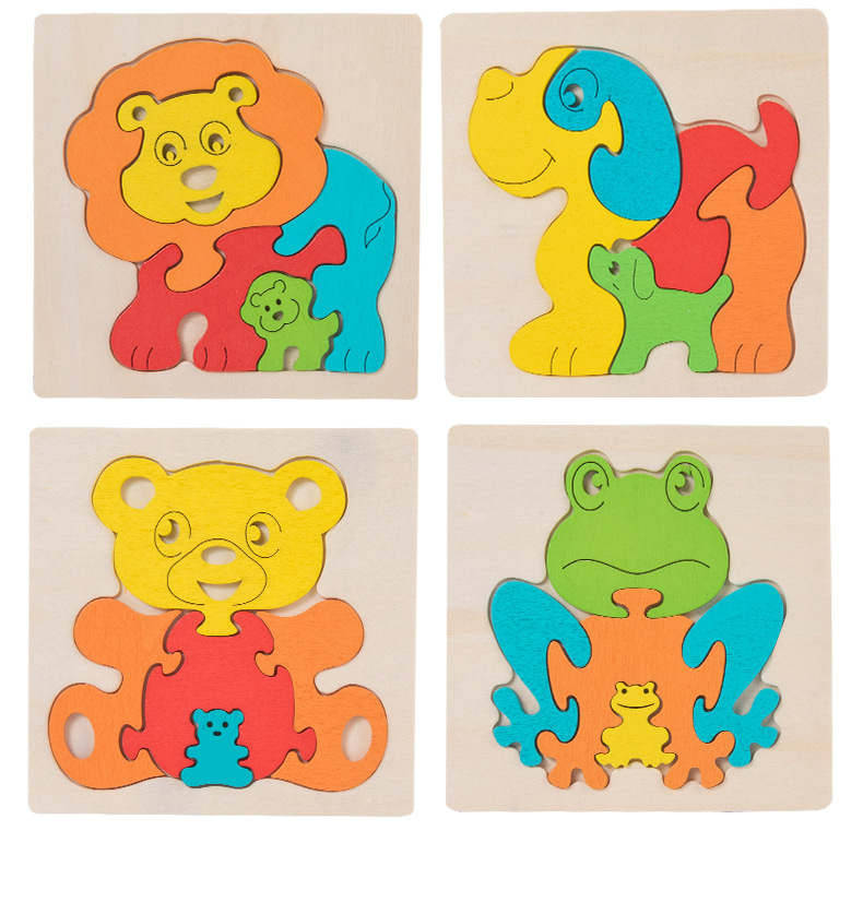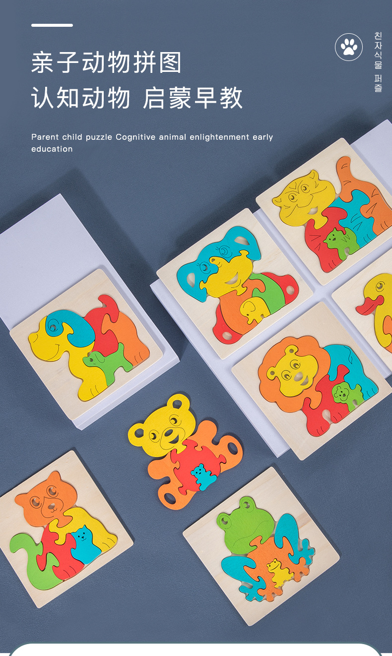 Fábrica directa de madera infantil plano puzzle padres-hijos patrón de animales cognición niños niñas juguetes de educación temprana