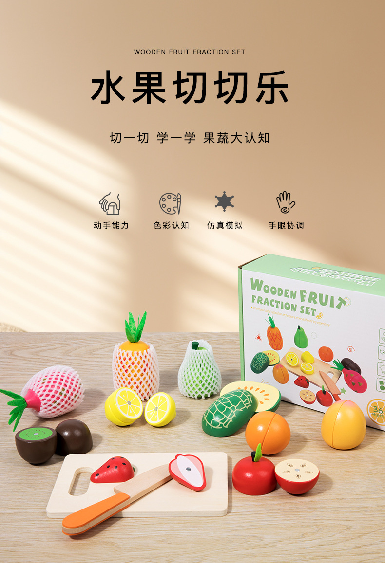 Educación temprana para niños madera simulación de cocina juegos de corte de frutas clasificados cortar juguetes caseros inteligentes