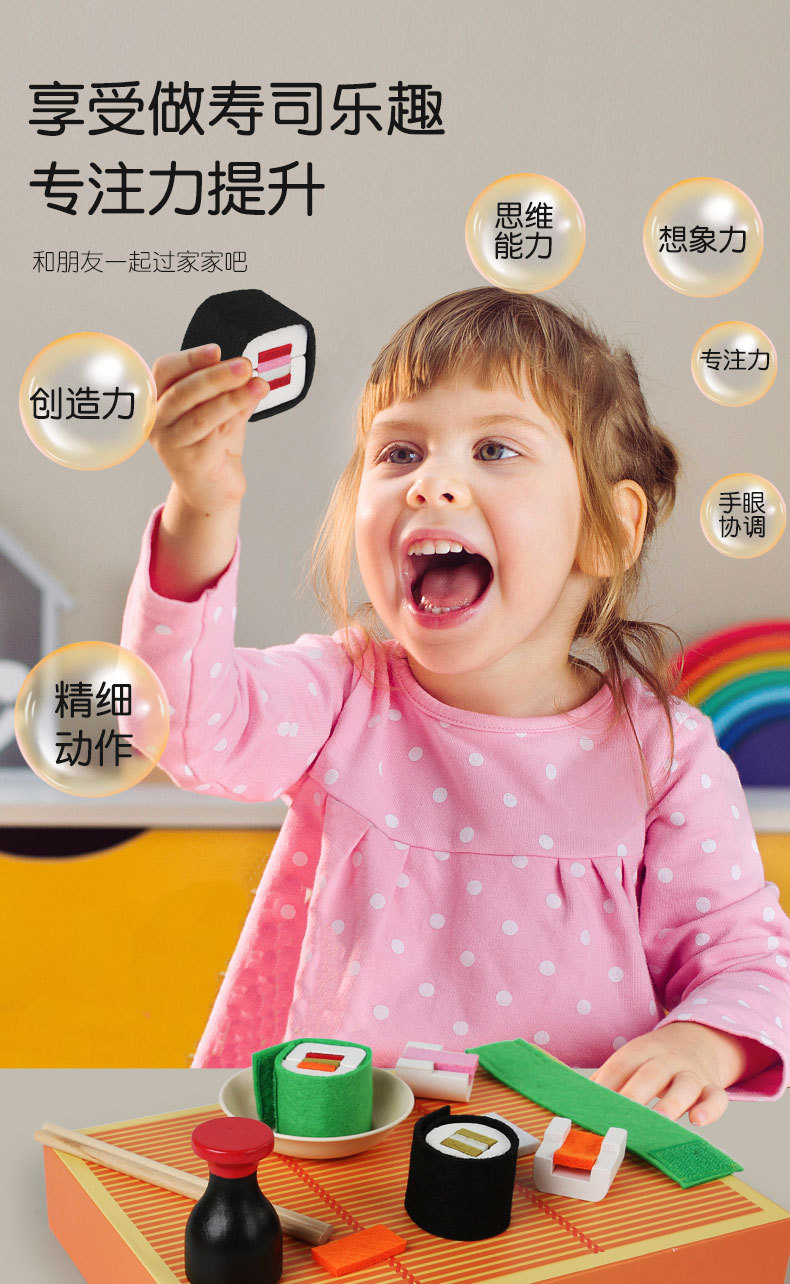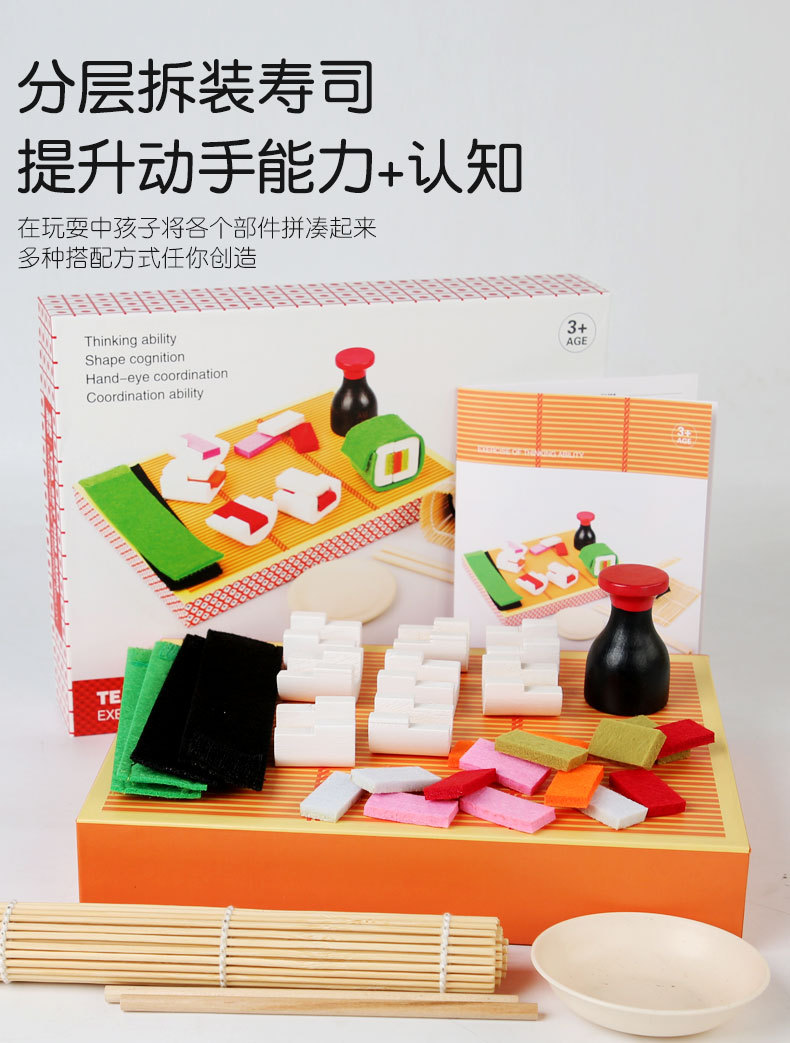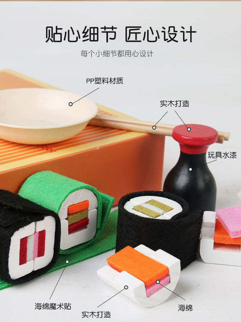 Simulación de madera para niños caja de sushi familiar cognición de alimentos cocinar set de verduras cocinadas juguetes inteligentes para niños y niñas
