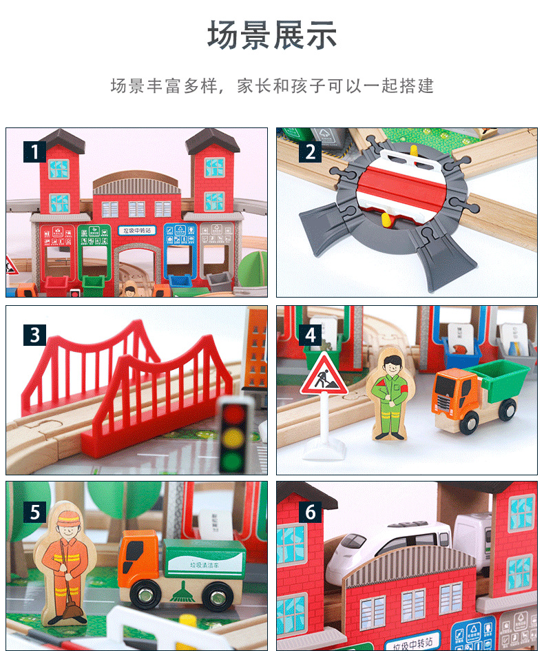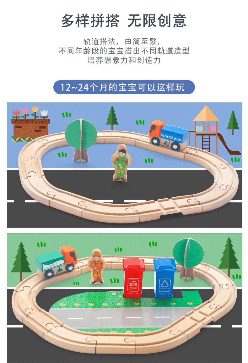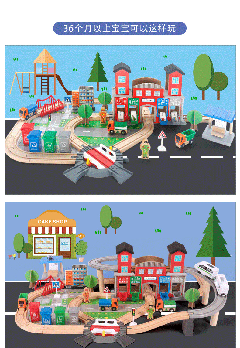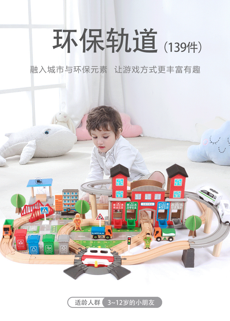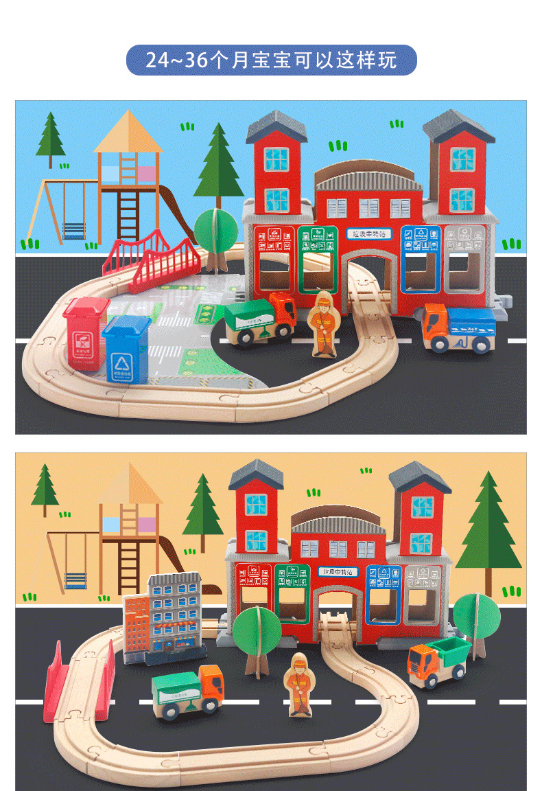Educación infantil madera eléctrica 139 piezas de camión de ferrocarril de protección ambiental clasificación de basura ensamblaje de bloques de camión de ferrocarril de juguete