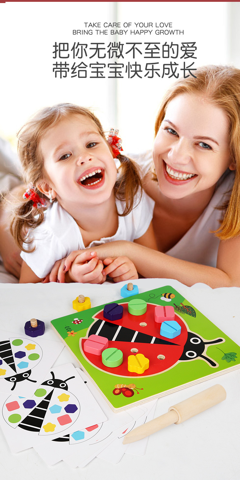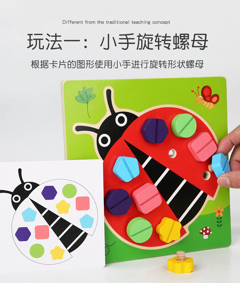 Jardín de infantes para niños Montserrat Educación temprana mariquita nuez ensamblaje juego de ensamblaje para niños Educación temprana puzzle tornillo juguete combinado