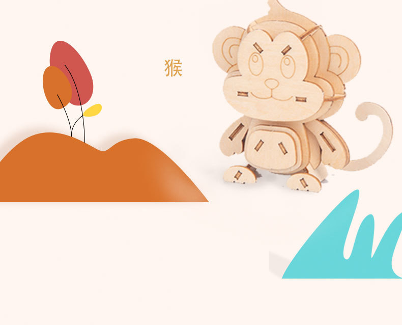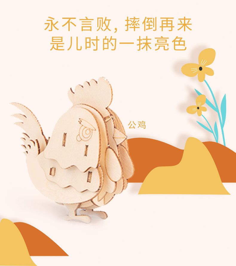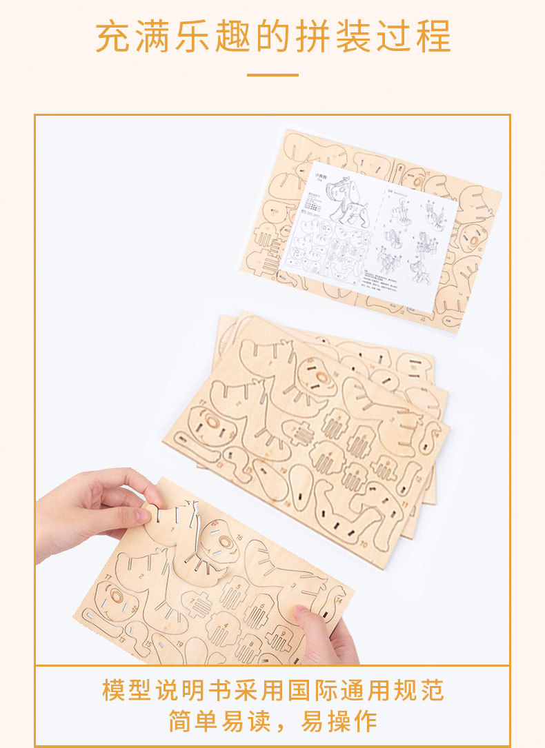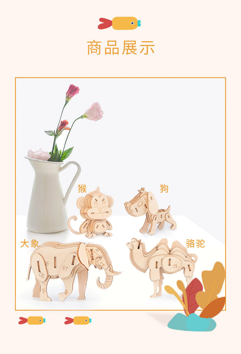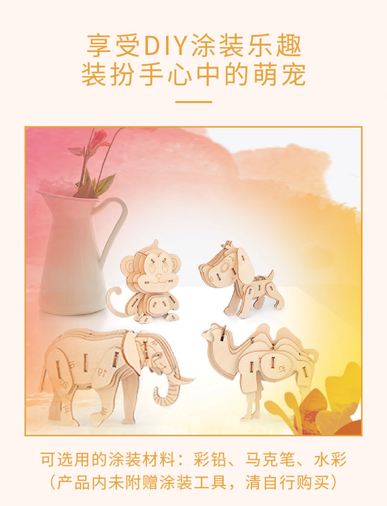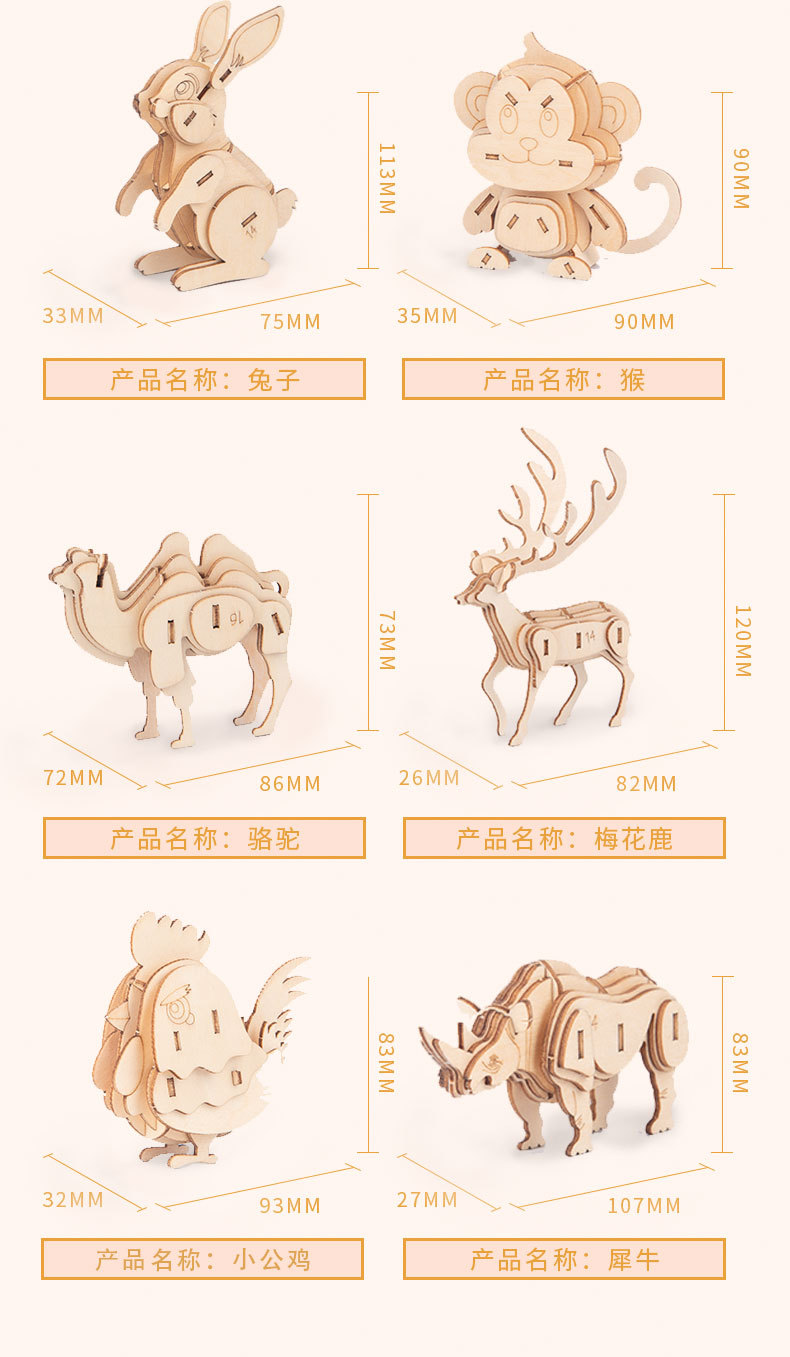 Nuevo tipo de venta caliente para niños de educación temprana DIY hecha a mano 3D animales tridimensionales de montaje de juguetes de madera