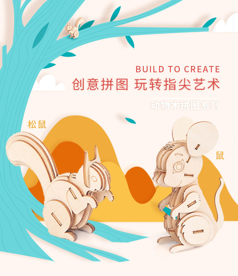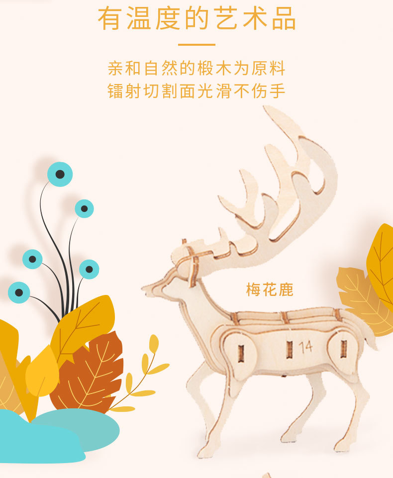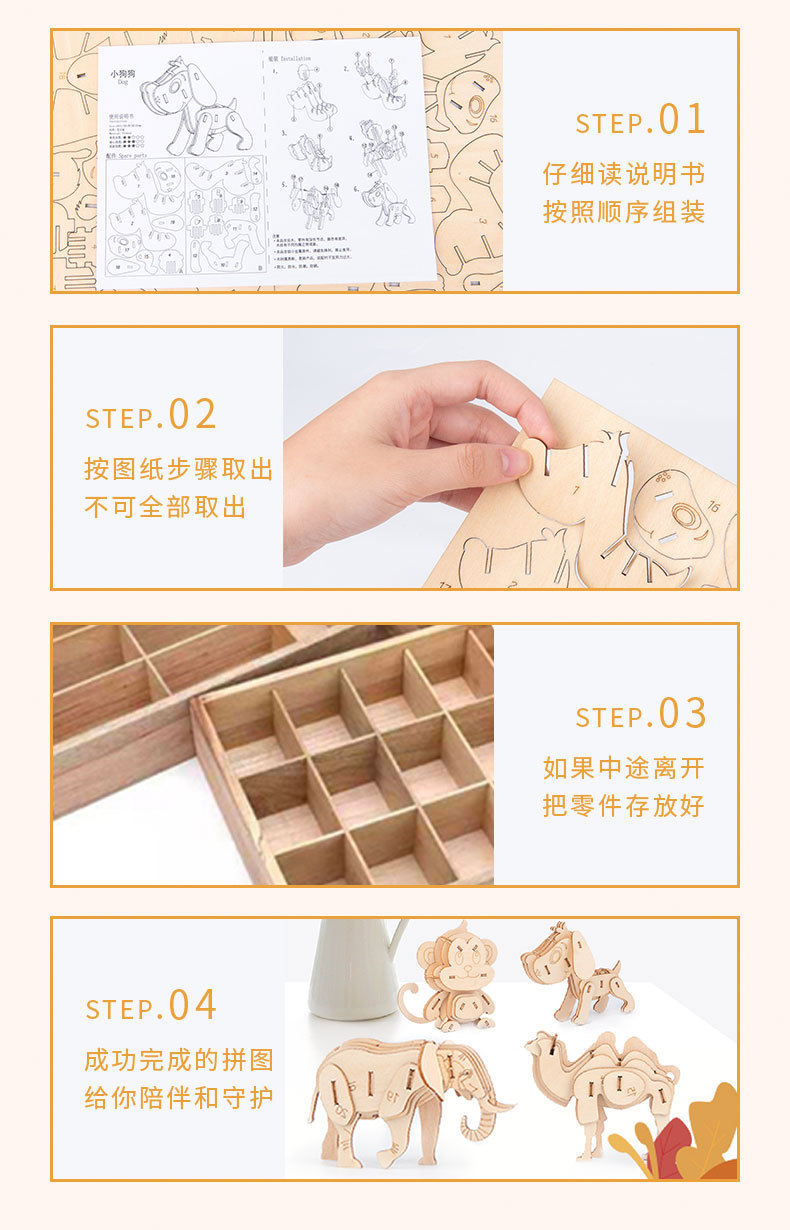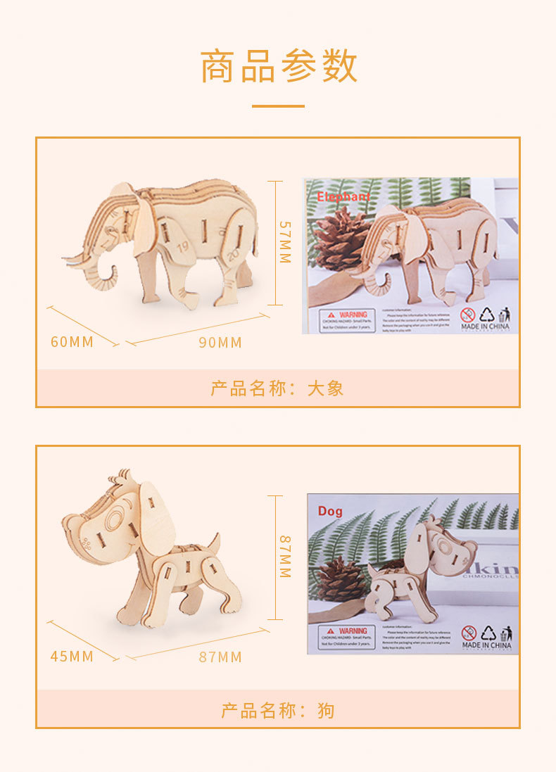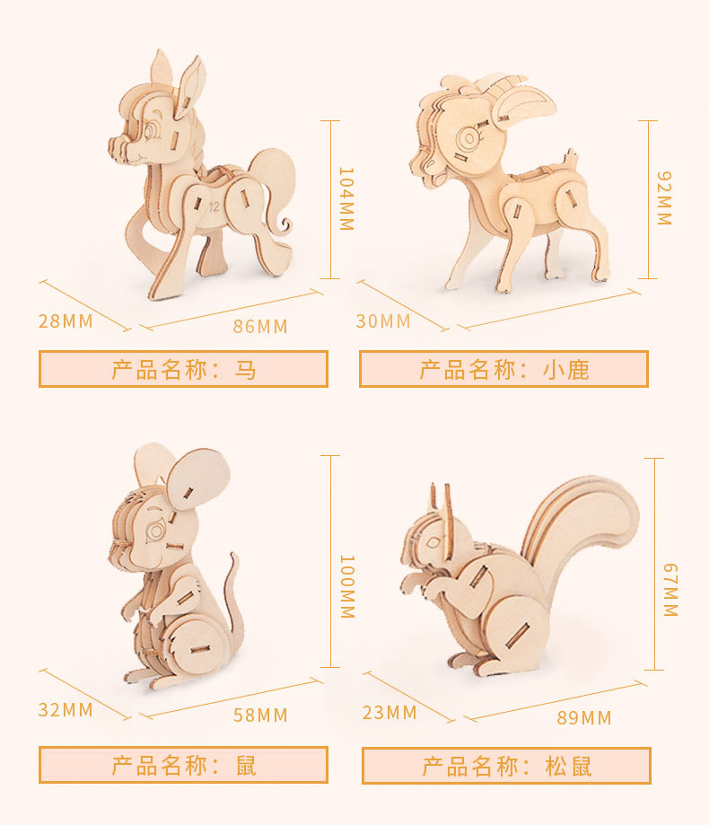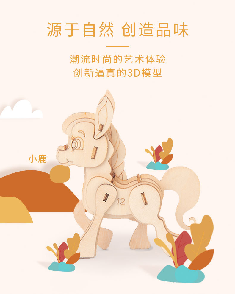 Nuevo tipo de venta caliente para niños de educación temprana DIY hecha a mano 3D animales tridimensionales de montaje de juguetes de madera