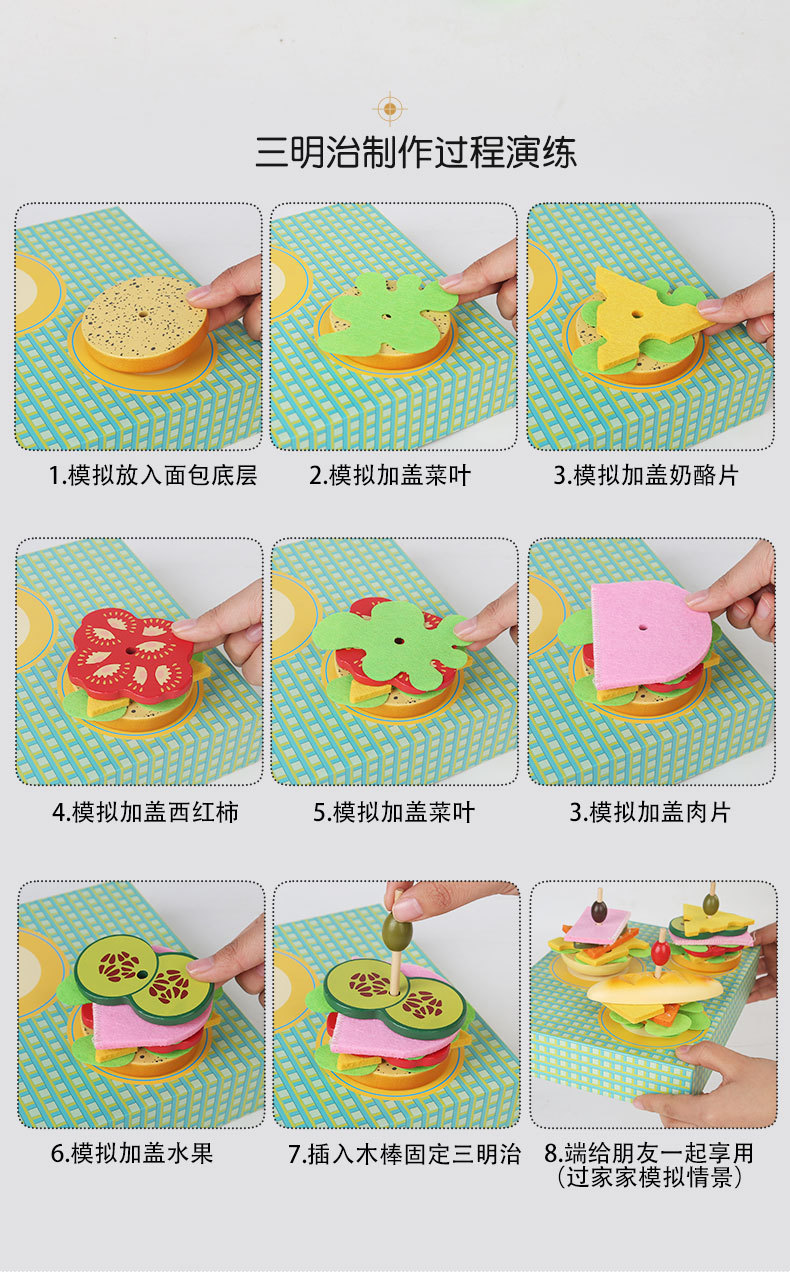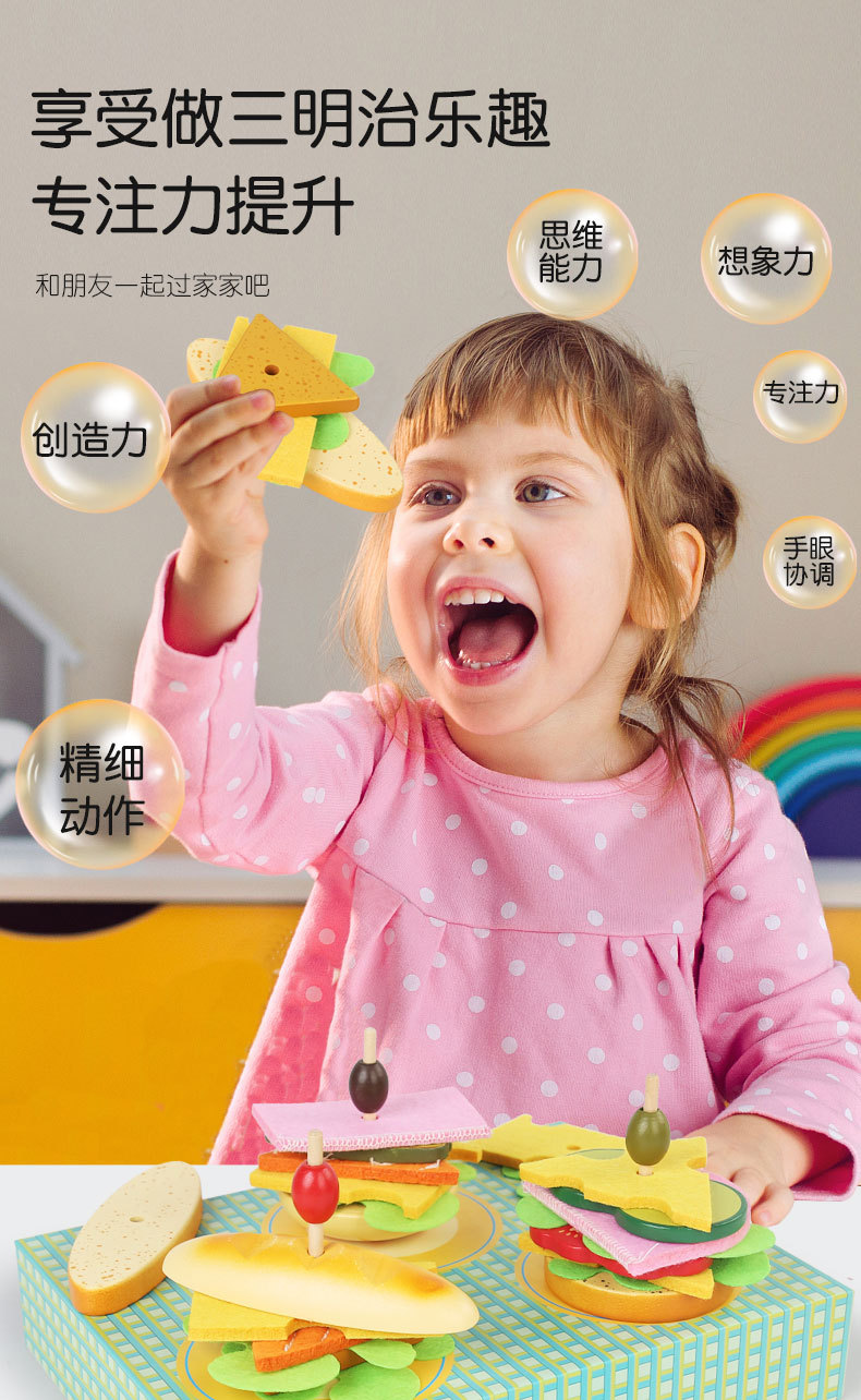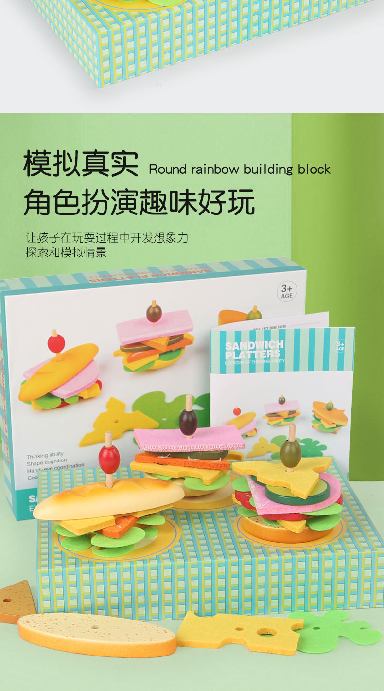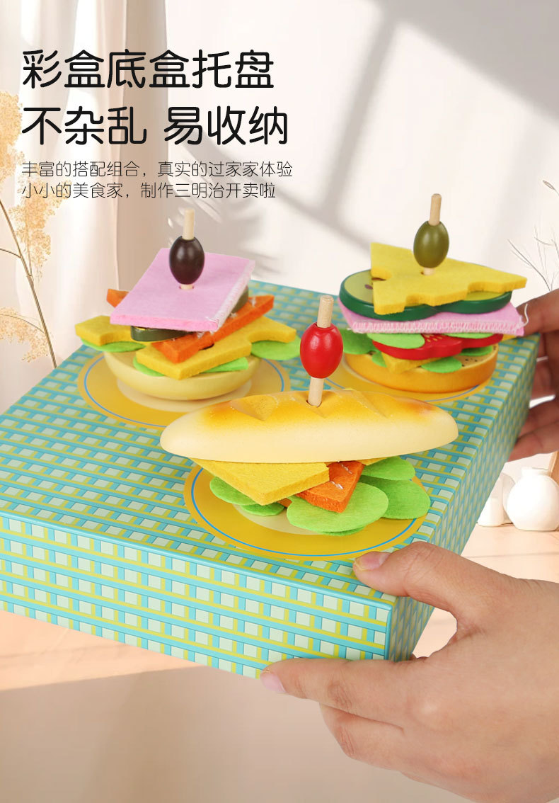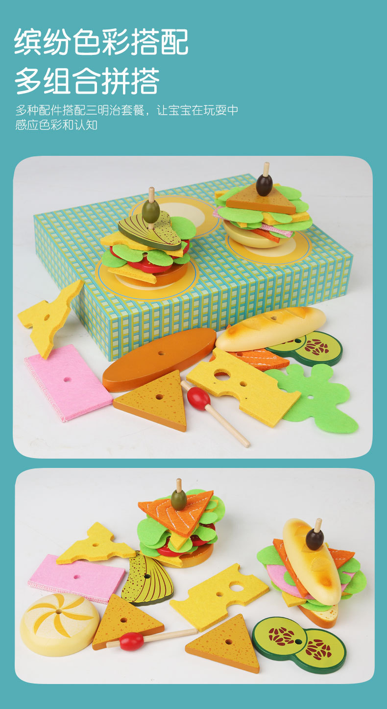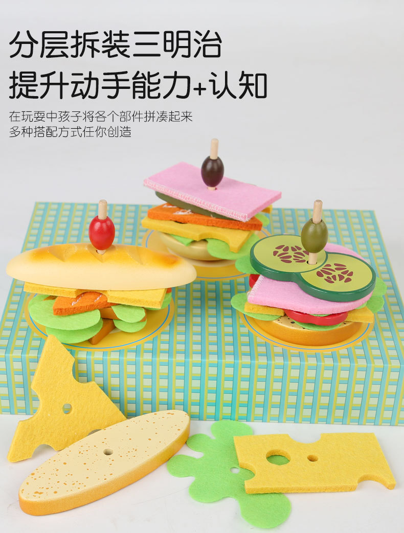 Niños sándwiches de madera simulación casera juego de niños niñas puzzle juguetes de cocina puzzle al por mayor