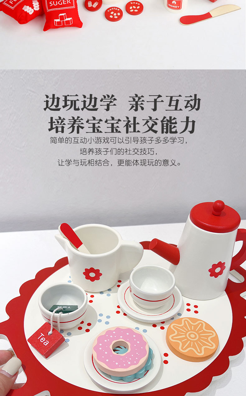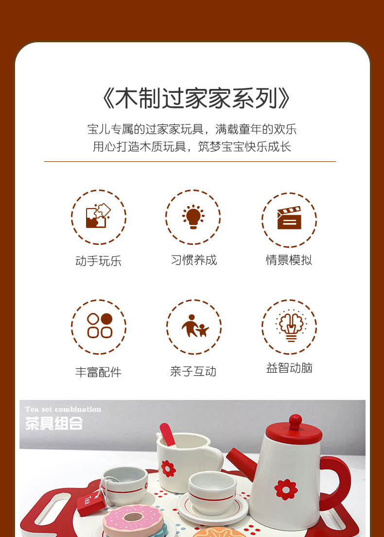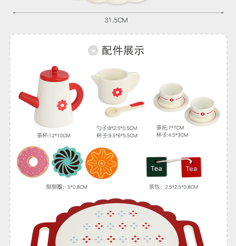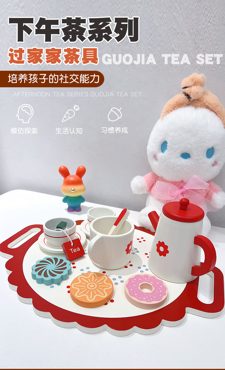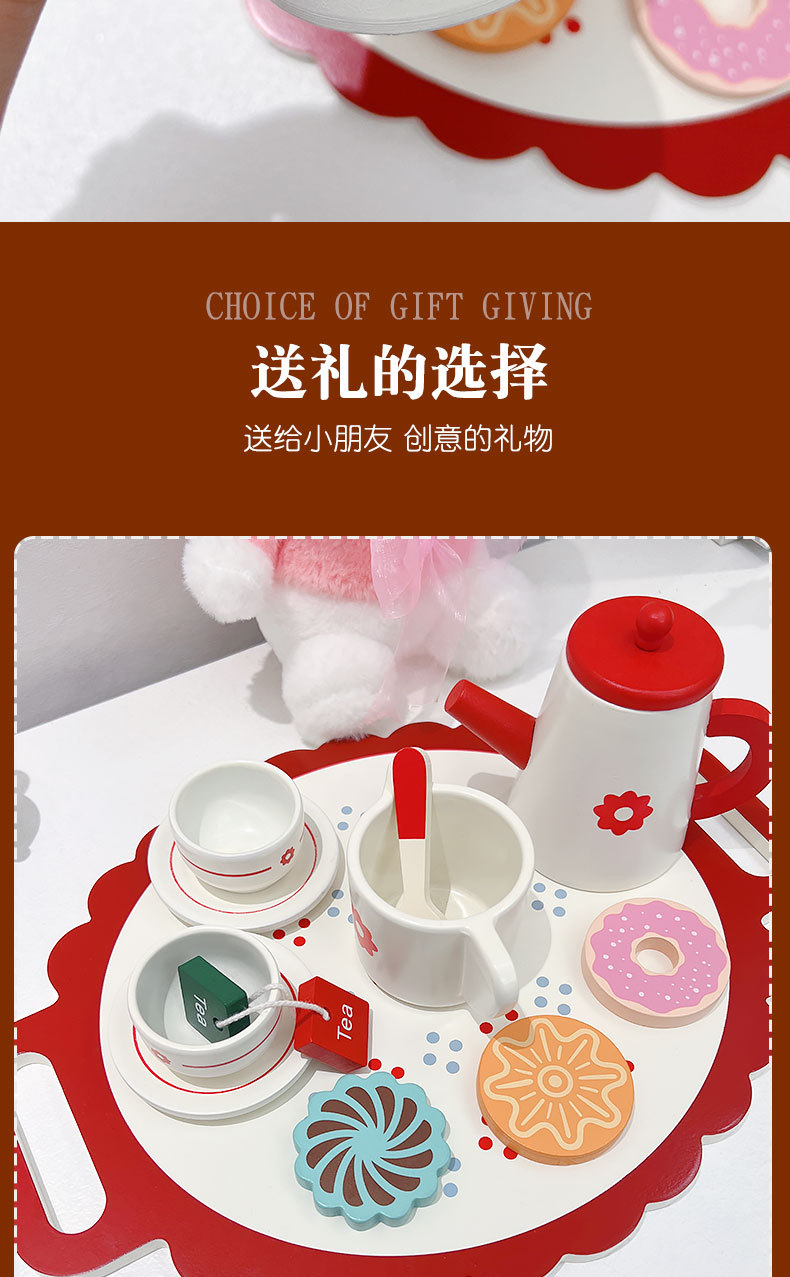 Juego de té de simulación de casa de juegos de madera para niños y niñas, té de la tarde, juguetes de cocina, jardín de infantes para niños, regalo de cumpleaños