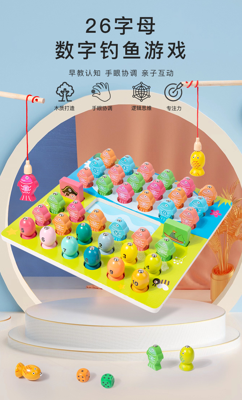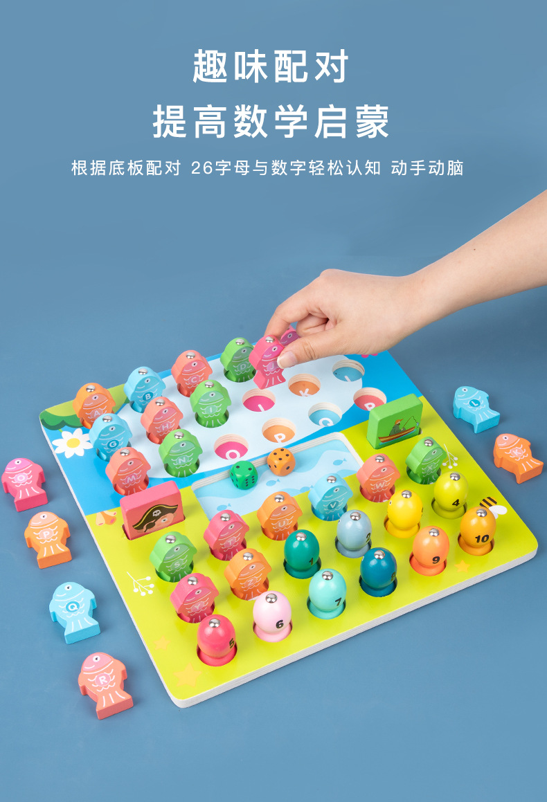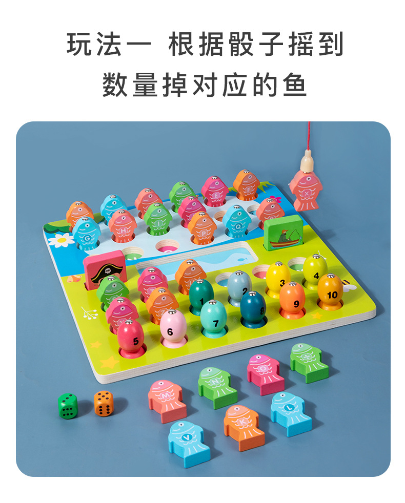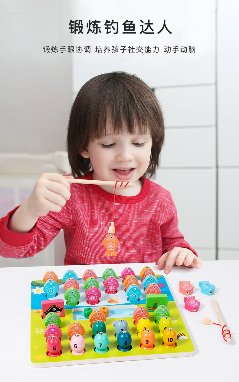 Niños juguetes de pesca magnéticos de madera puzzle niño niñas interactivo 3D pesca estereoscópica alfanuméricos juegos