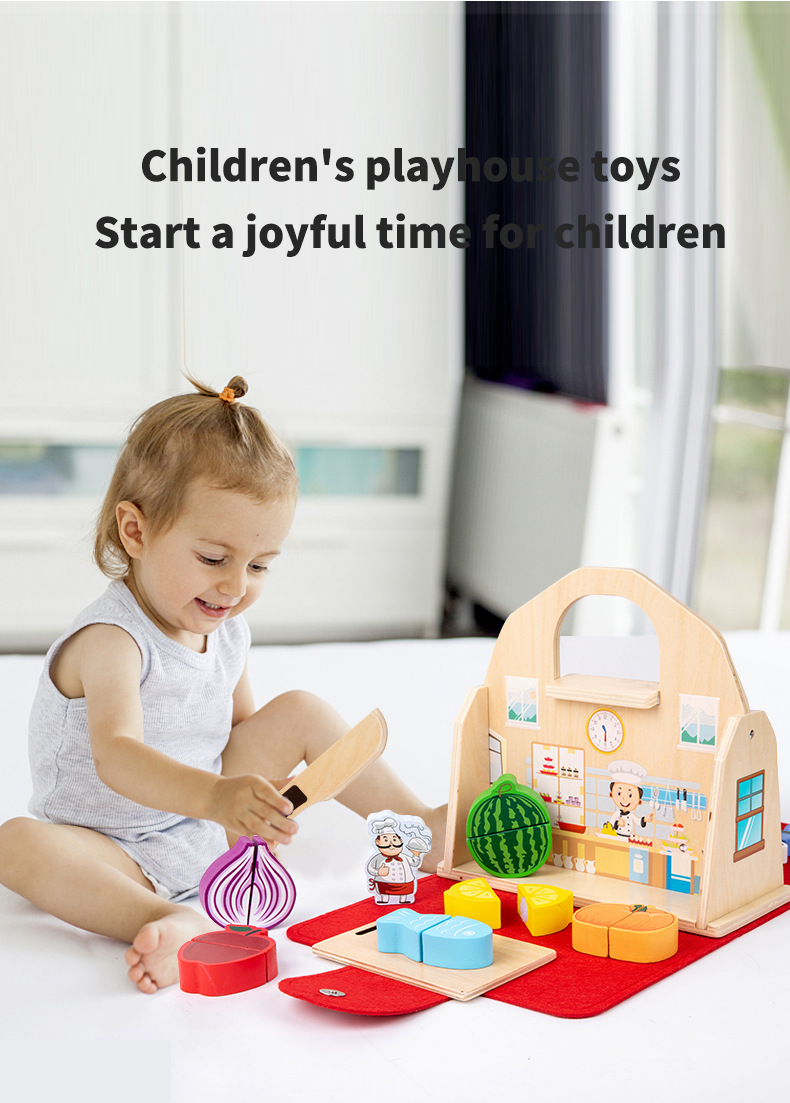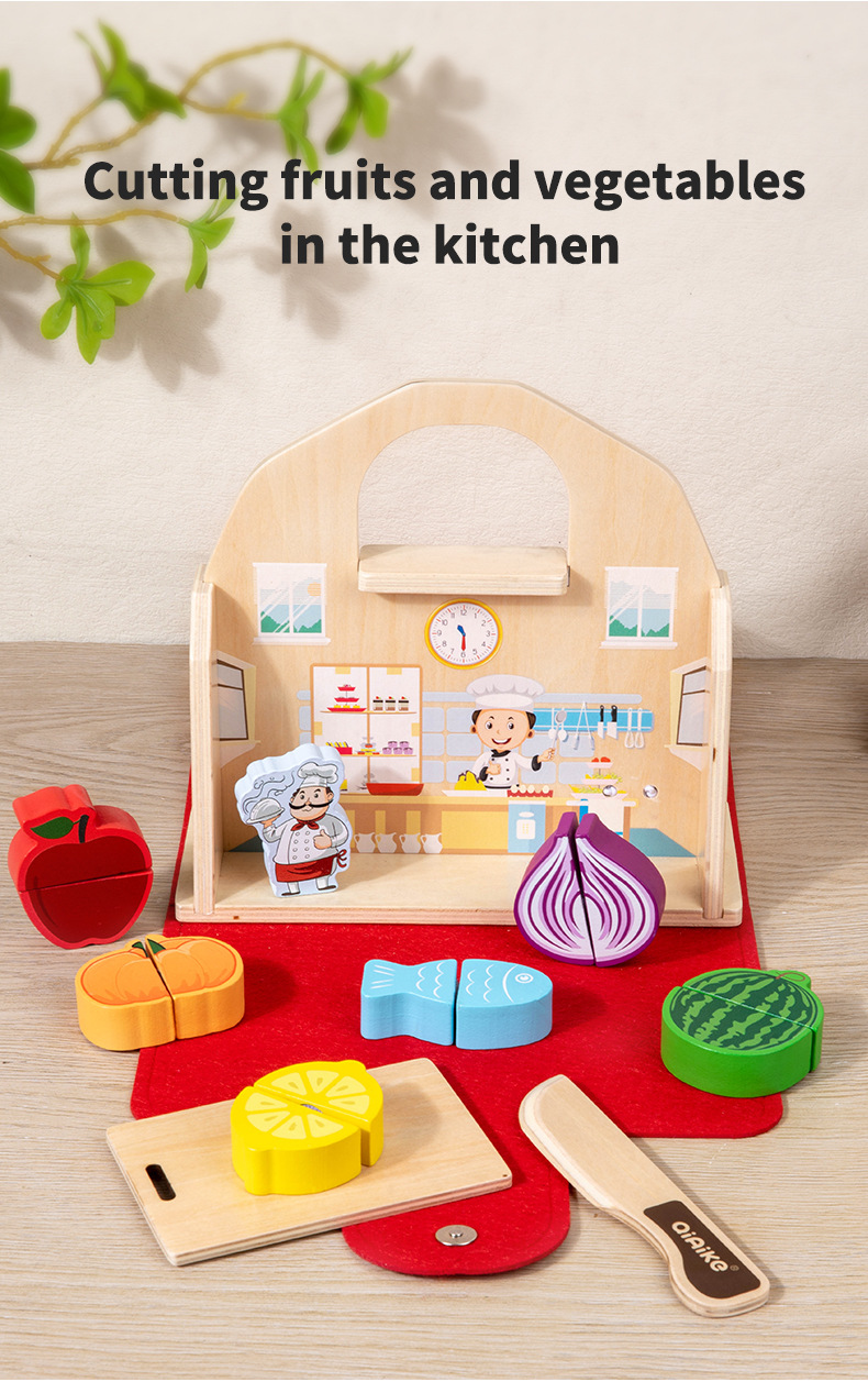 Nuevos productos de madera cocina portátil puzzle educación temprana juguetes para niños y niñas cortar niños verduras y frutas al por mayor