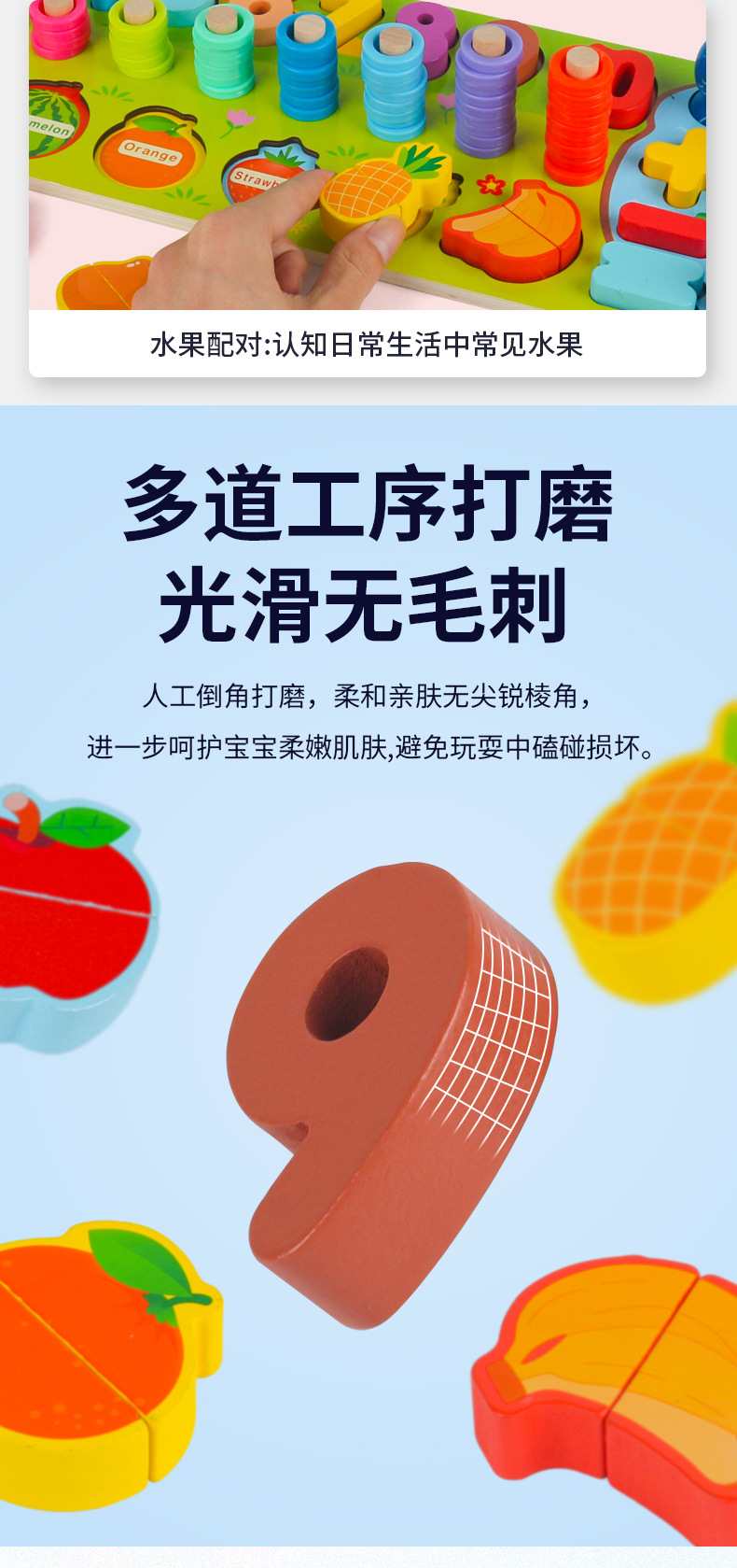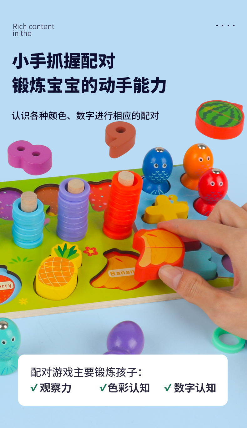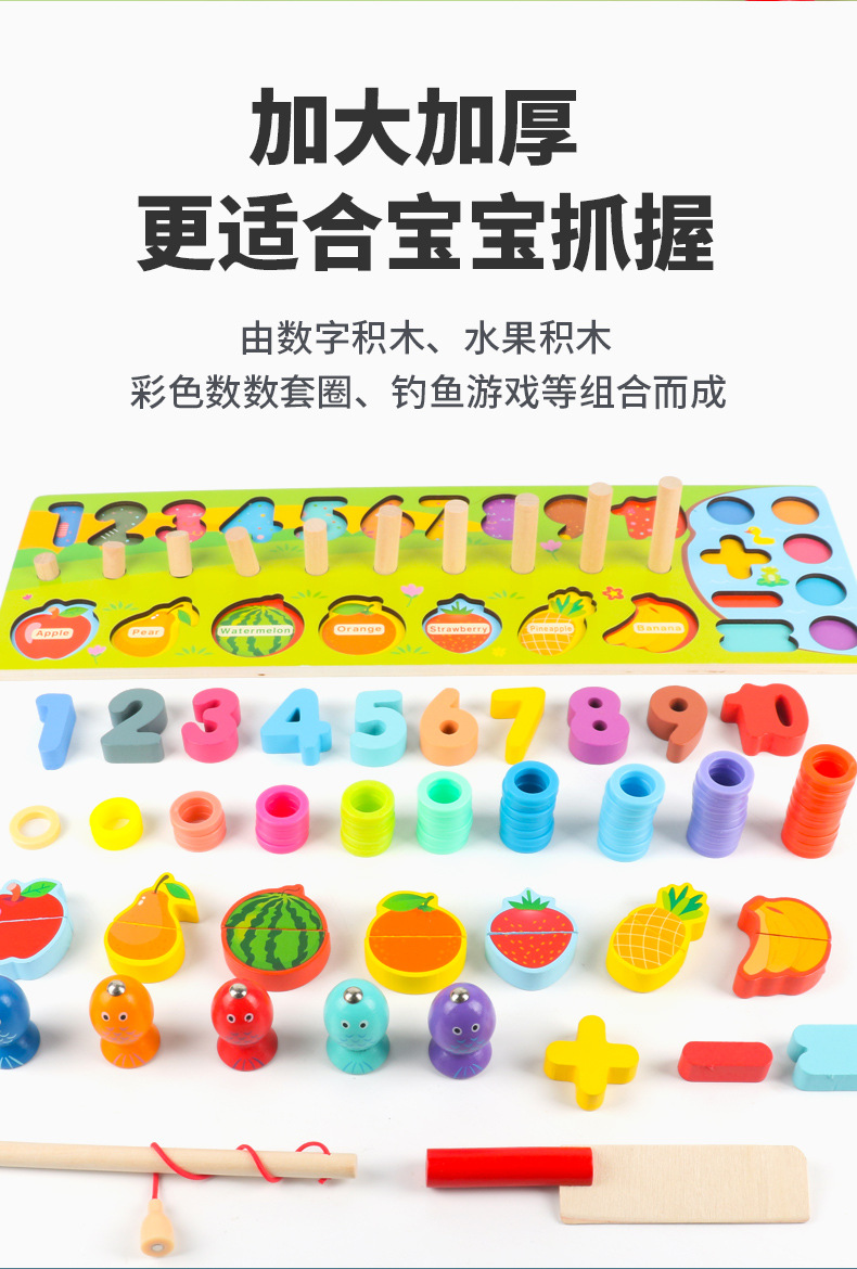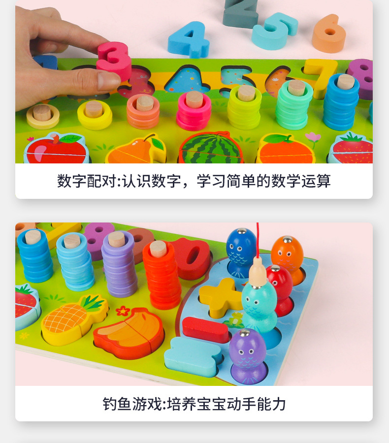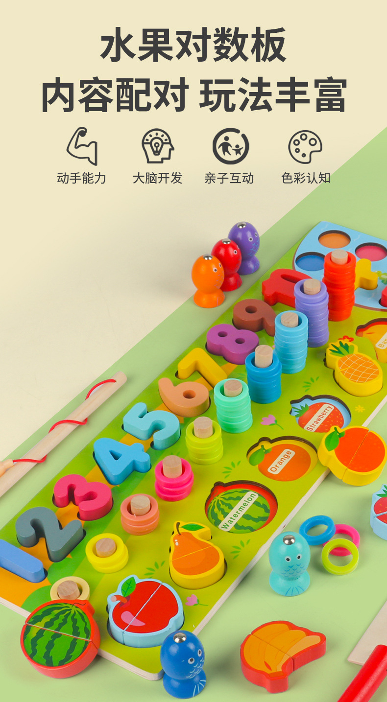 Juguetes infantiles de madera cognición de frutas de madera logarítmico aritmética digital de pesca tablero juegos de rompecabezas