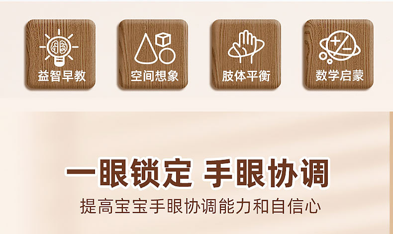 | Desarrollo de la capacidad | Emoción, visión, desarrollo intelectual, Movimiento de manos y cerebro, agarre, coordinación mano - ojo, desarrollo de otras habilidades, juguetes interactivos |