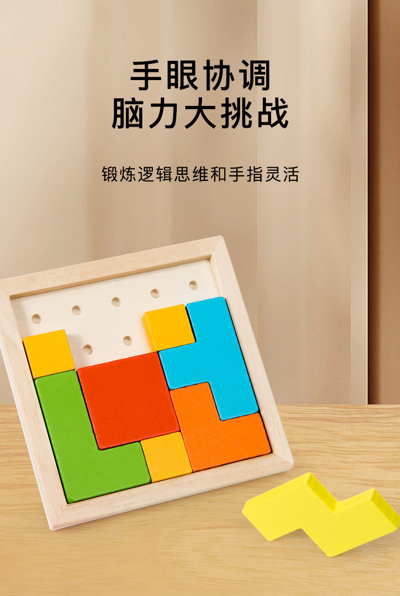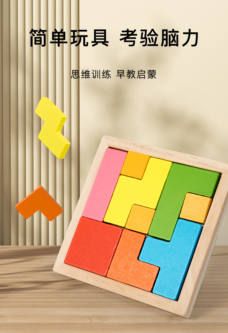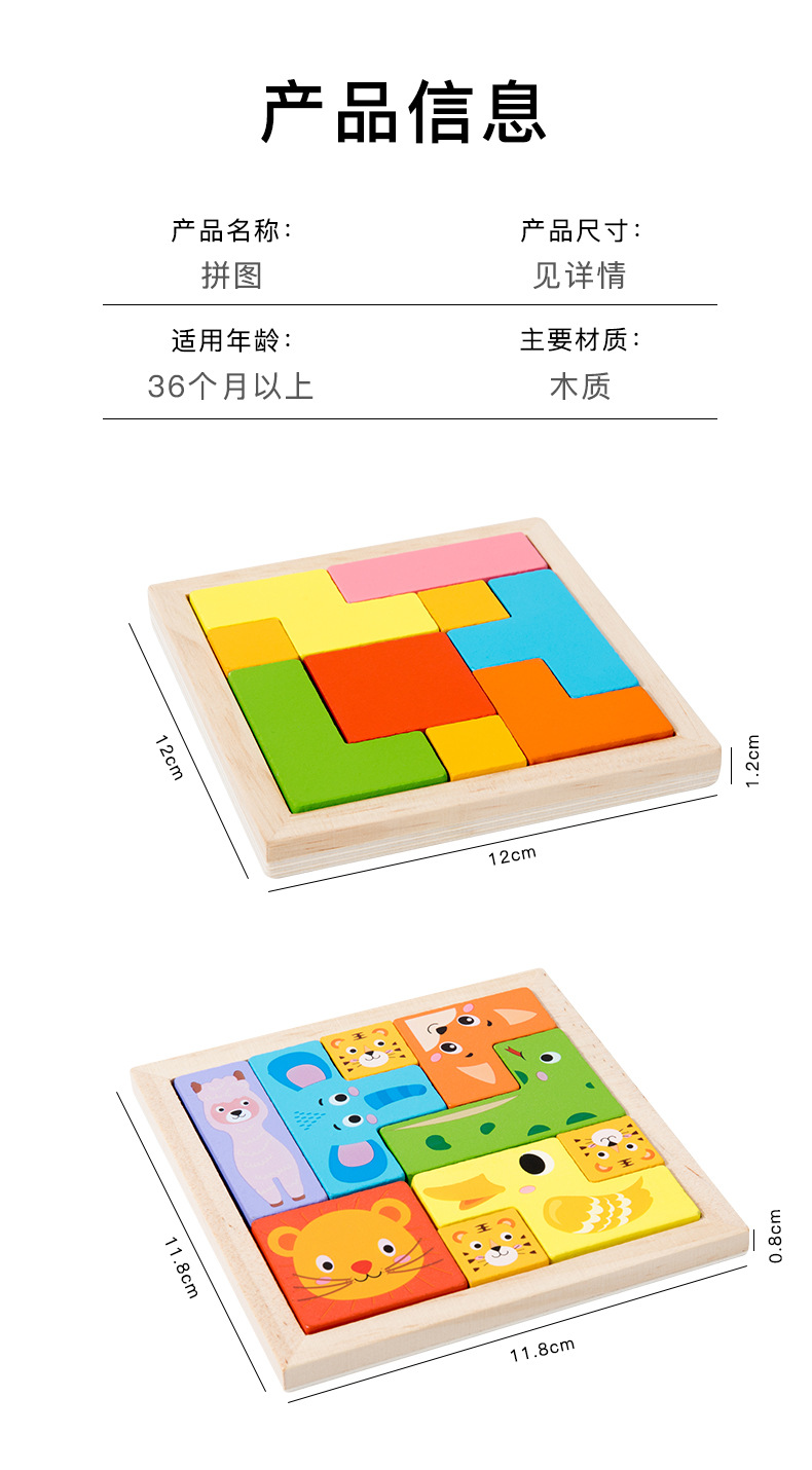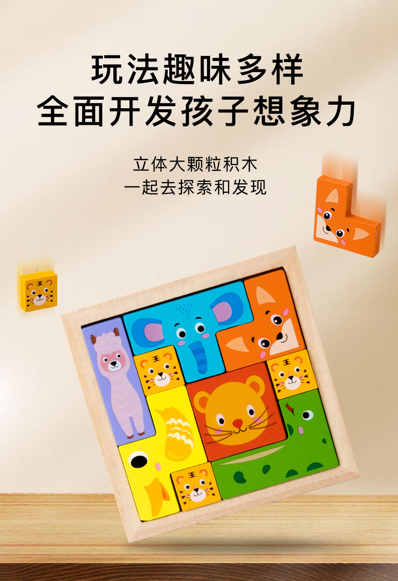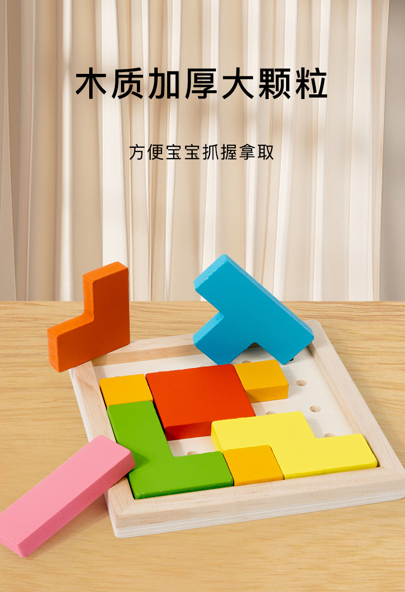 Puzzle de bloques Tetris para niños Educación infantil desarrollo de dibujos animados tridimensionales Juguetes de madera puzzle