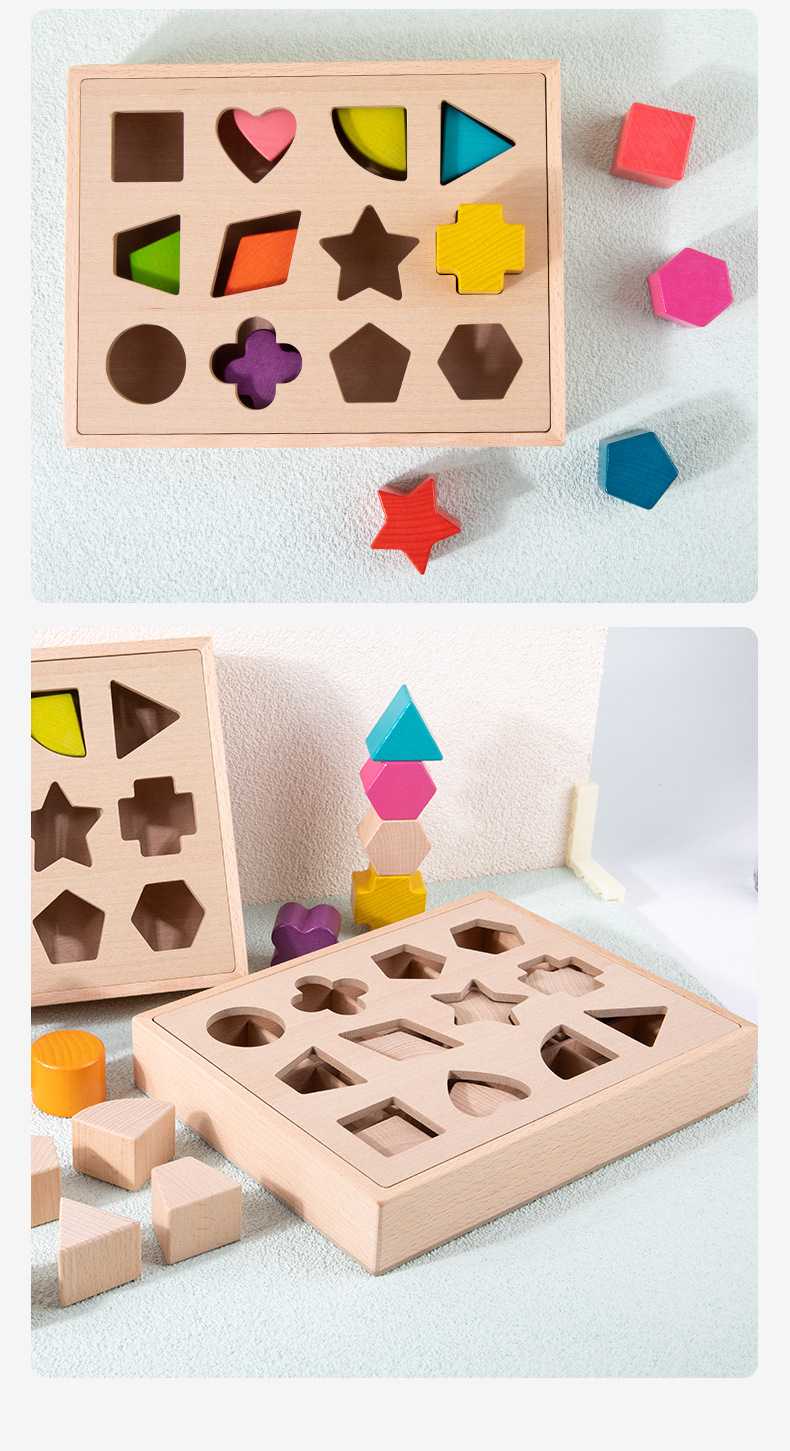 Mont 's Educación Primaria Infantil 12 agujeros caja de inteligencia de forma geométrica de color cognitivo emparejado forma de bloque de construcción caja de lanzamiento