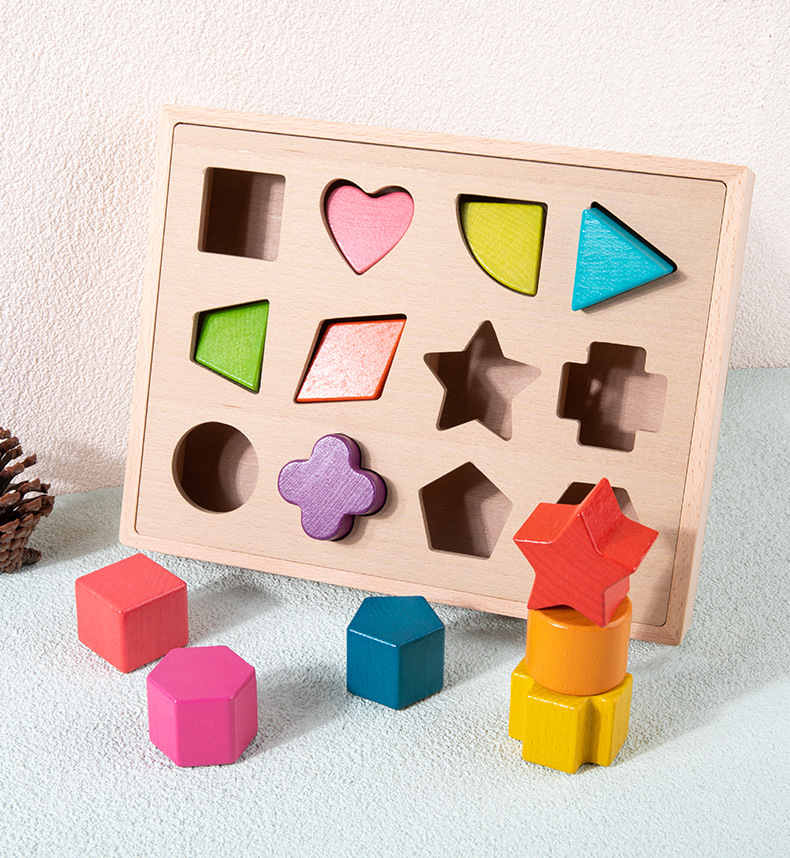 | Color | Caja de madera de ayudas didácticas en forma de color, caja de madera de ayudas didácticas en forma de color de madera cruda |
